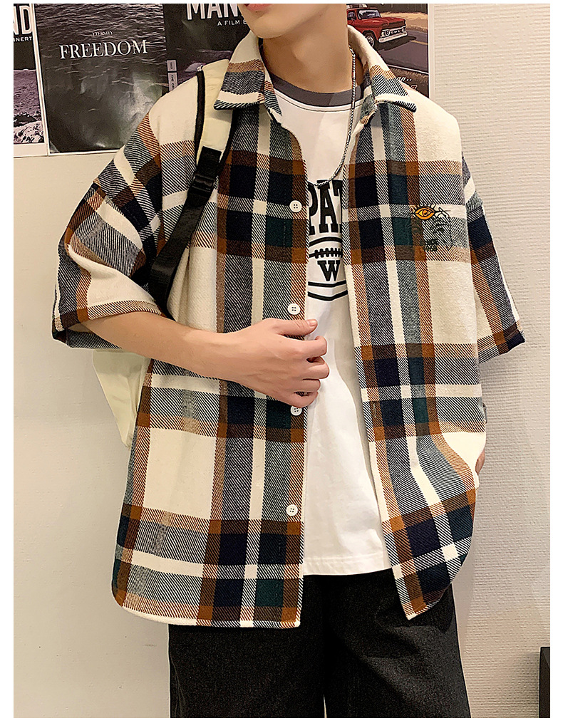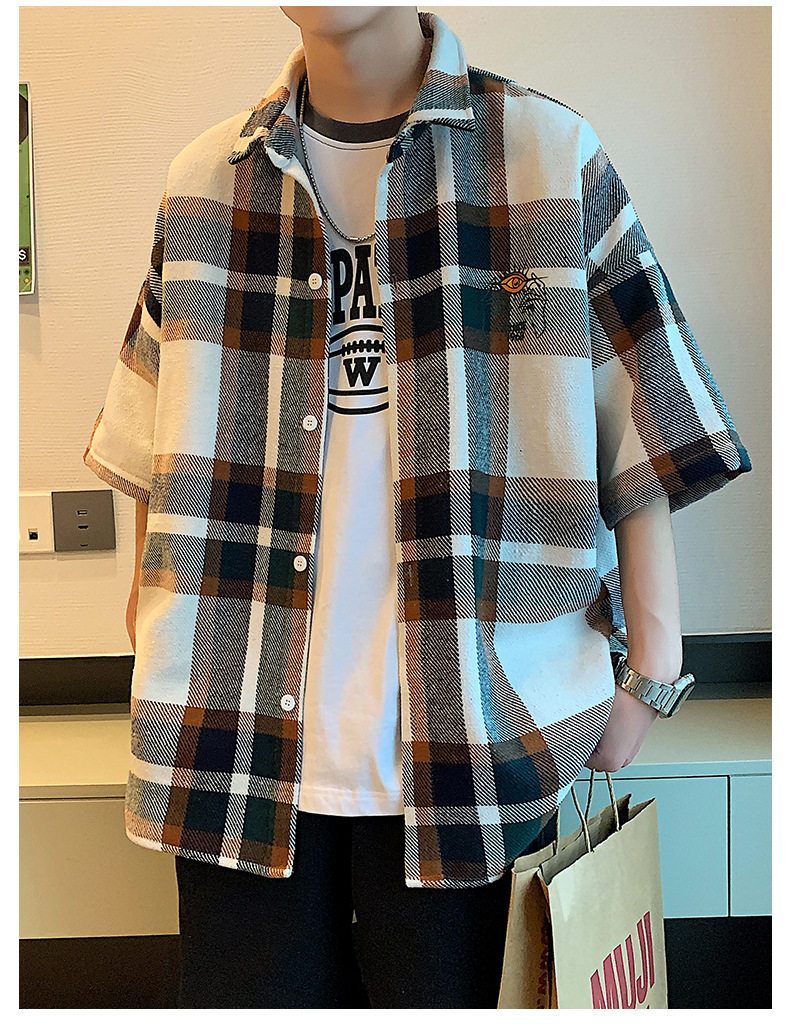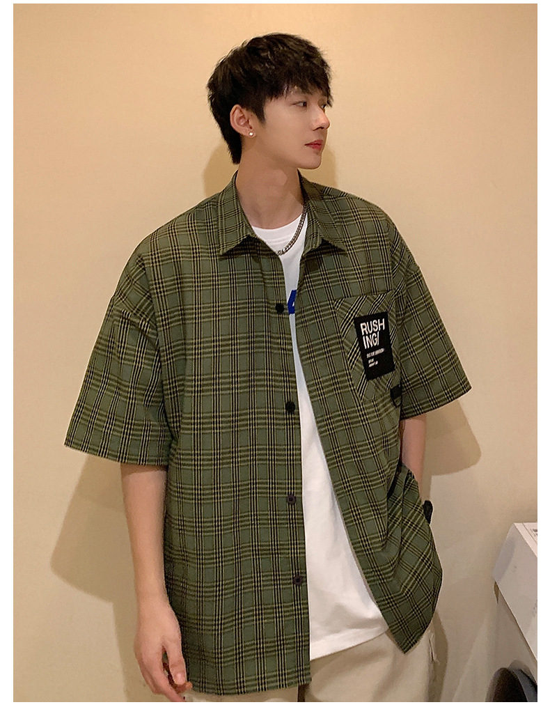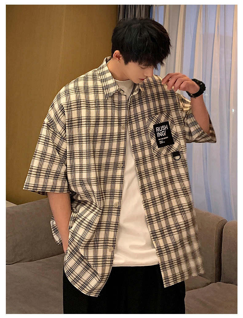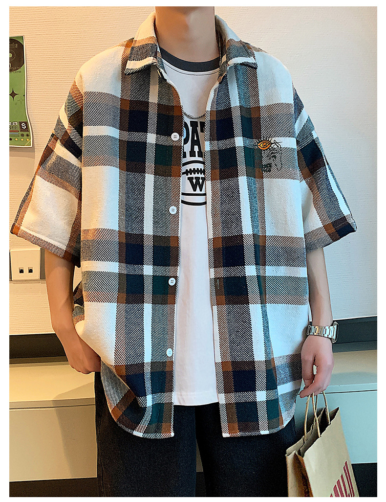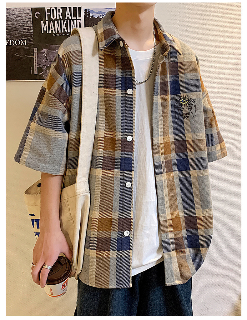 Sơ mi kẻ sọc nam ngắn tay mùa hè cao cấp nặng sơ mi phong cách cổ điển Mỹ ins top coat