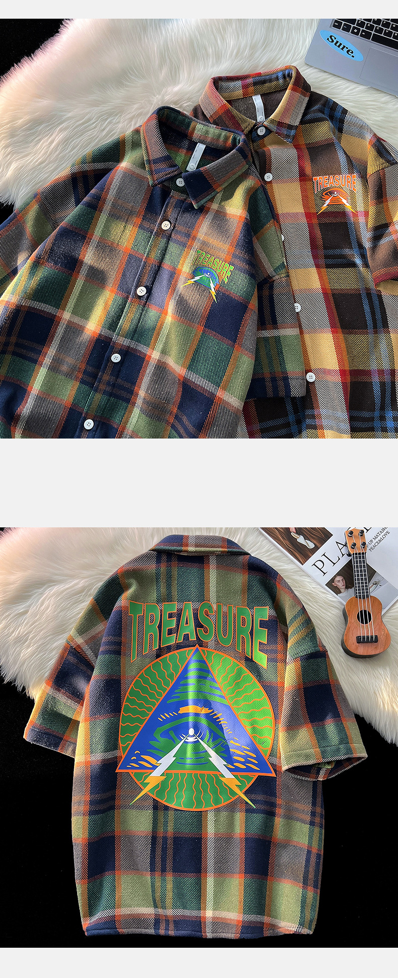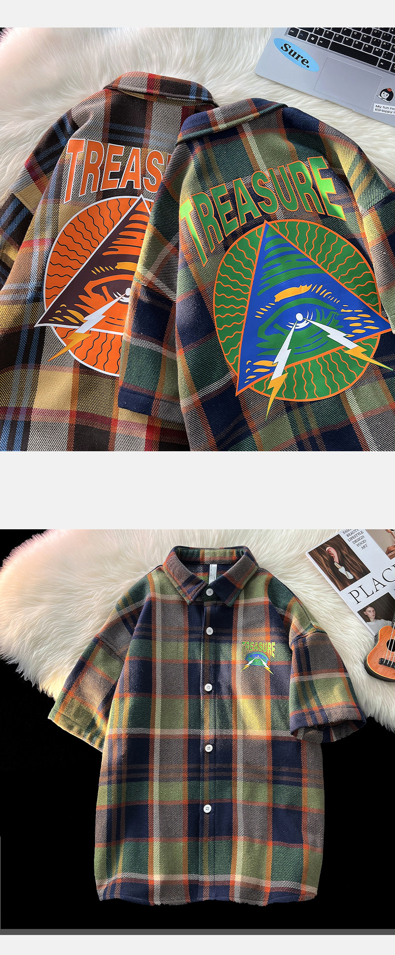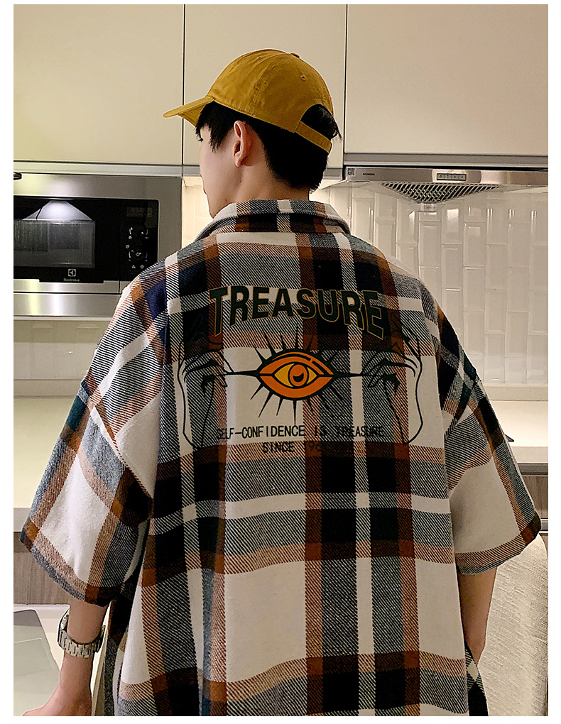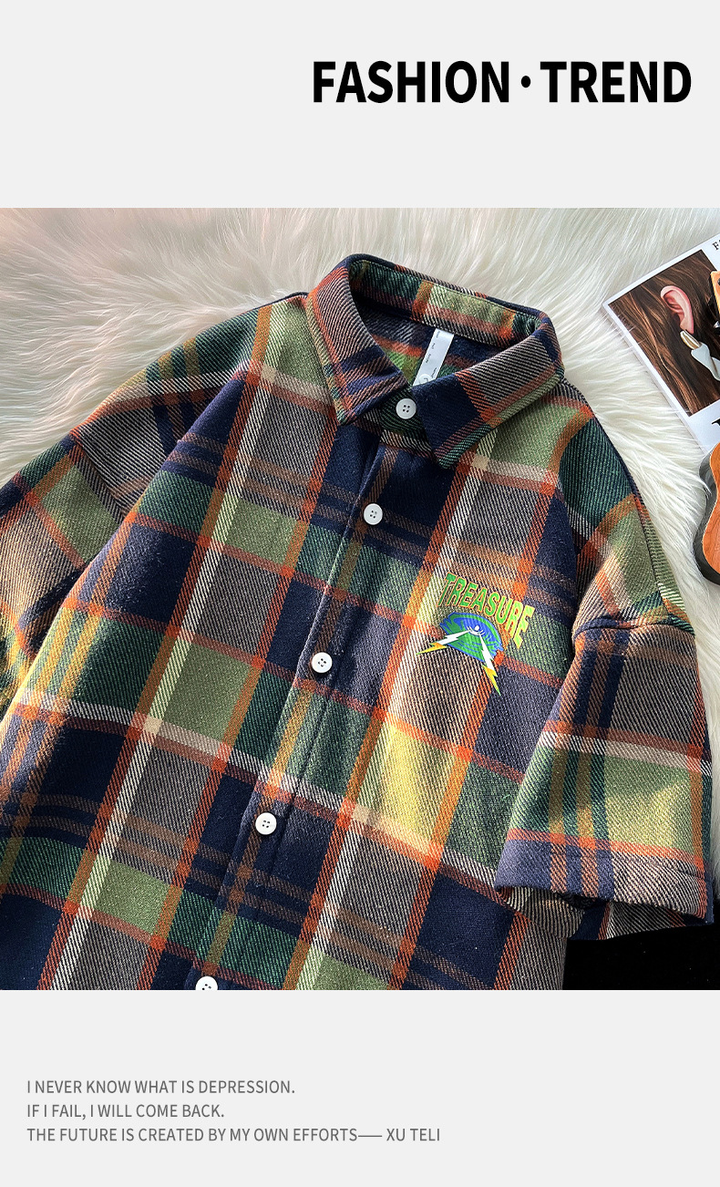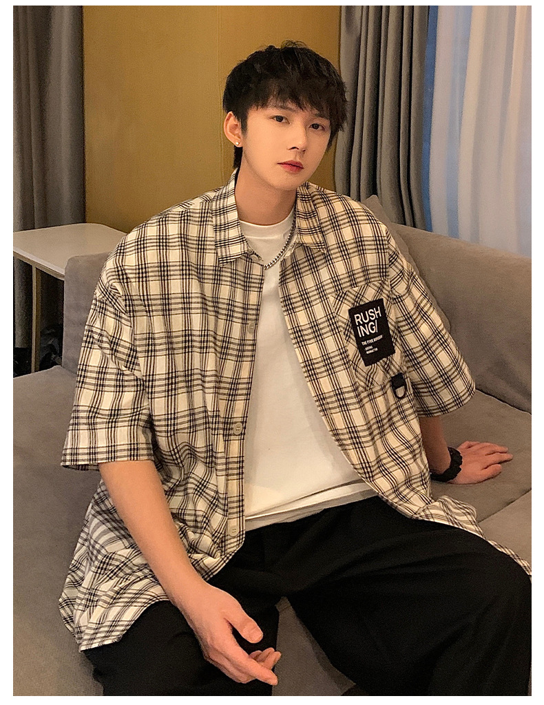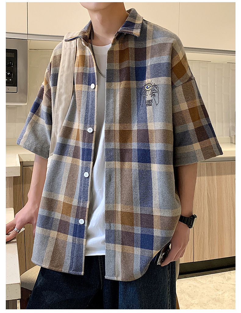Sơ mi kẻ sọc nam ngắn tay mùa hè cao cấp nặng sơ mi phong cách cổ điển Mỹ ins top coat