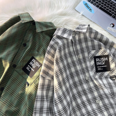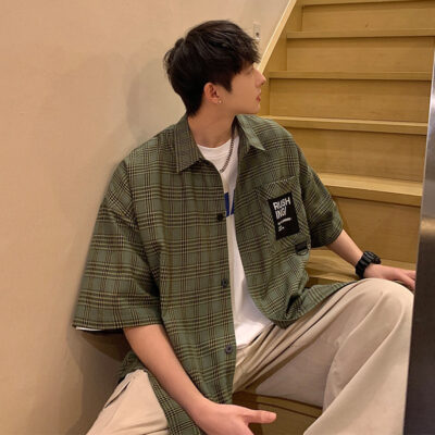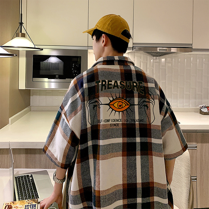 Sơ mi kẻ sọc nam ngắn tay mùa hè cao cấp nặng sơ mi phong cách cổ điển Mỹ ins top coat