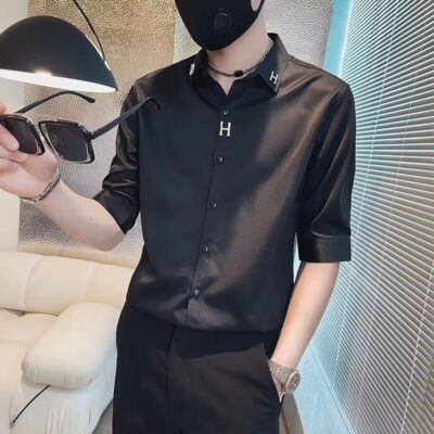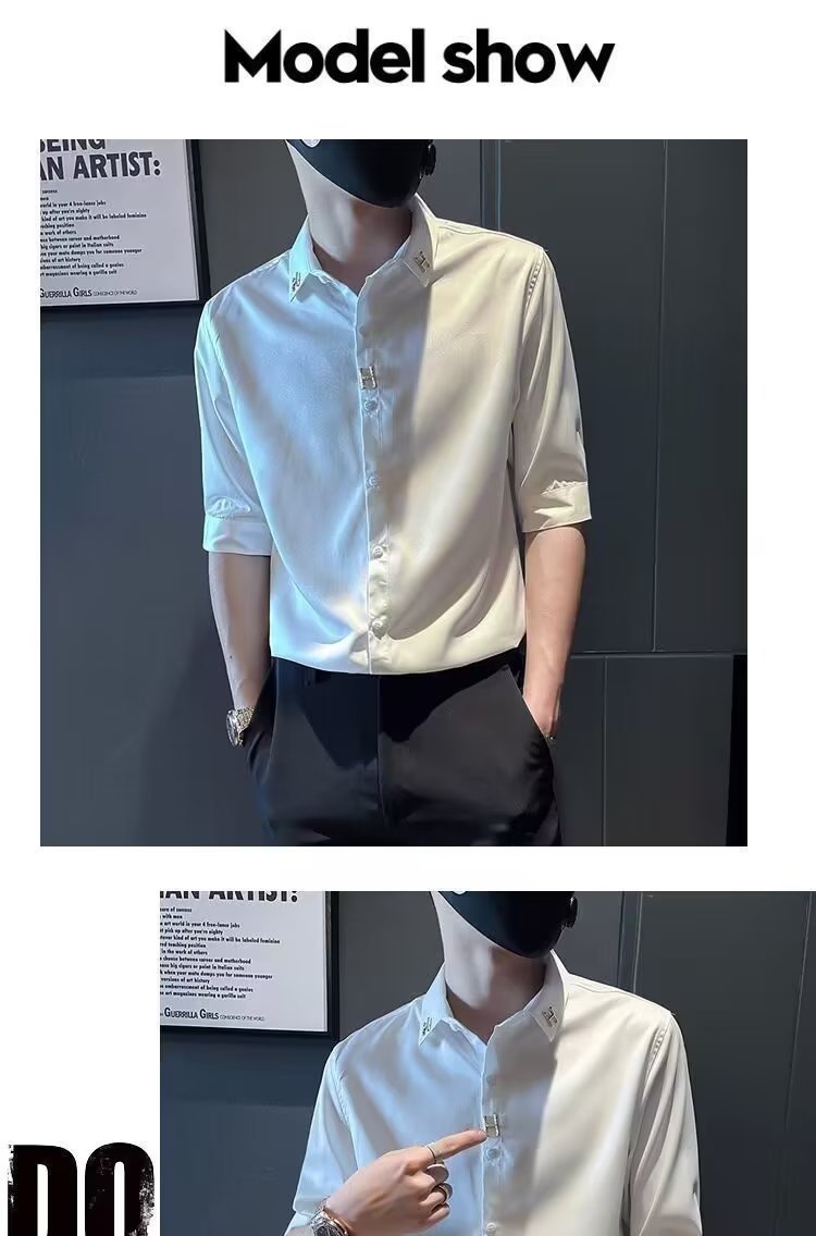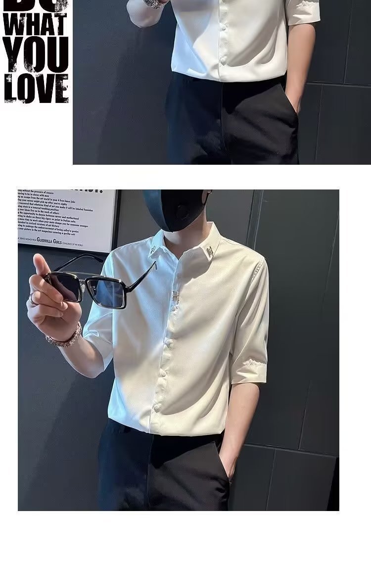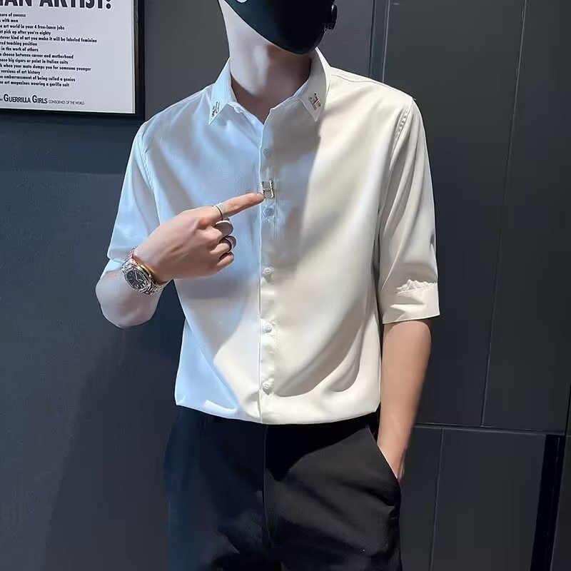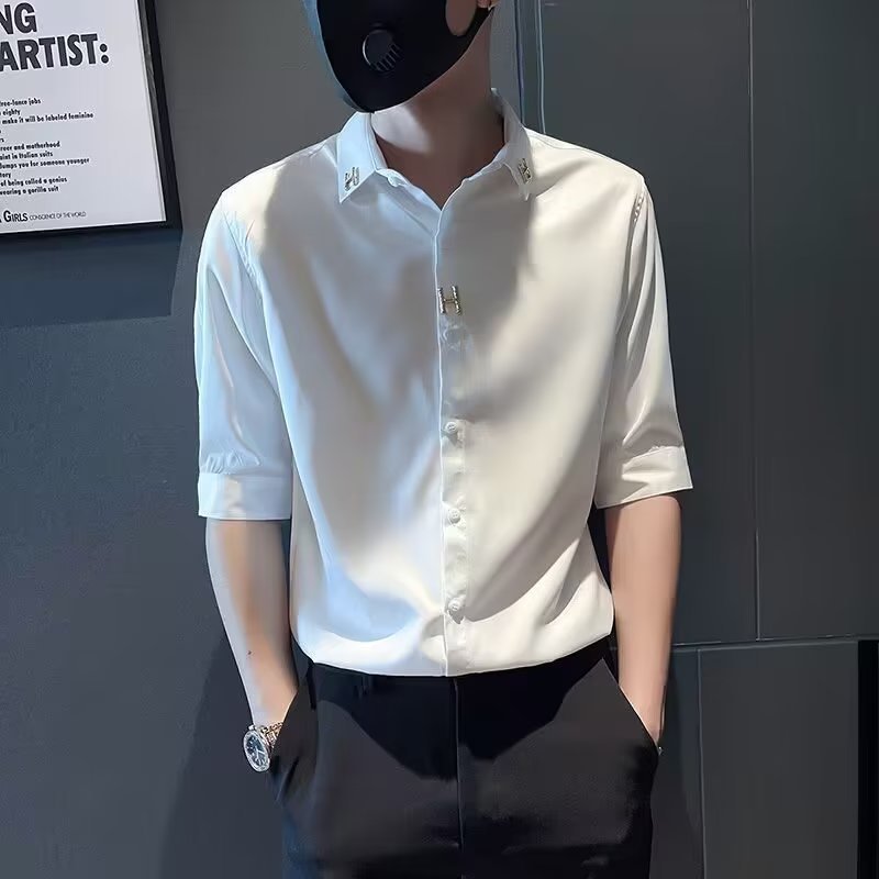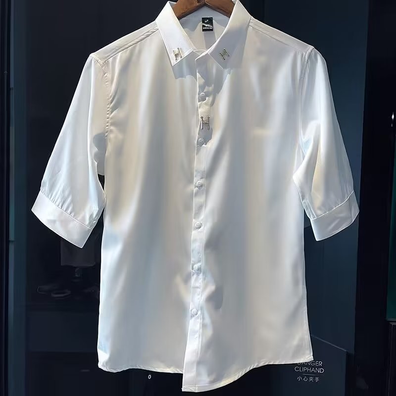 Sơ mi nam lụa băng ngắn tay mùa hè mỏng phần ba tay áo sơ mi nam cao cấp áo sơ mi cao cấp