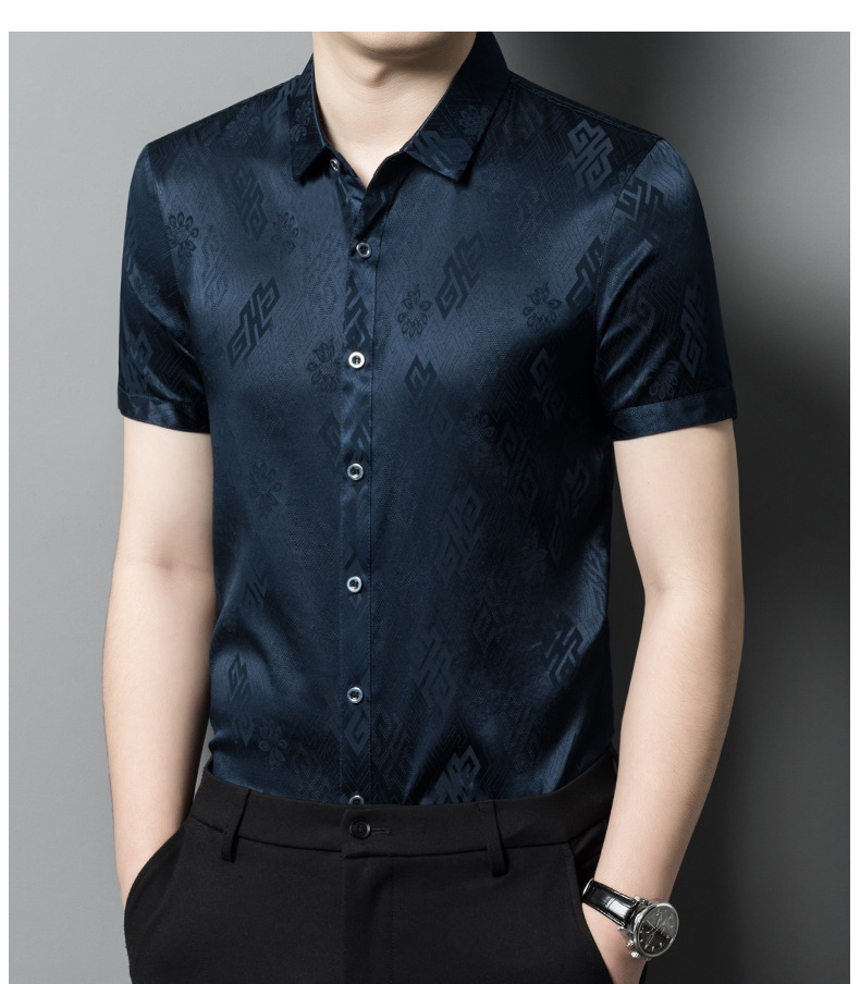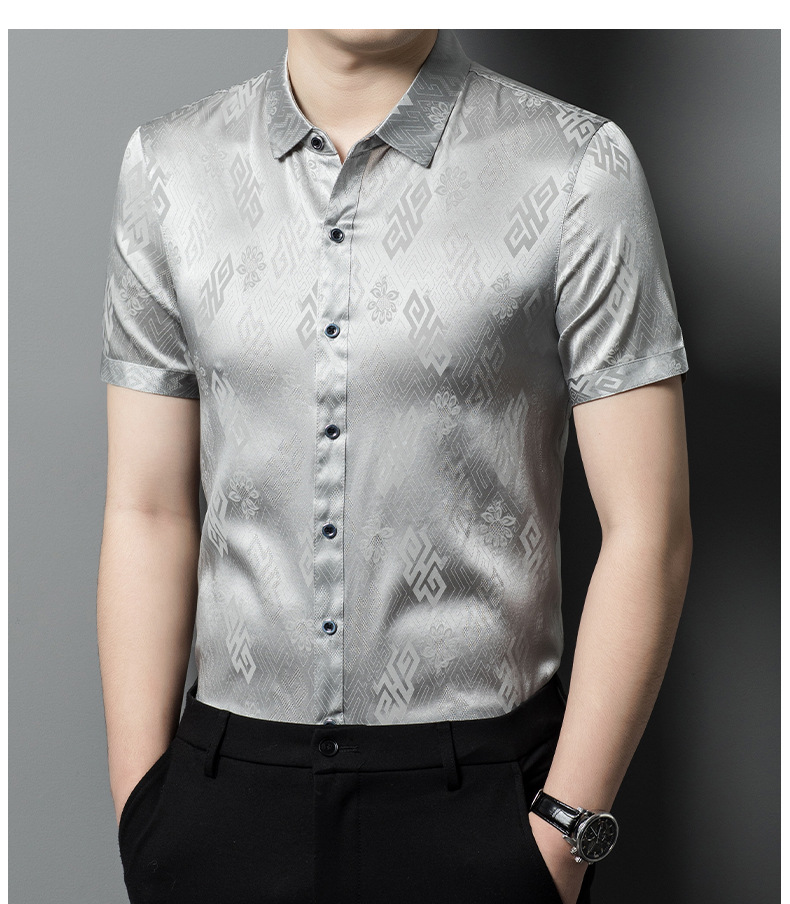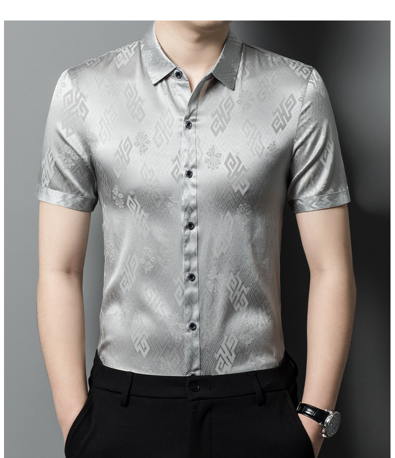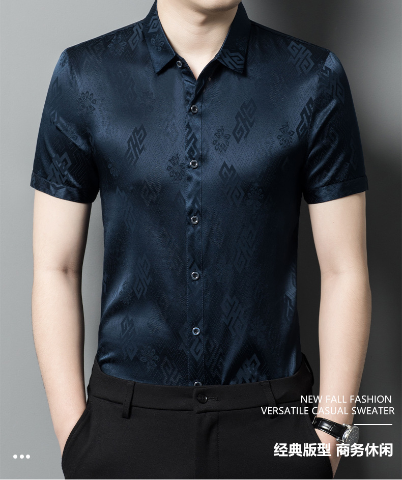 Sơ mi nam lụa dâu tằm công sở cao cấp sơ mi ngắn tay thời trang mùa hè mỏng áo đơn giản bố quần áo