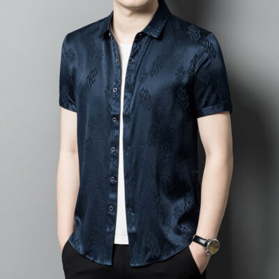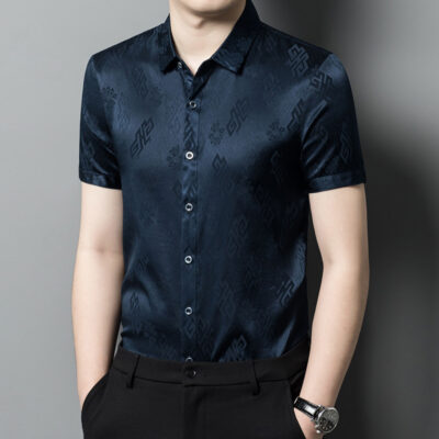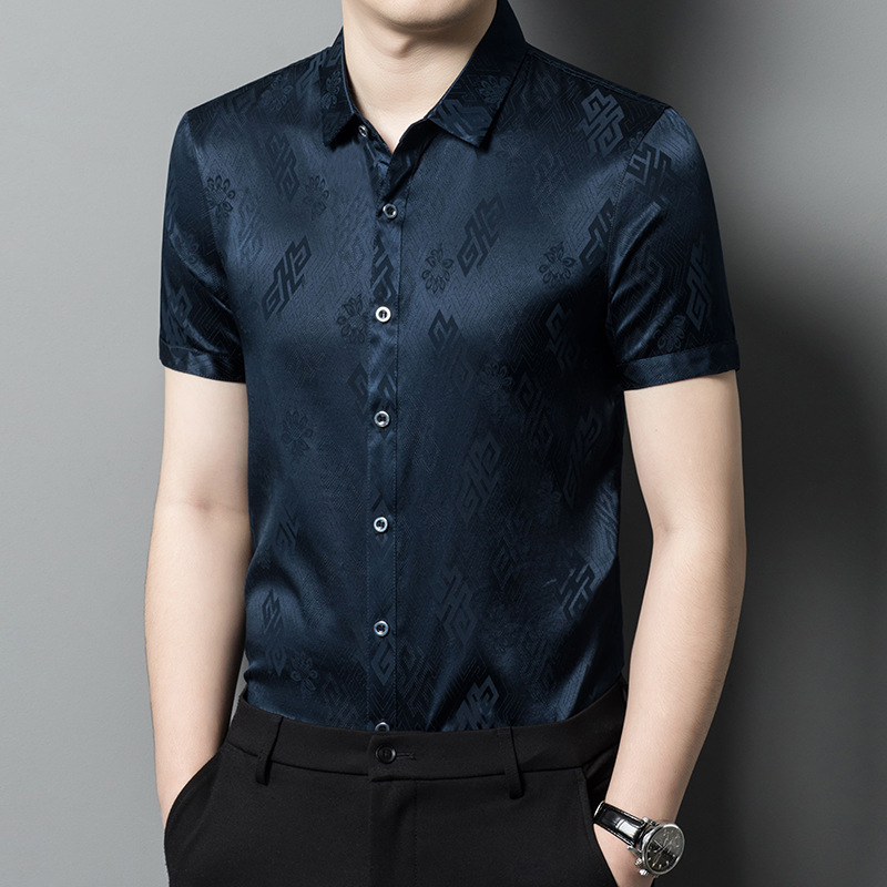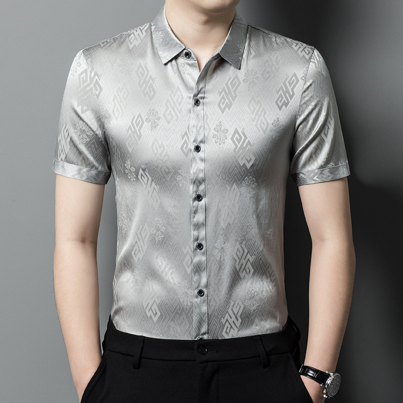 Sơ mi nam lụa dâu tằm công sở cao cấp sơ mi ngắn tay thời trang mùa hè mỏng áo đơn giản bố quần áo