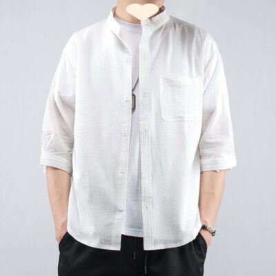 Sơ mi vải lanh nam ngắn tay rộng rãi cỡ lớn gió nửa tay áo khoác nam thường áo nhà sản xuất bán buôn xuất khẩu