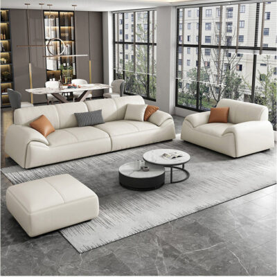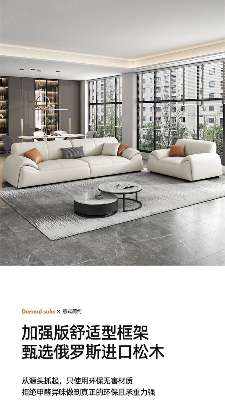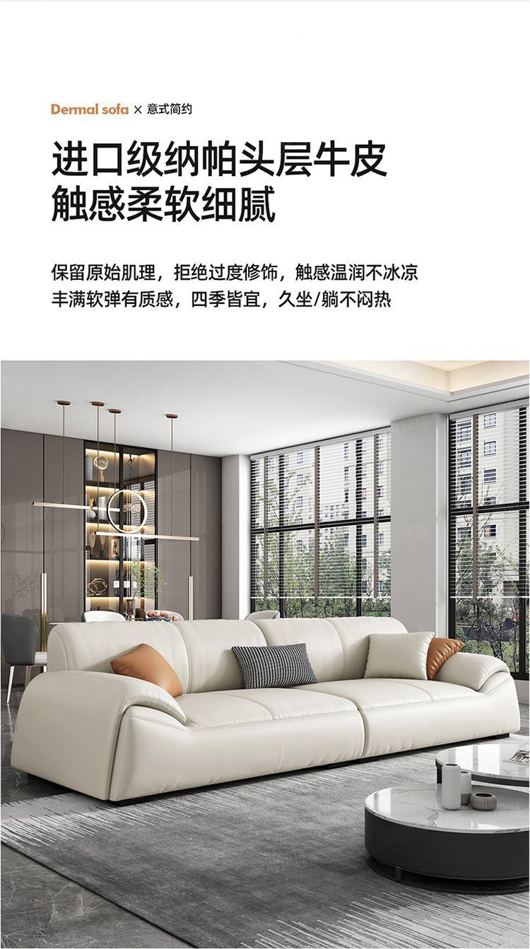 Sofa căn hộ nhỏ căn hộ B&B phòng khách nhẹ nhàng sang trọng phong cách Ý hiện đại tối giản lớp trên cùng đồ nội thất ba người bằng da bò