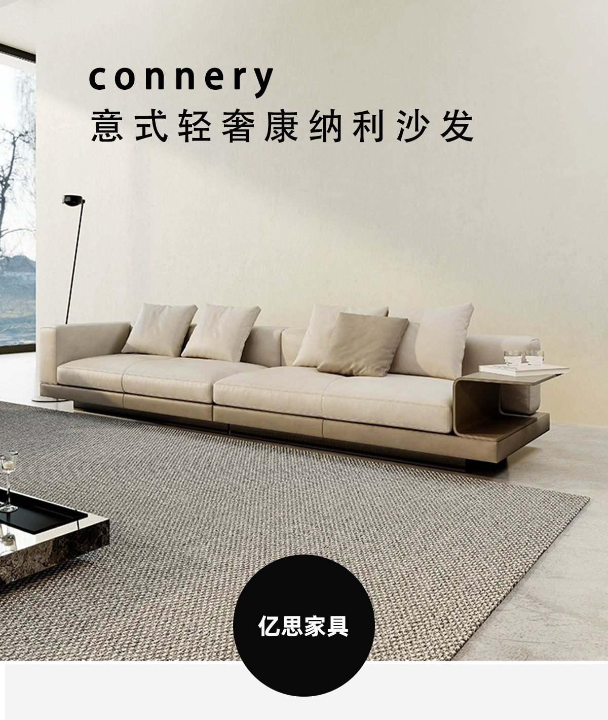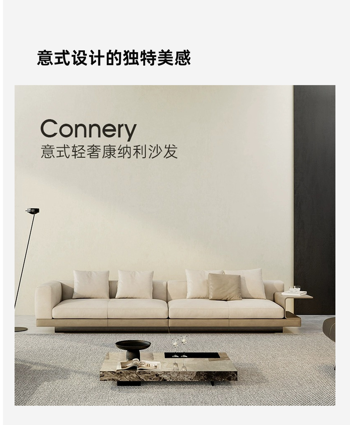 Sofa Connery sofa da nội thất phòng khách Ý biệt thự cao cấp phẳng lớn hàng thẳng Sofa Ý
