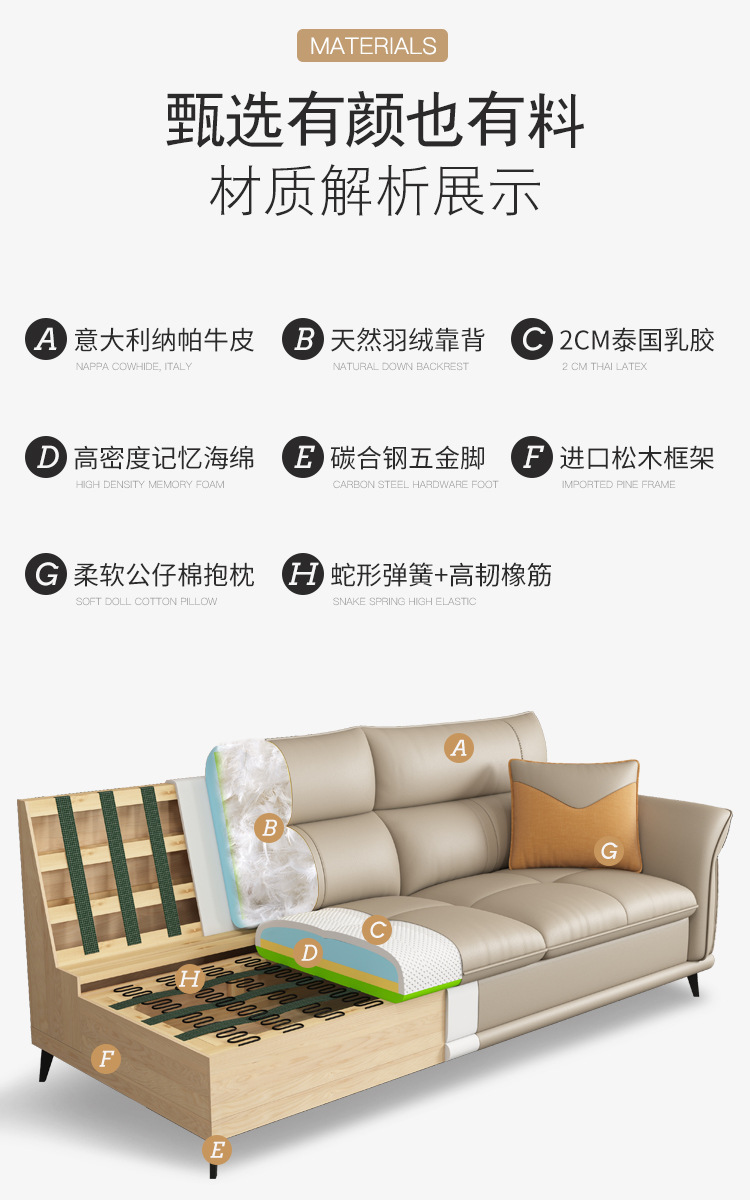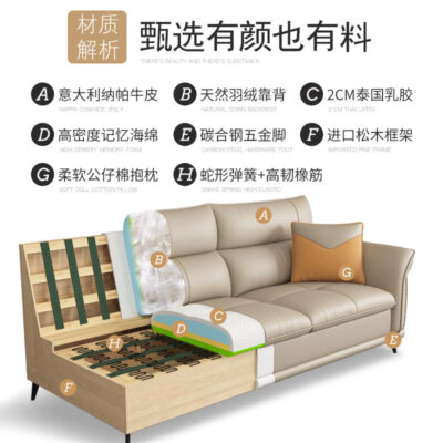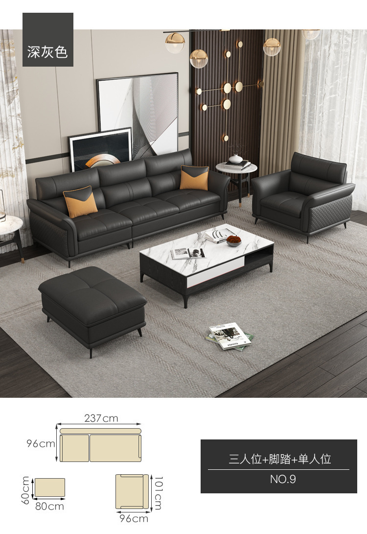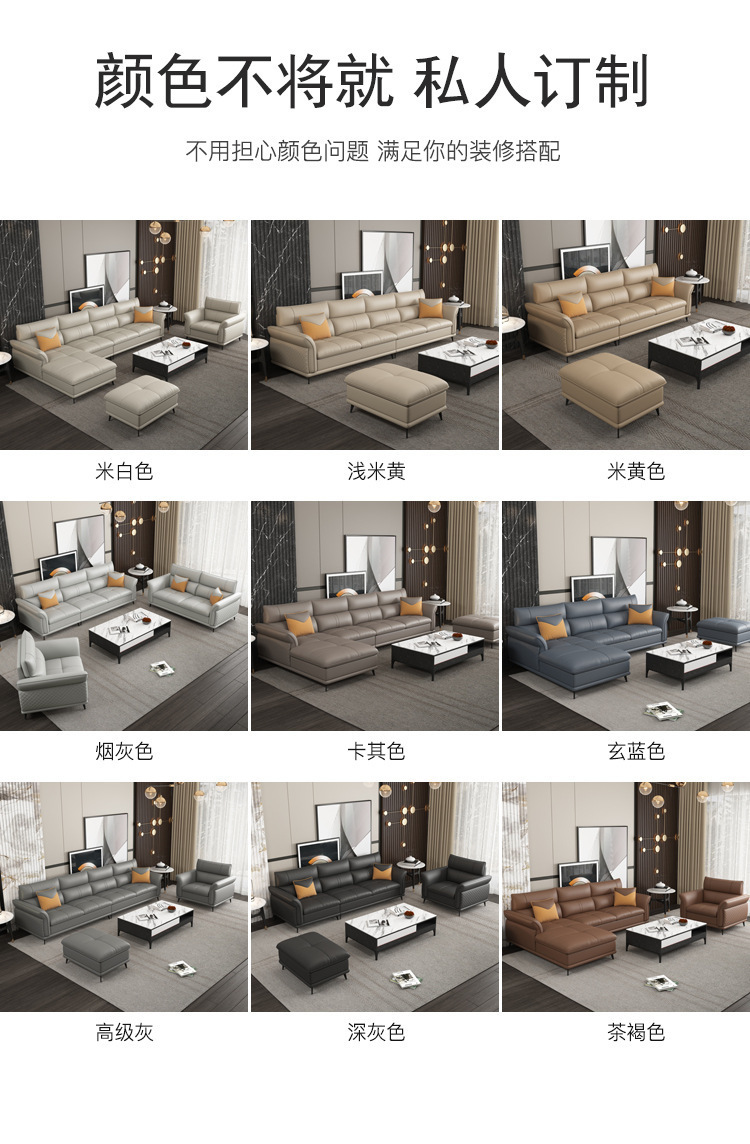 Sofa da căn hộ nhỏ lớp đầu da bò kết hợp phòng khách hiện đại tối giản Bắc Âu Ý tối giản sofa da nghệ thuật