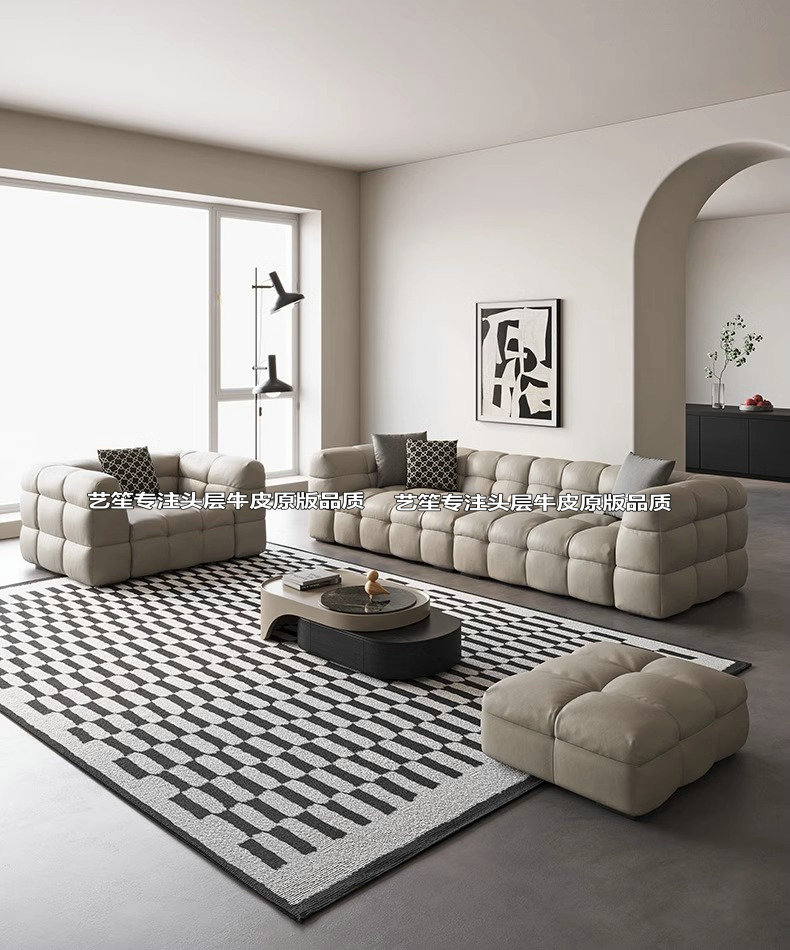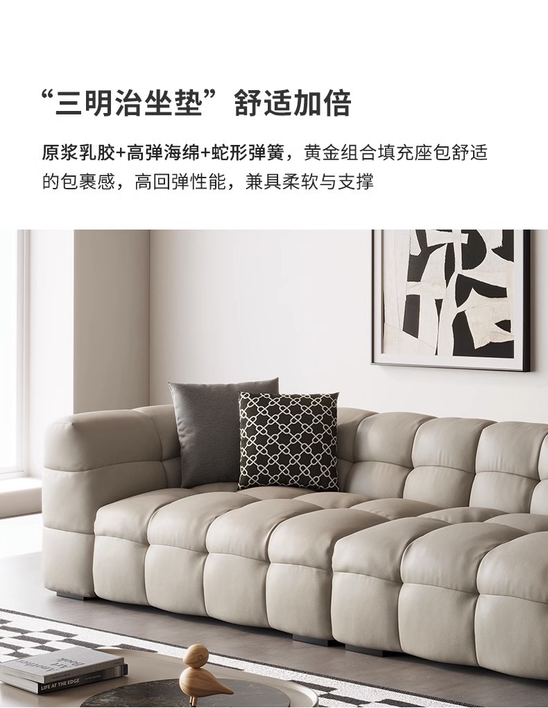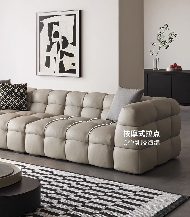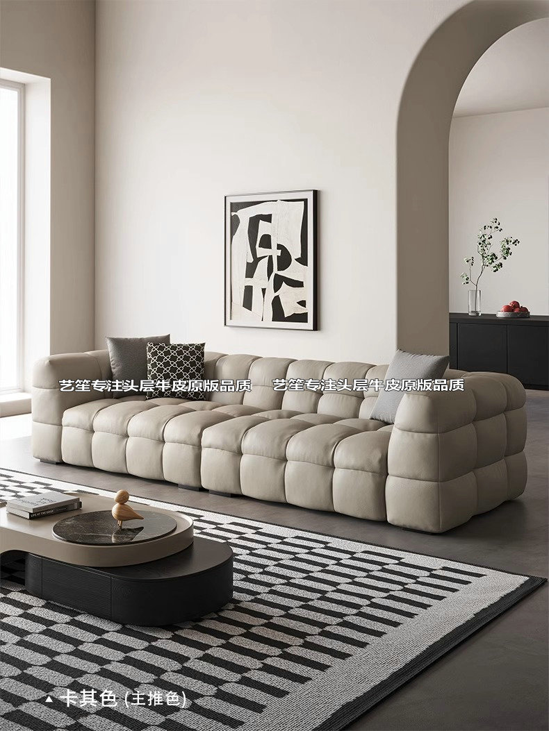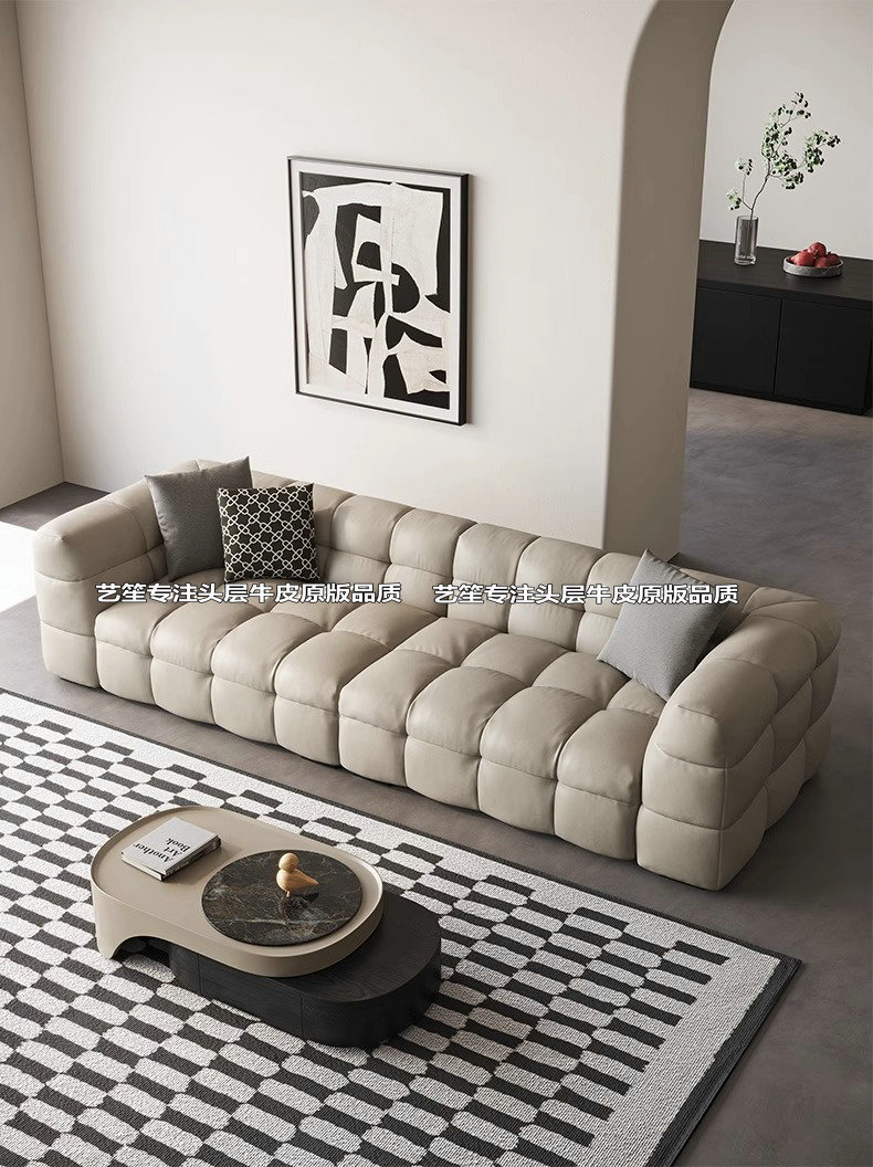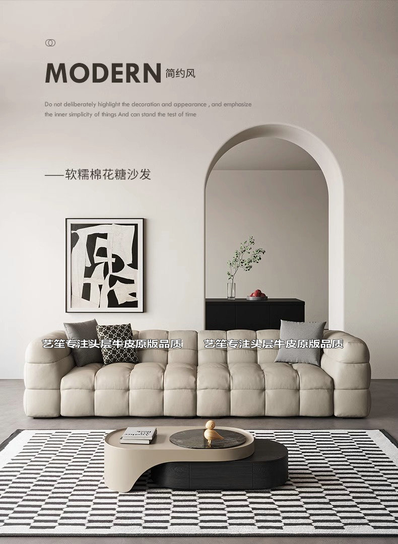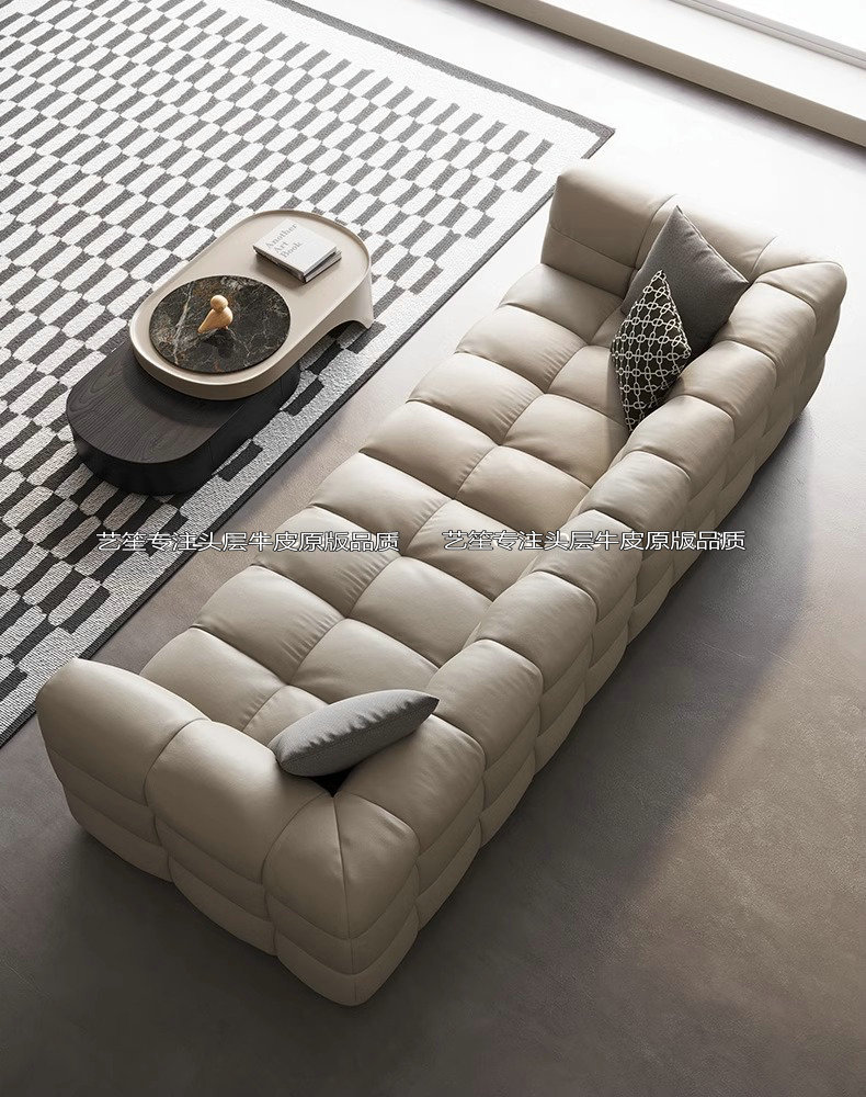 Sofa da marshmallow phòng khách đẹp hiện đại sang trọng lớp trên cùng da bò Ý sofa mây vuông tối giản phong cách Pháp