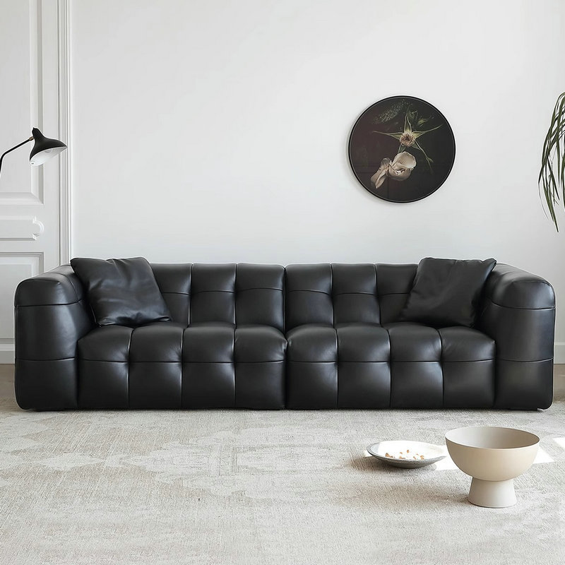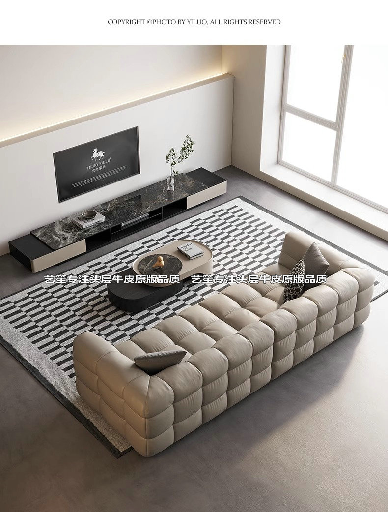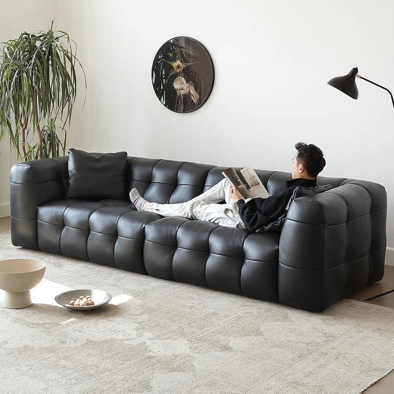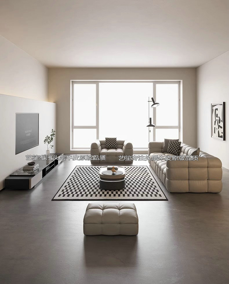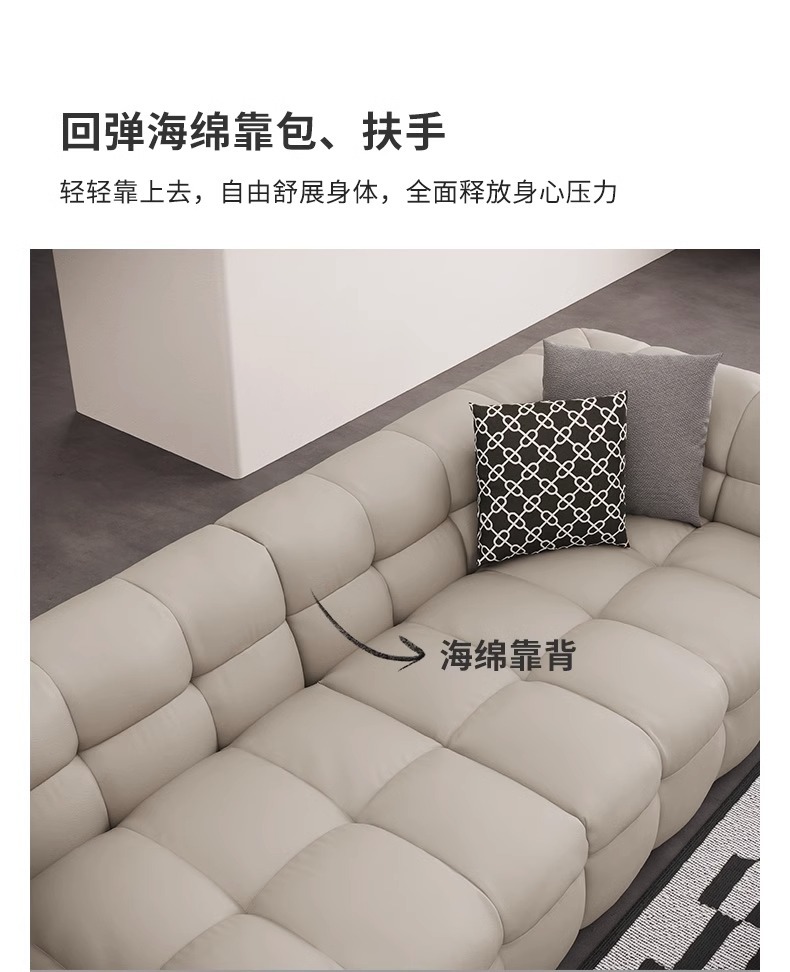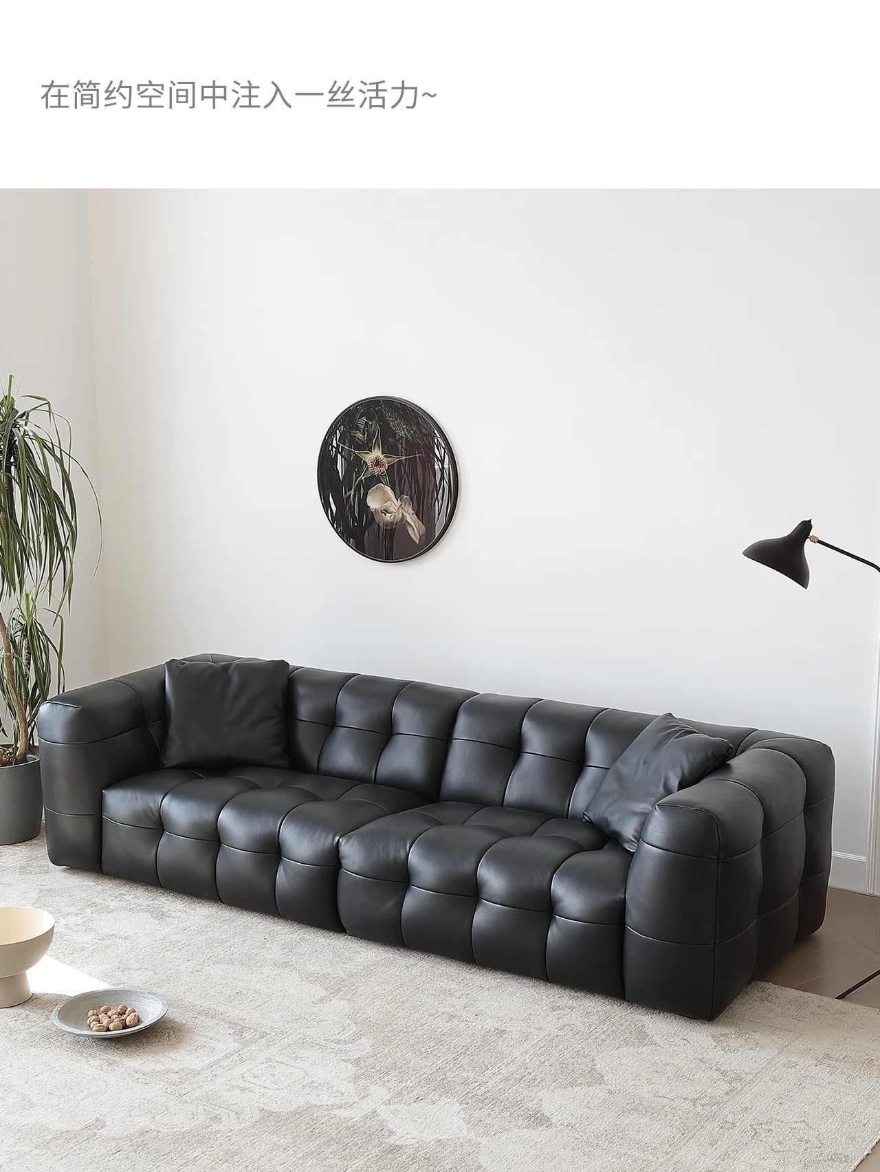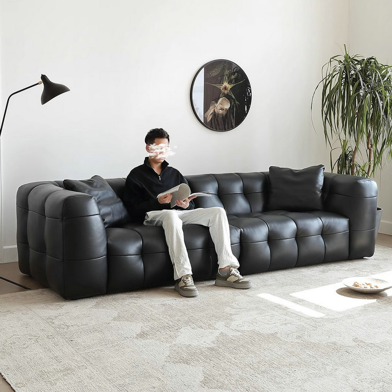 Sofa da marshmallow phòng khách đẹp hiện đại sang trọng lớp trên cùng da bò Ý sofa mây vuông tối giản phong cách Pháp