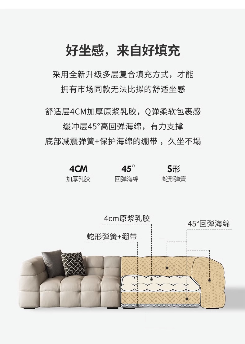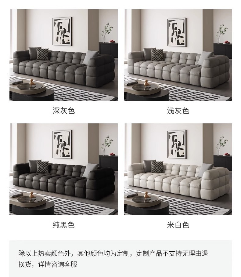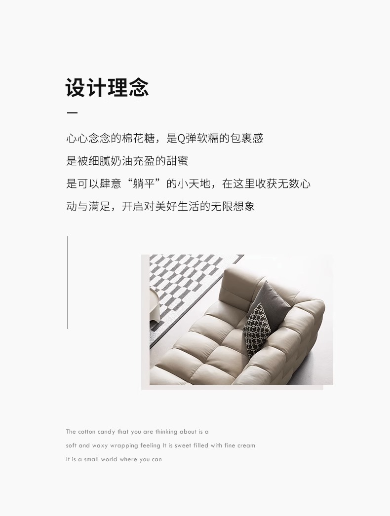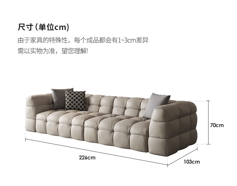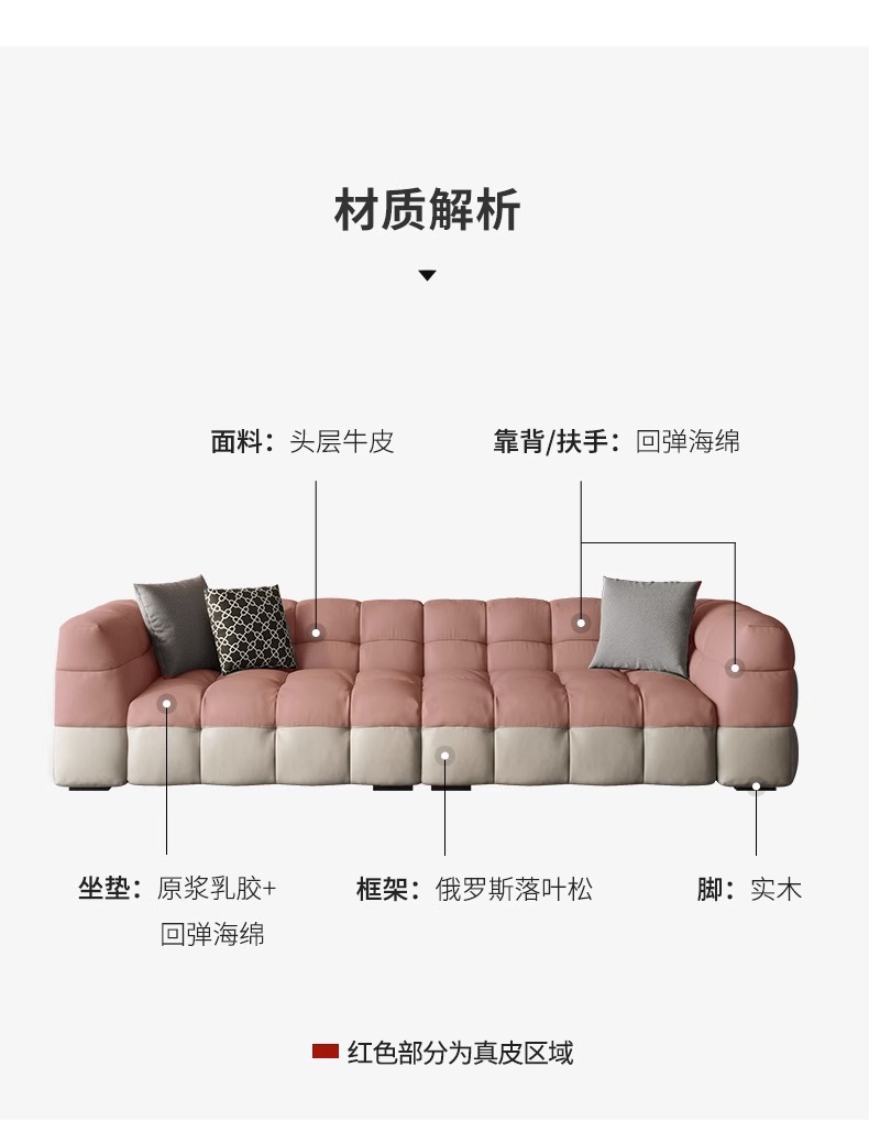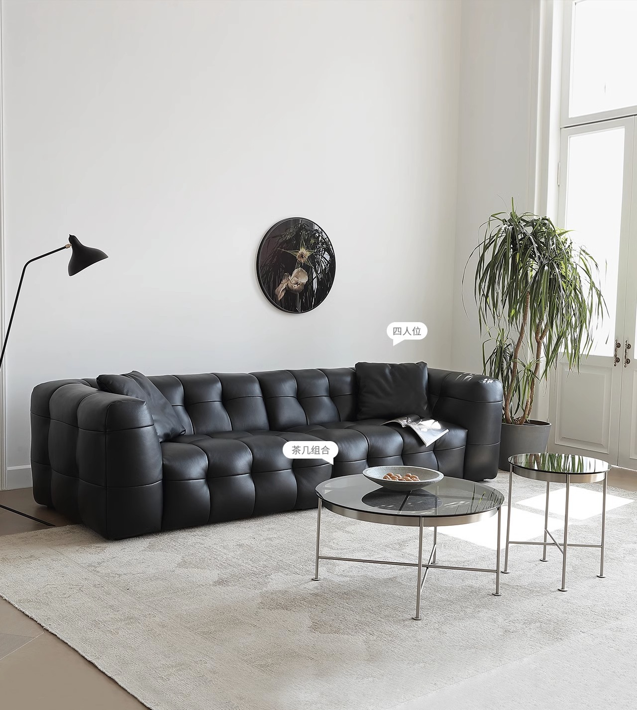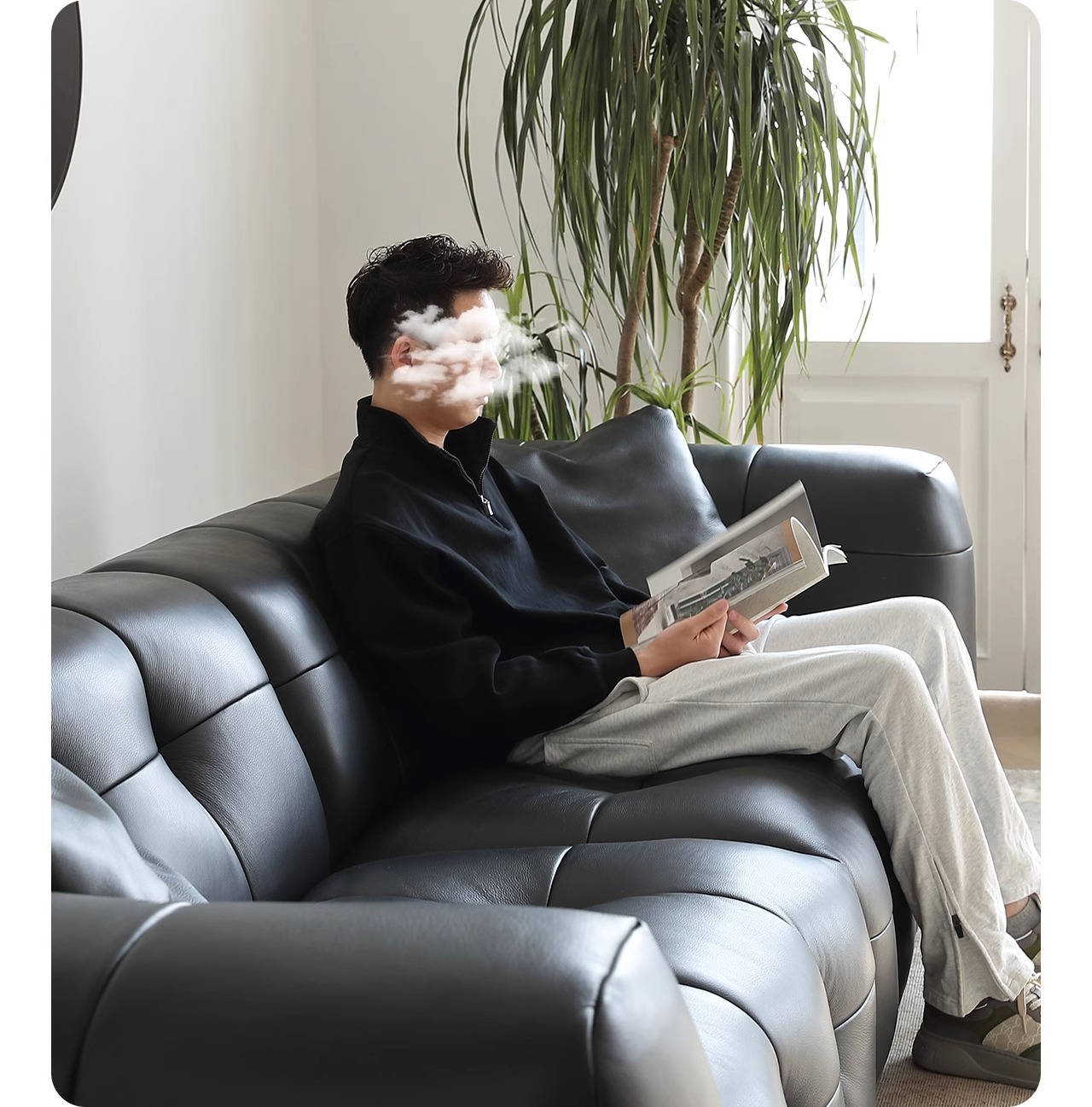 Sofa da marshmallow phòng khách đẹp hiện đại sang trọng lớp trên cùng da bò Ý sofa mây vuông tối giản phong cách Pháp