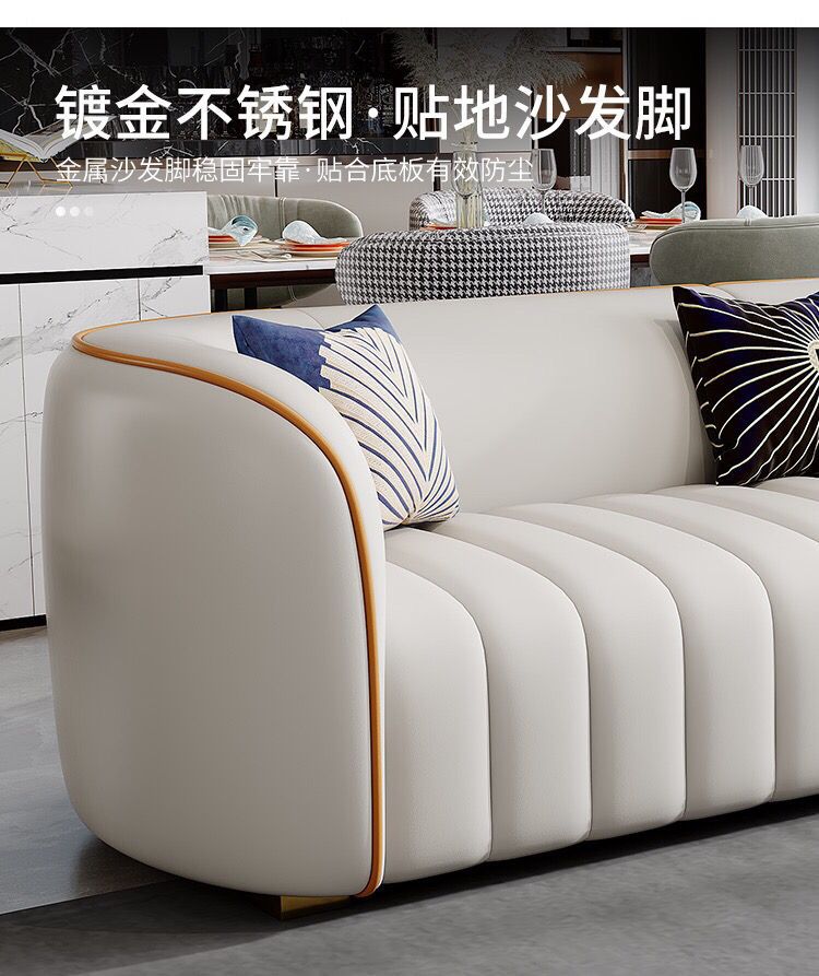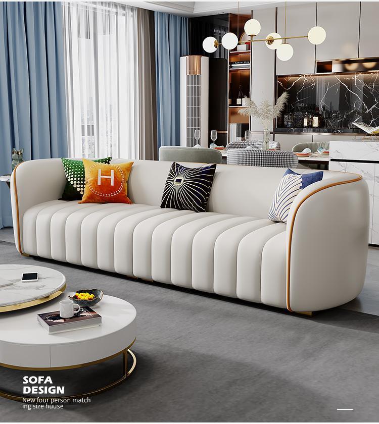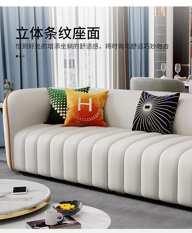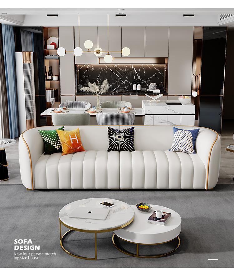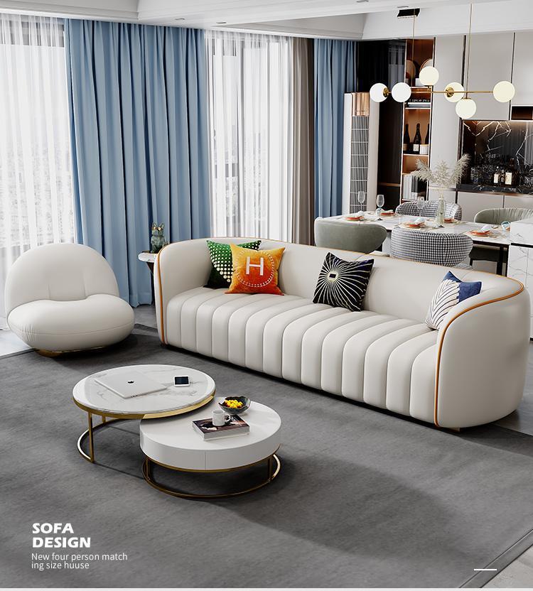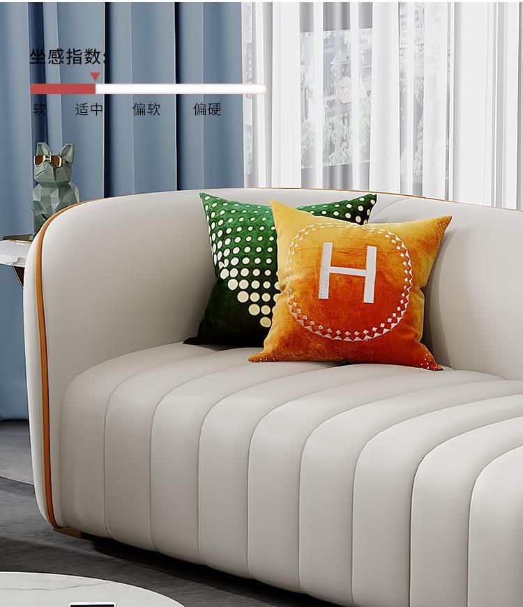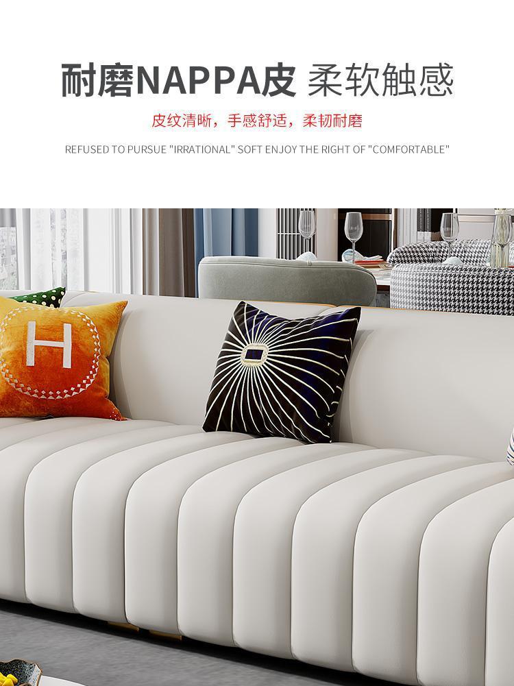 Sofa da nghệ thuật sang trọng nhẹ kết hợp phòng khách Bắc Âu hiện đại tối giản căn hộ nhỏ cong ba người da nghệ thuật sofa lưới màu đỏ
