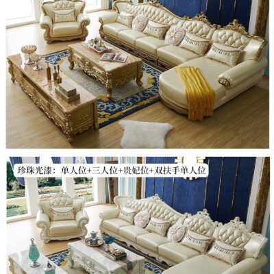 Sofa da phòng khách sofa góc châu âu chung cư lớn nhỏ sofa da nghệ thuật kết hợp bàn ghế bộ hiện đại đơn giản