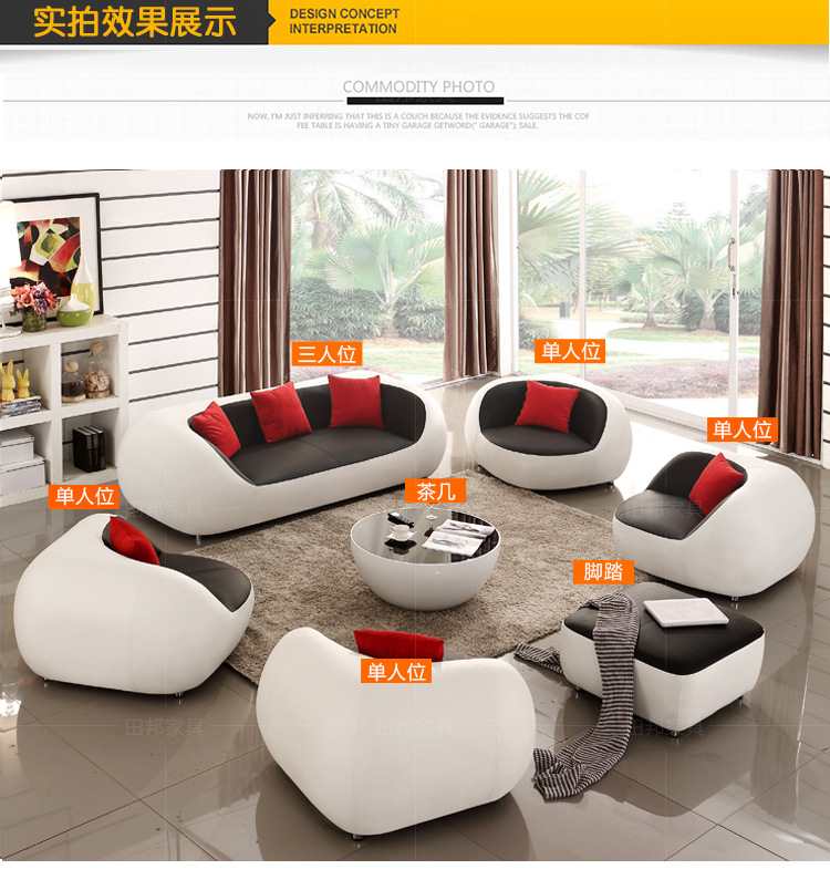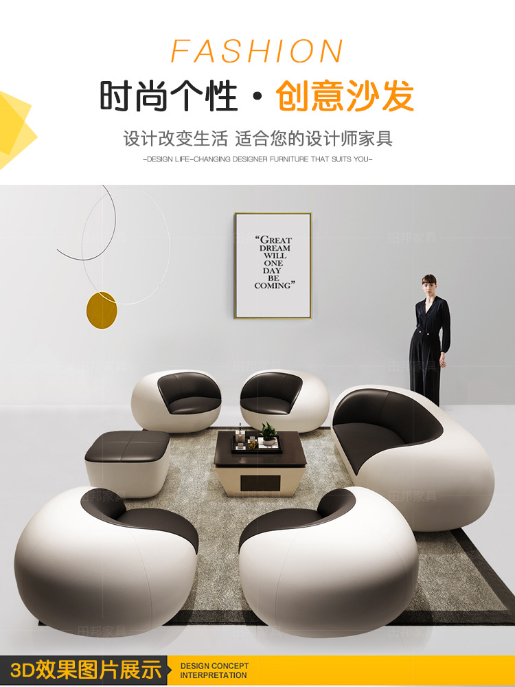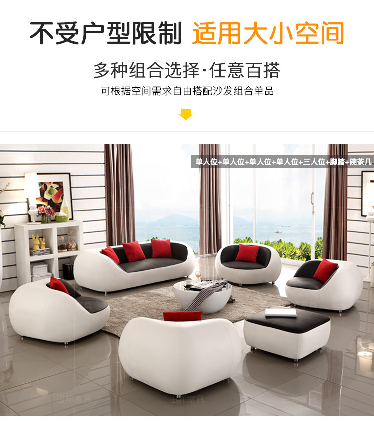 Sofa da thời trang và sáng tạo kết hợp vòng cung cá tính hiện đại văn phòng giản dị lớp trên cùng bằng da bò đồ nội thất có hình dạng đặc biệt