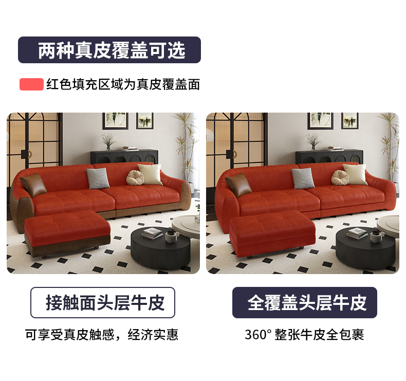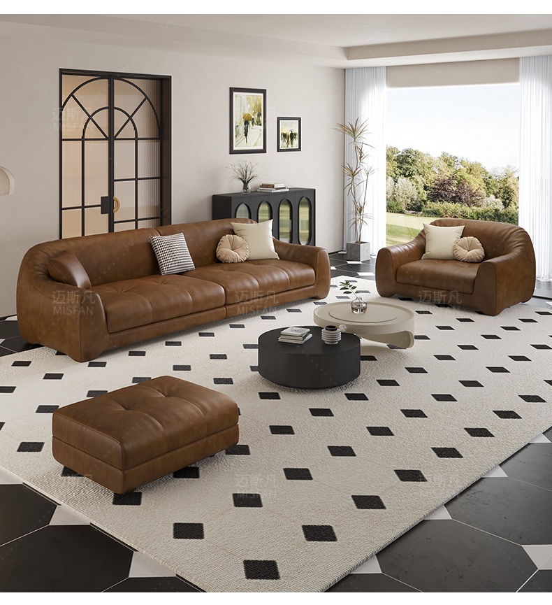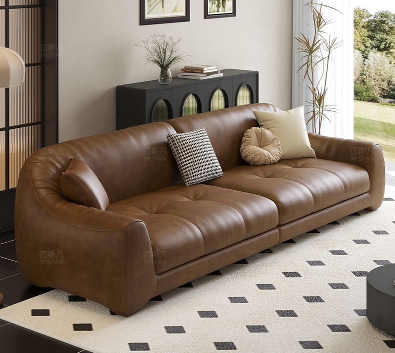 Sofa da Ý lớp đầu tiên da bò lớn phòng khách thẳng hàng retro sofa mềm mại đàn piano nhẹ sang trọng toàn bộ da
