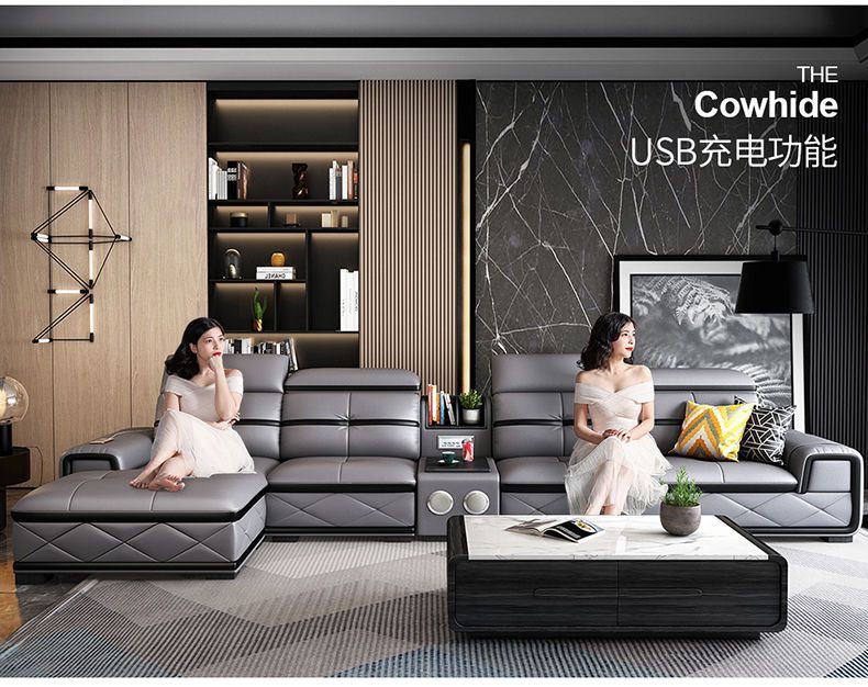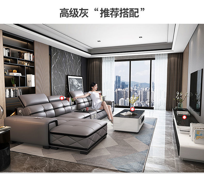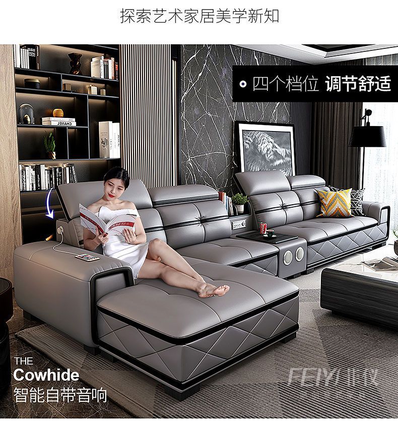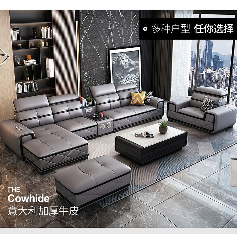Sofa đầu lớp da bò căn hộ nhỏ phòng khách góc kết hợp sofa da nghệ thuật nội thất sofa tối giản hiện đại