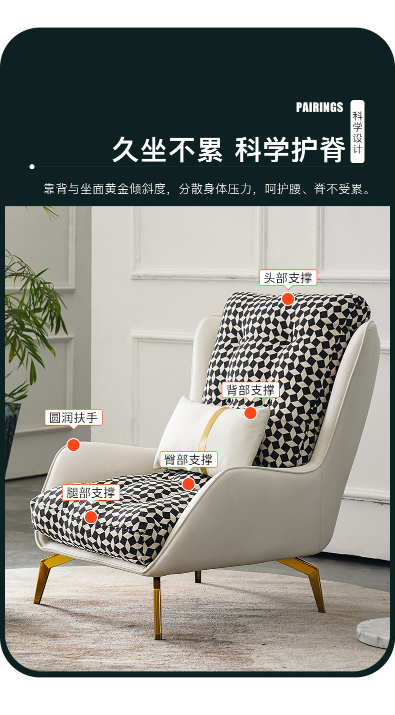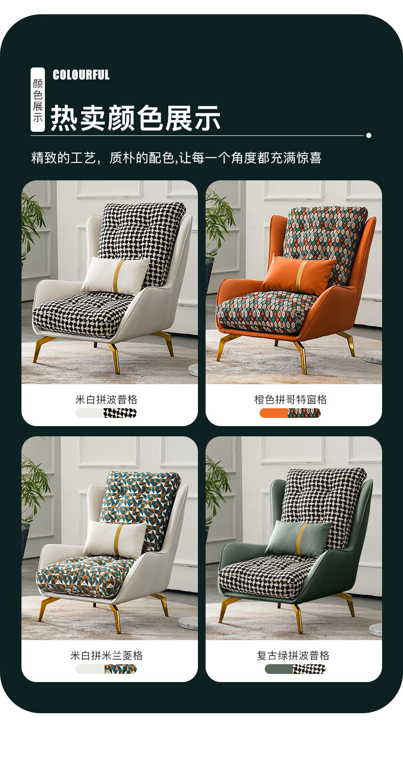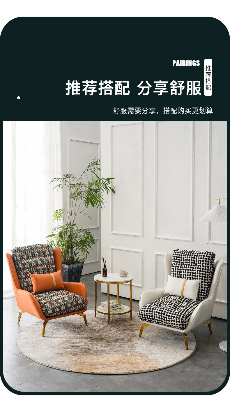 Sofa đơn thiết kế người Mỹ nhà phòng khách giải trí đàm phán kinh doanh hoa vải lưng hổ ghế sofa