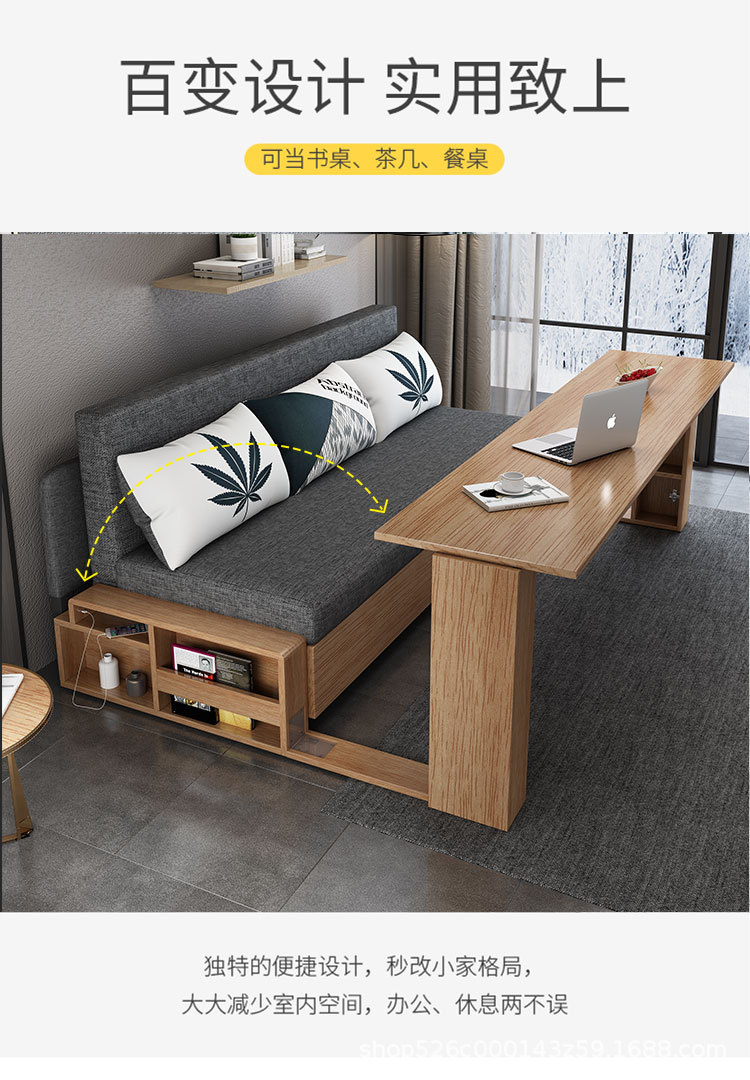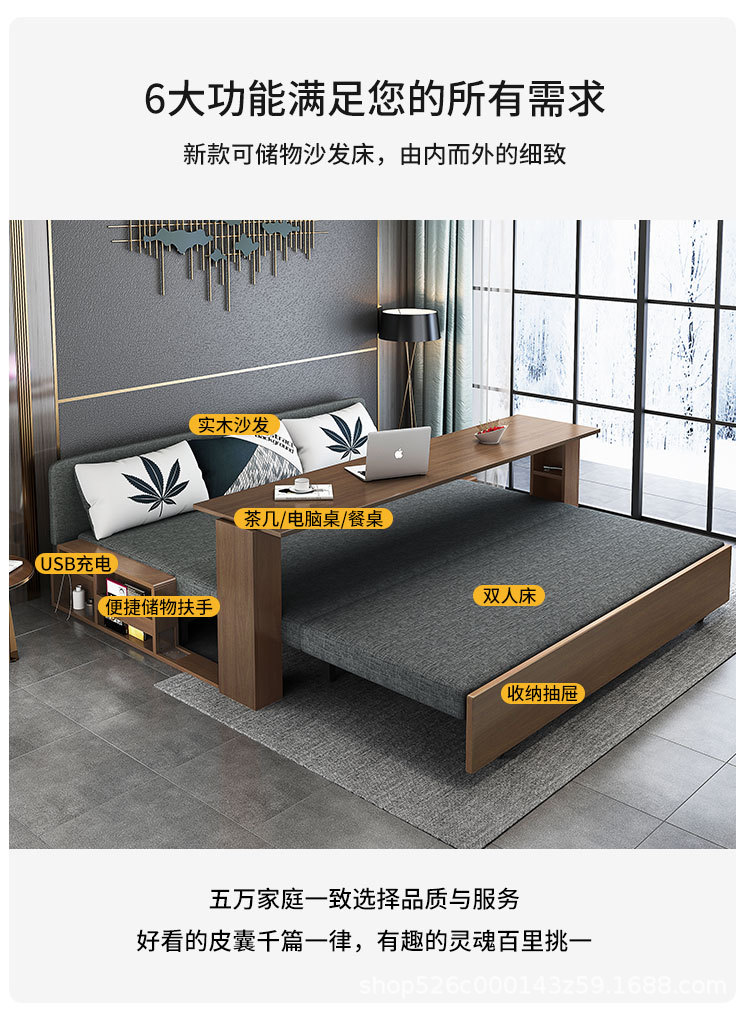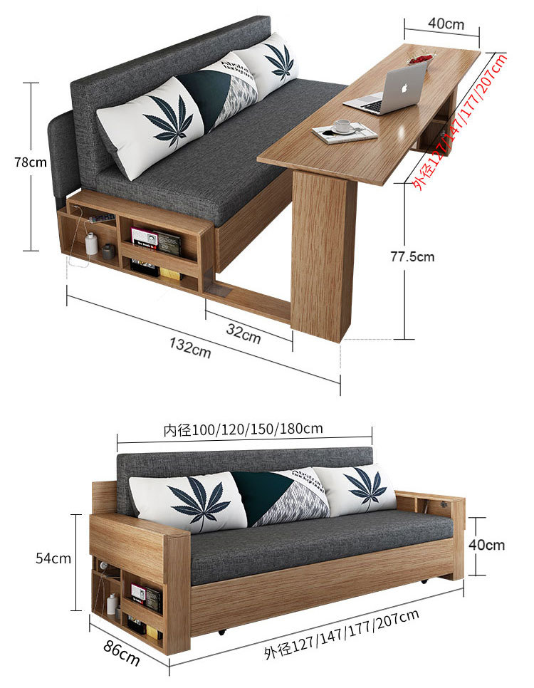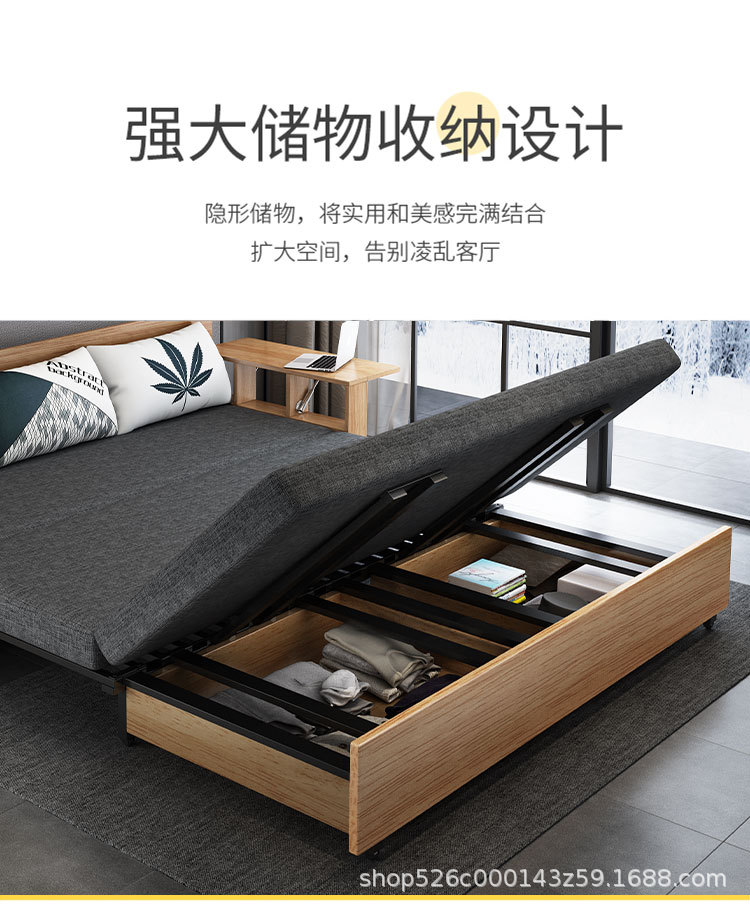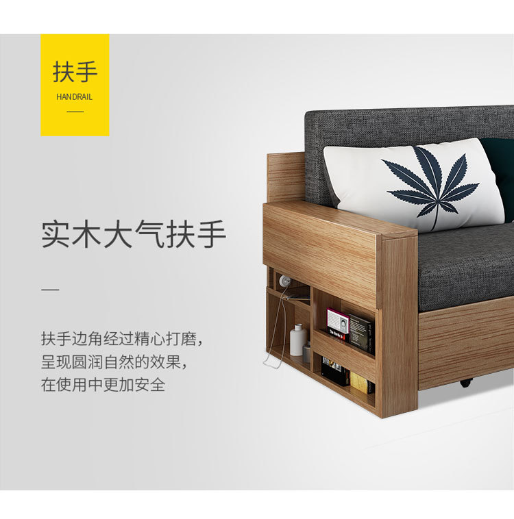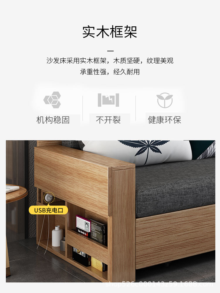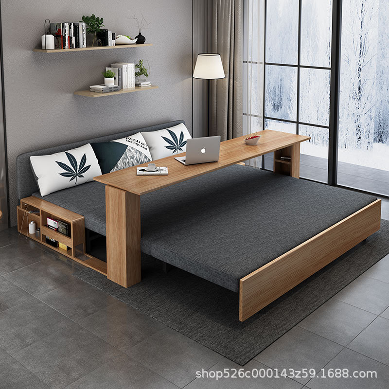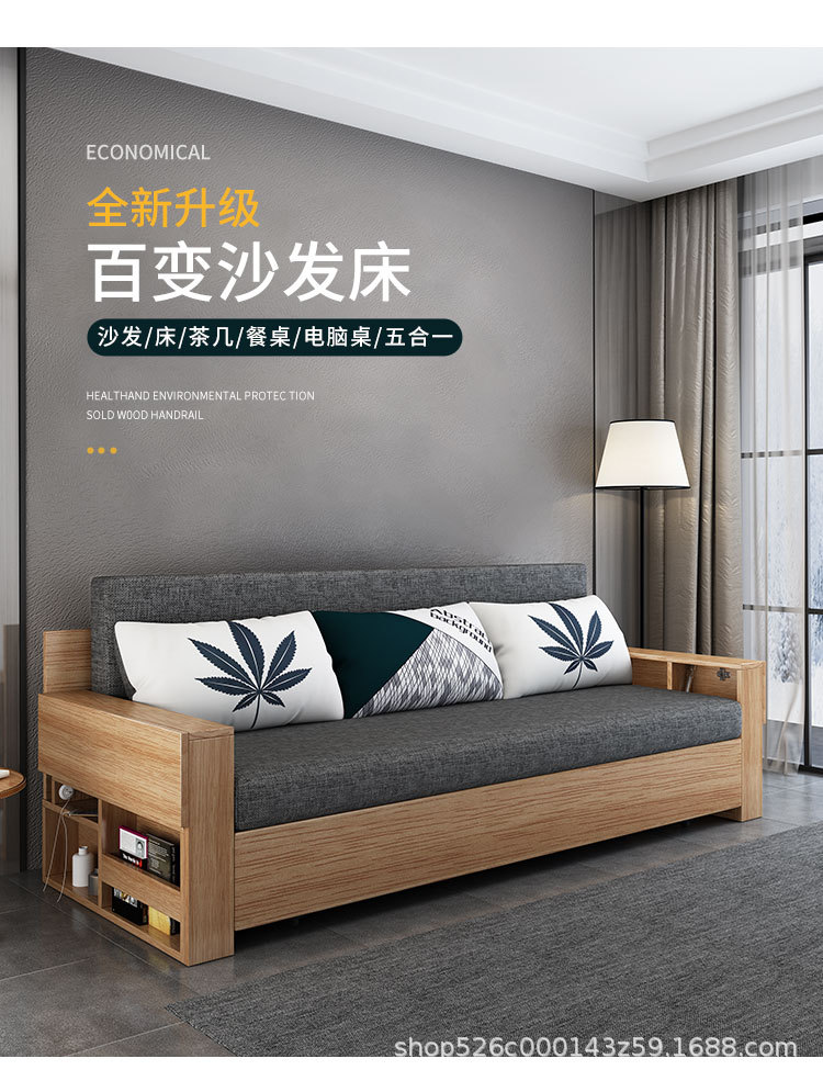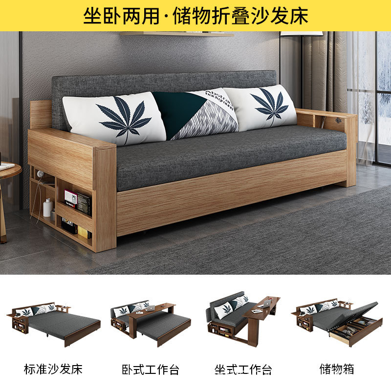 Sofa giường đa năng bằng gỗ nguyên khối có thể gập lại ngồi và nằm đơn giản kéo đẩy lưu trữ phòng khách căn hộ nhỏ sofa đôi đa chức năng