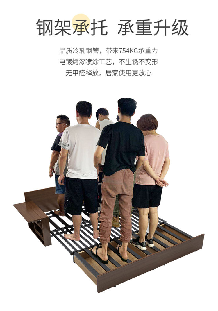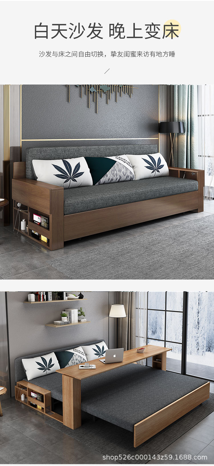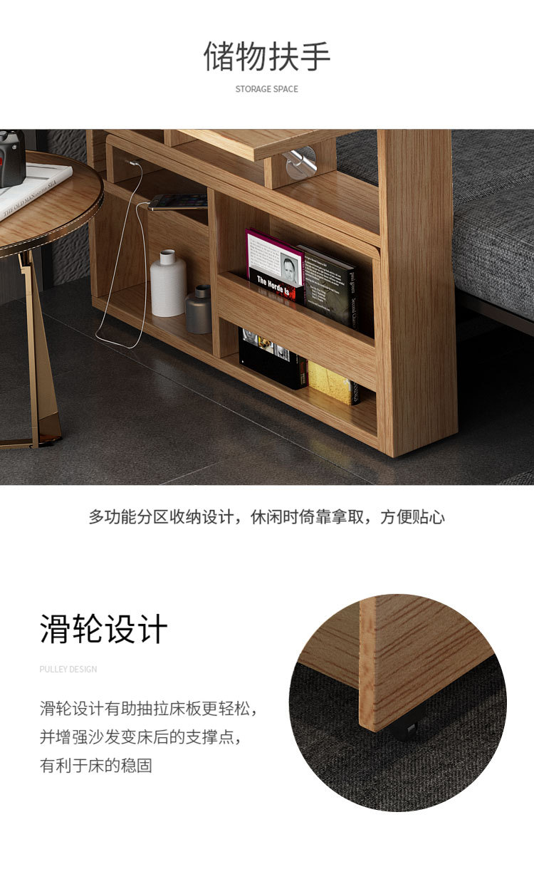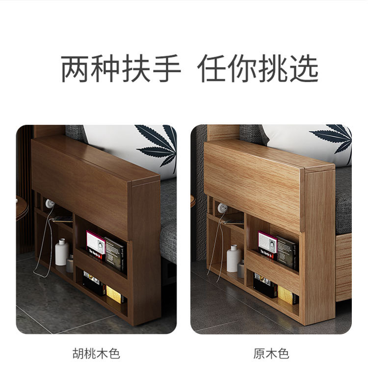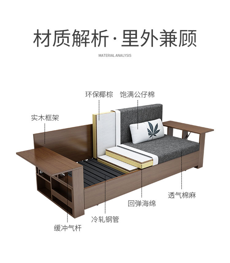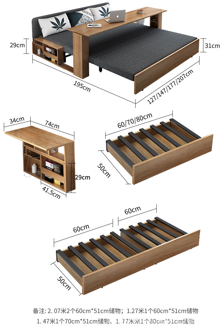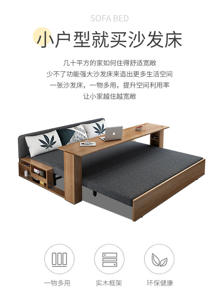 Sofa giường đa năng bằng gỗ nguyên khối có thể gập lại ngồi và nằm đơn giản kéo đẩy lưu trữ phòng khách căn hộ nhỏ sofa đôi đa chức năng