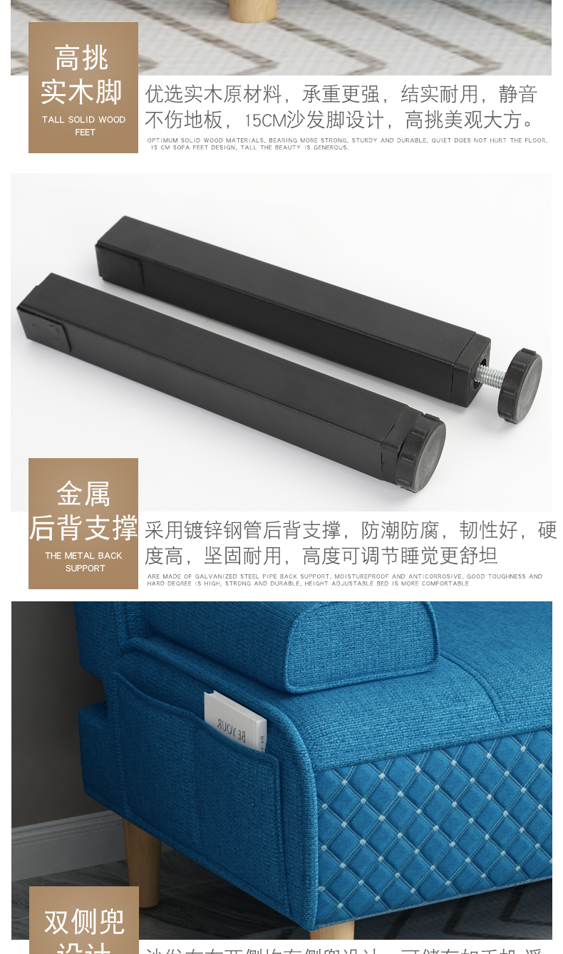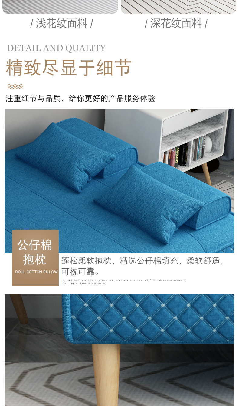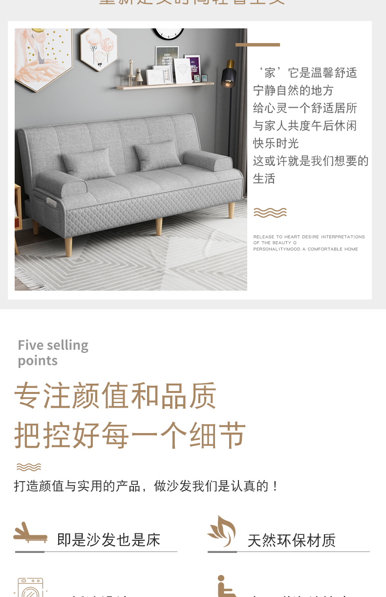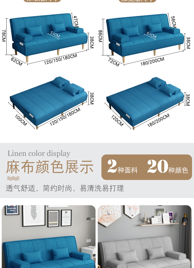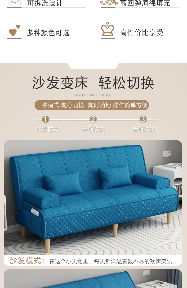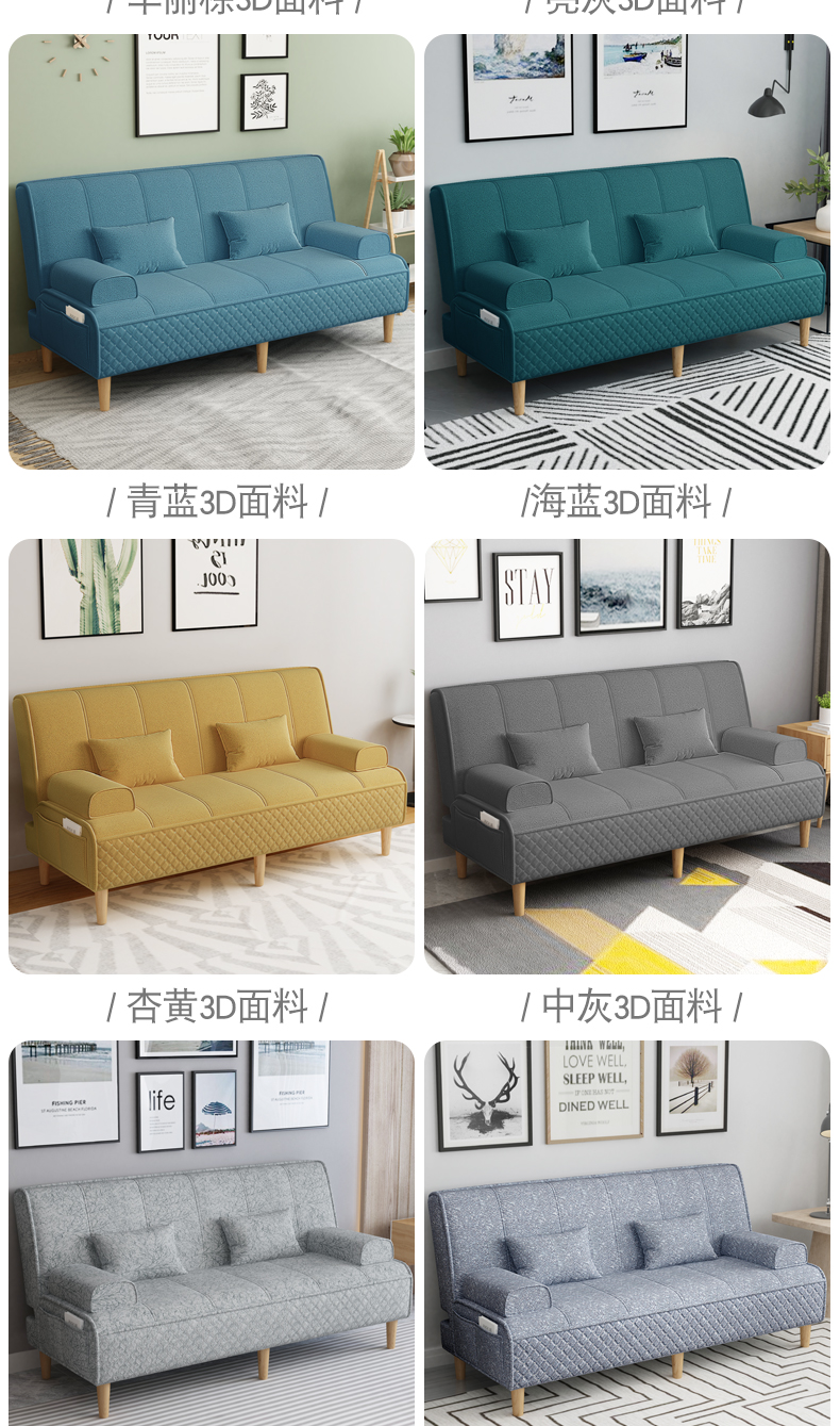 Sofa giường gấp đa năng sofa vải đôi 3 người cho thuê phòng khách căn hộ nhỏ đơn giản người độc thân