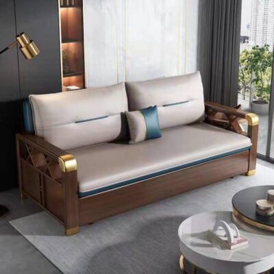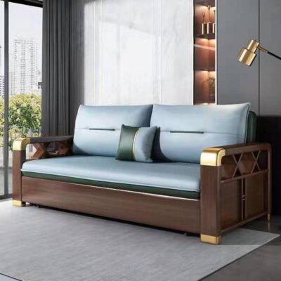 Sofa gỗ chắc chắn giường đôi đa năng căn hộ nhỏ phòng khách không giặt vải công nghệ gấp mới kéo đẩy lưu trữ