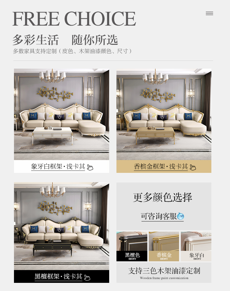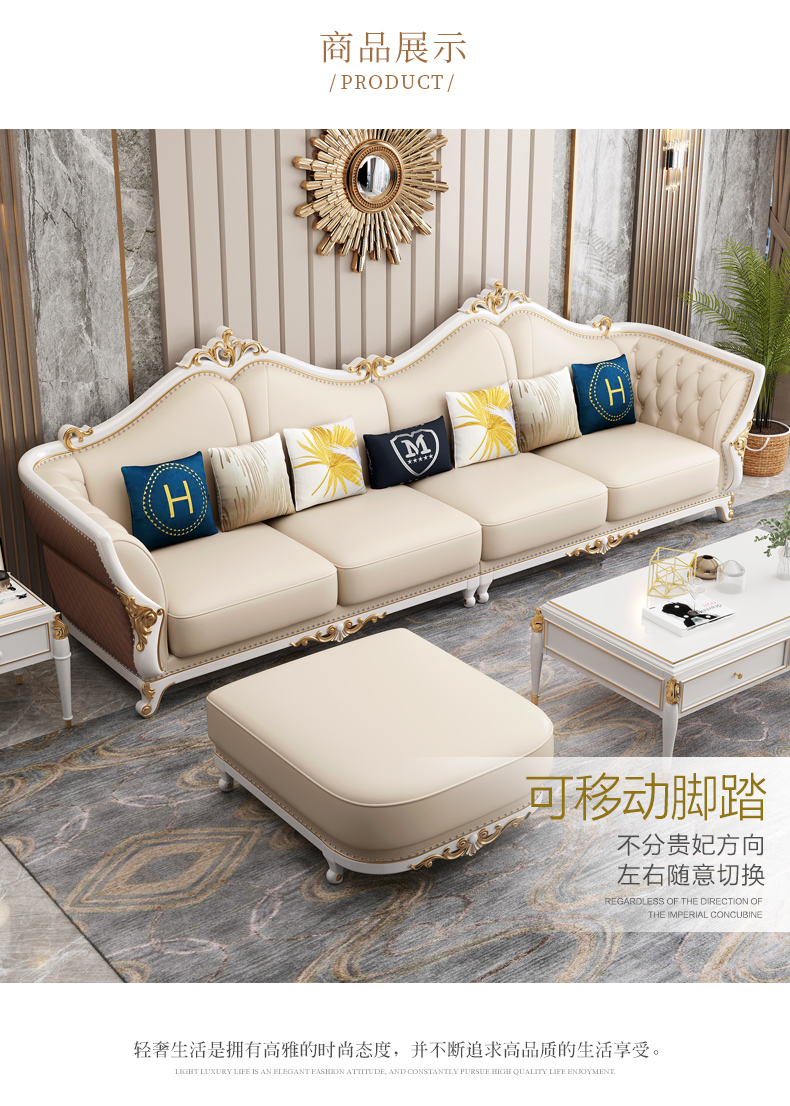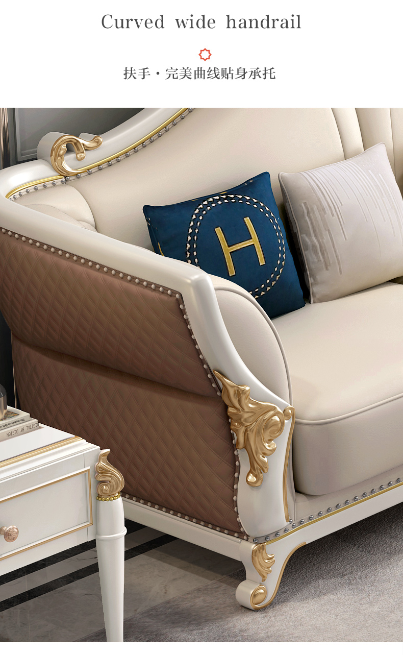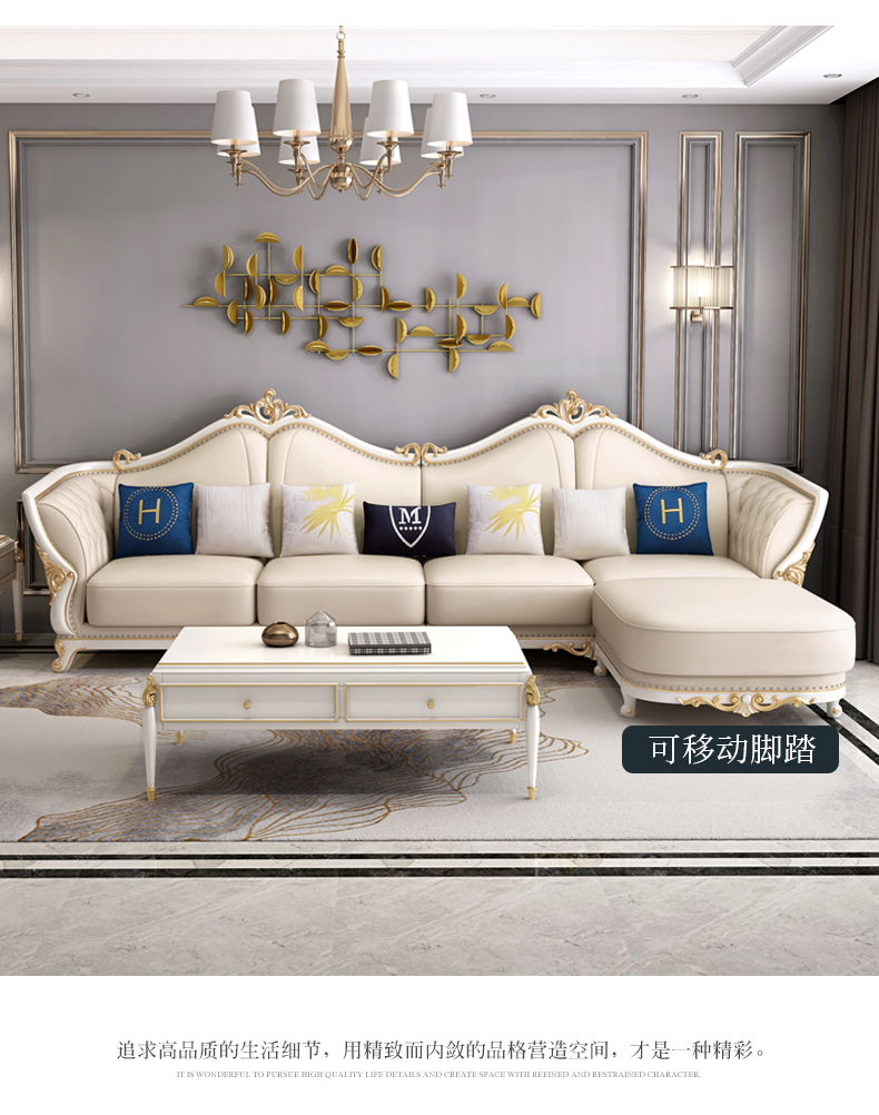 Sofa gỗ cứng màu sang trọng kiểu Mỹ Sofa da phong cách Châu Âu kết hợp phòng khách hoàn thiện căn hộ nhỏ góc nội thất Châu Âu đơn giản