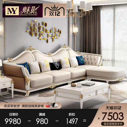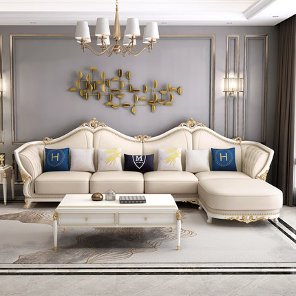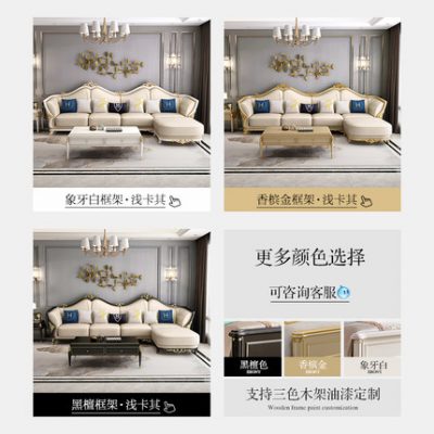 Sofa gỗ cứng màu sang trọng kiểu Mỹ Sofa da phong cách Châu Âu kết hợp phòng khách hoàn thiện căn hộ nhỏ góc nội thất Châu Âu đơn giản