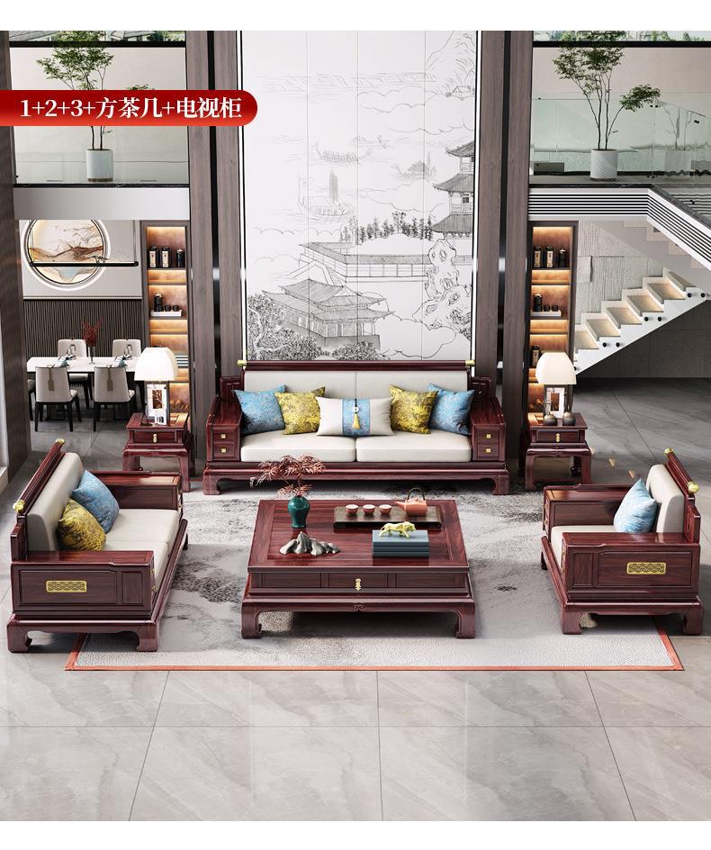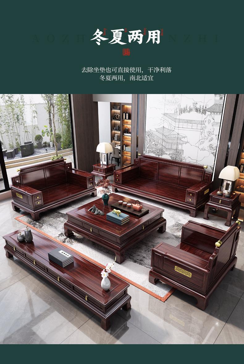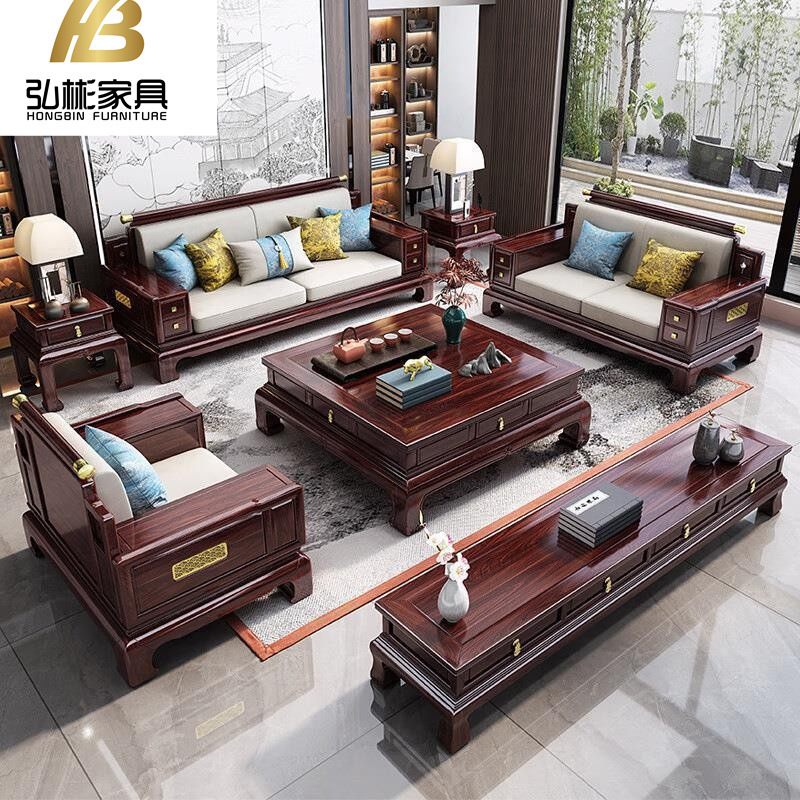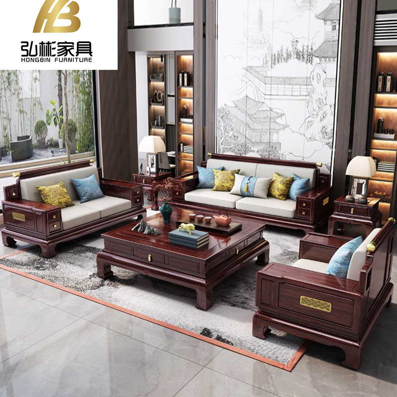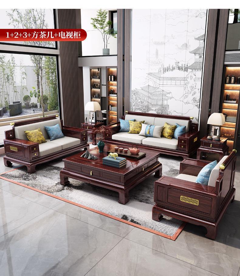 Sofa gỗ mun kiểu Trung Quốc mới Phòng khách biệt thự tân cổ điển phong cách Trung Quốc hiện đại Sofa gỗ nguyên khối quy mô lớn mùa đông và mùa hè