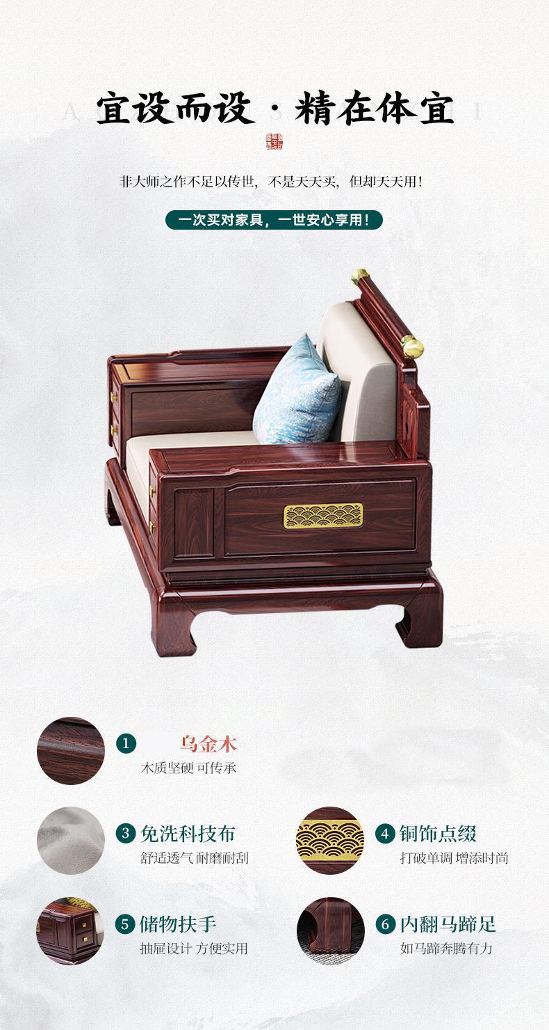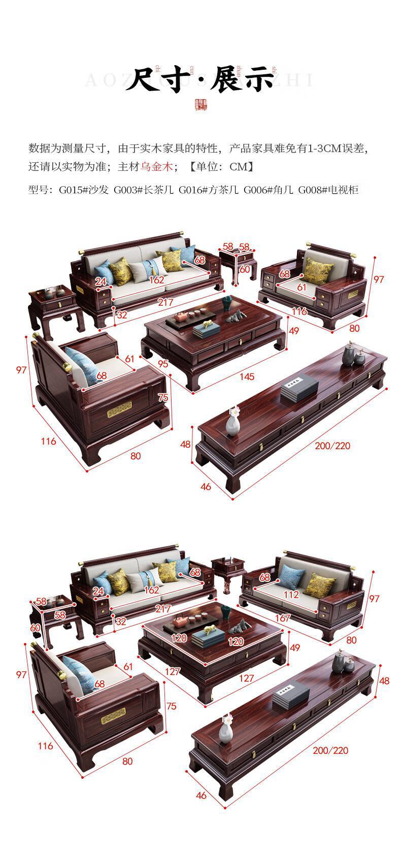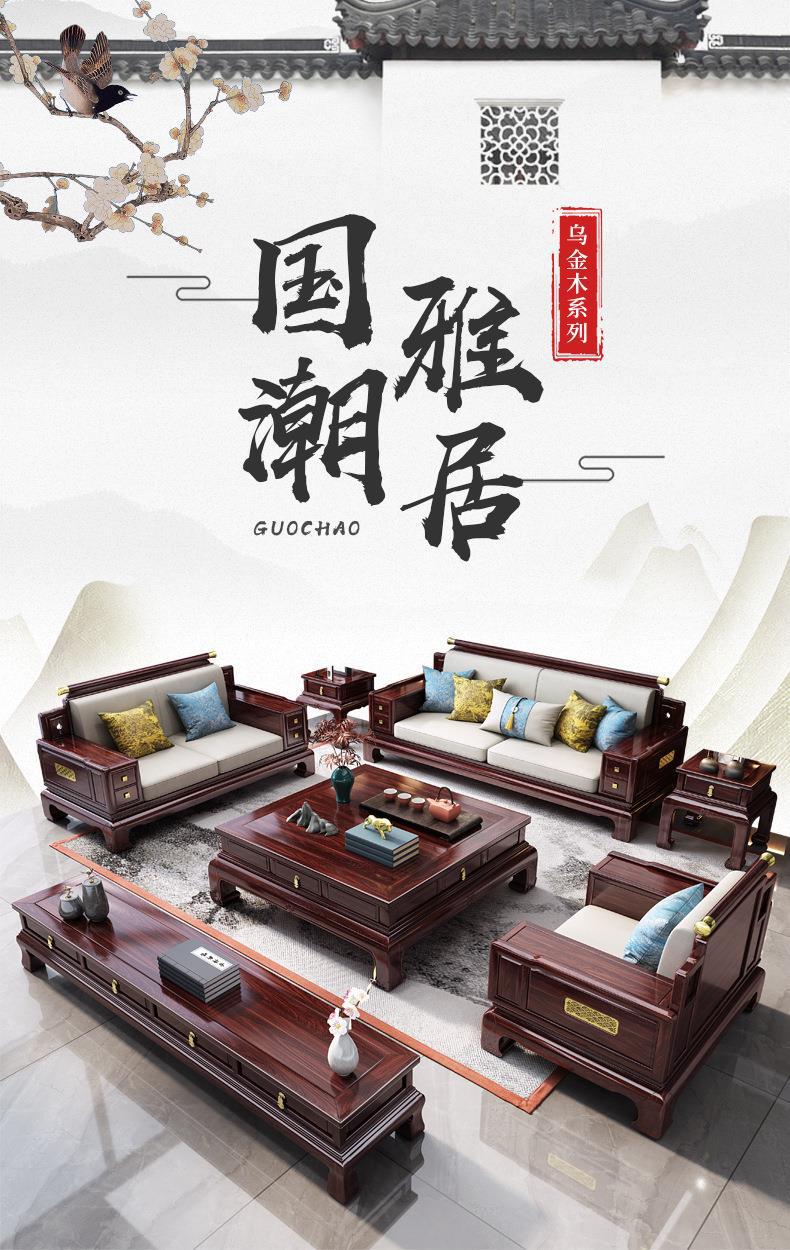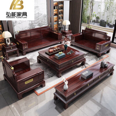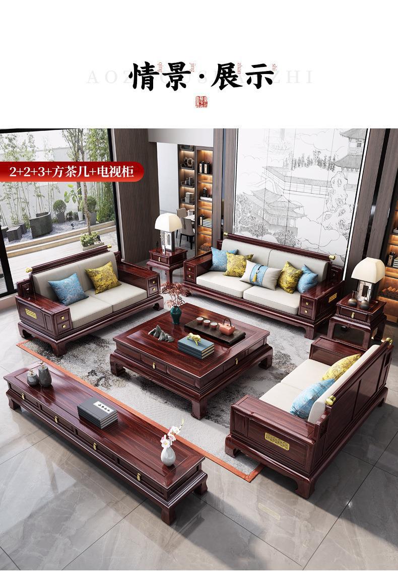 Sofa gỗ mun kiểu Trung Quốc mới Phòng khách biệt thự tân cổ điển phong cách Trung Quốc hiện đại Sofa gỗ nguyên khối quy mô lớn mùa đông và mùa hè