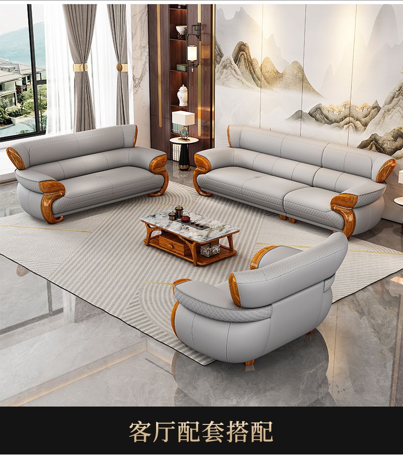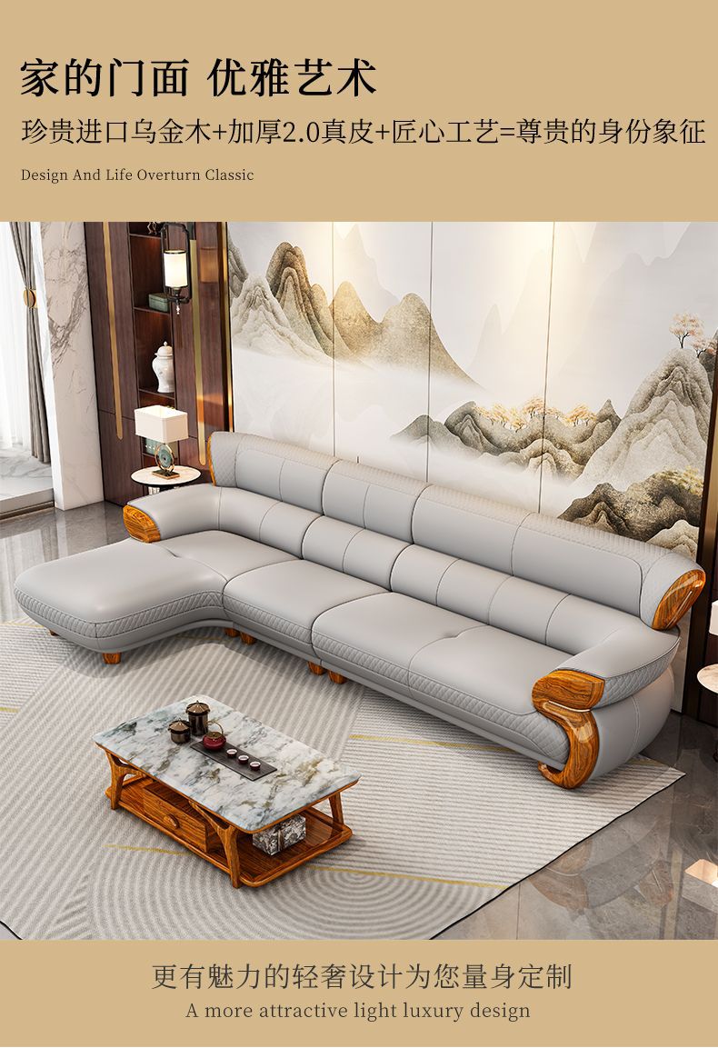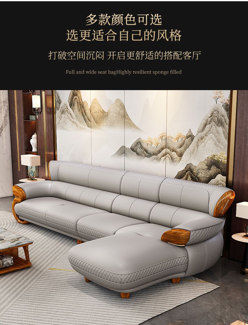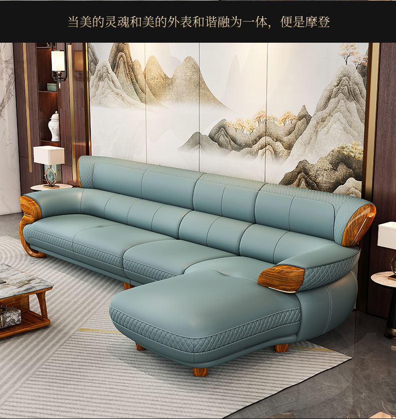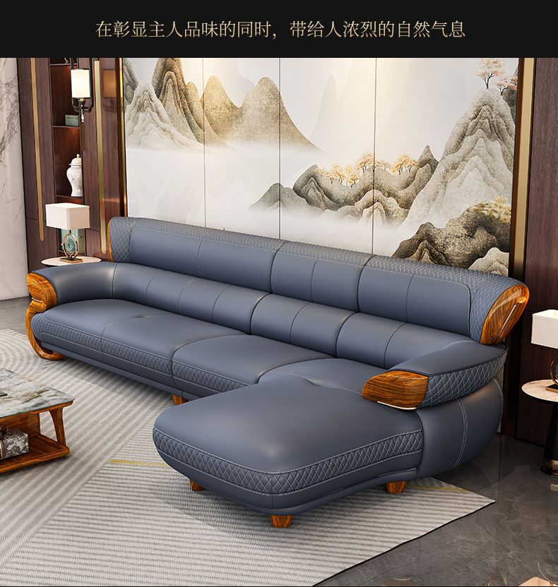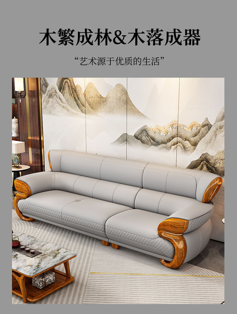 Sofa gỗ mun phong cách Trung Quốc mới hiện đại tối giản phòng khách căn hộ lớn thiết kế mới sofa da gỗ chắc chắn