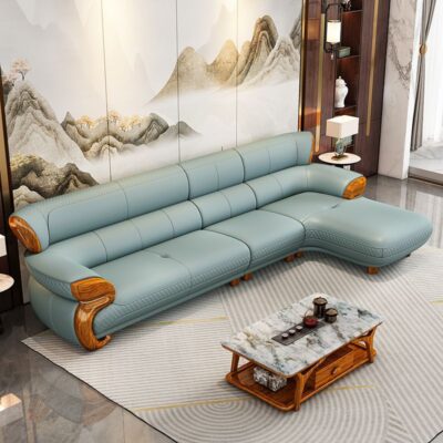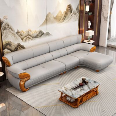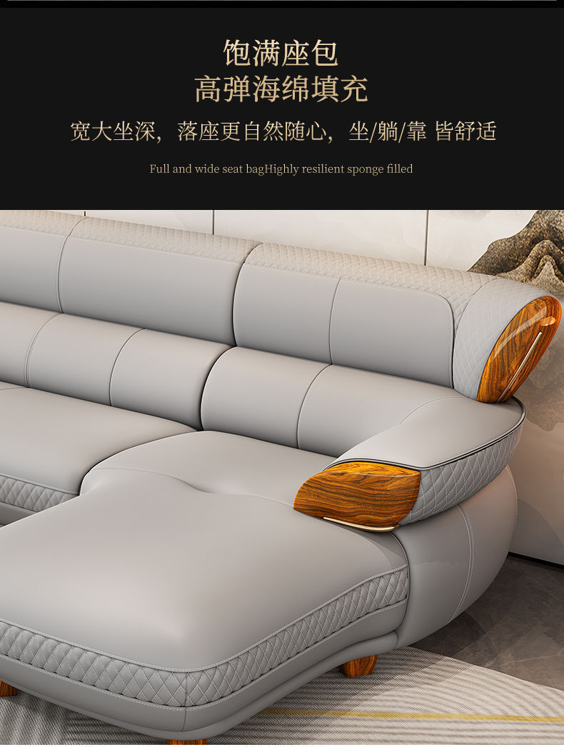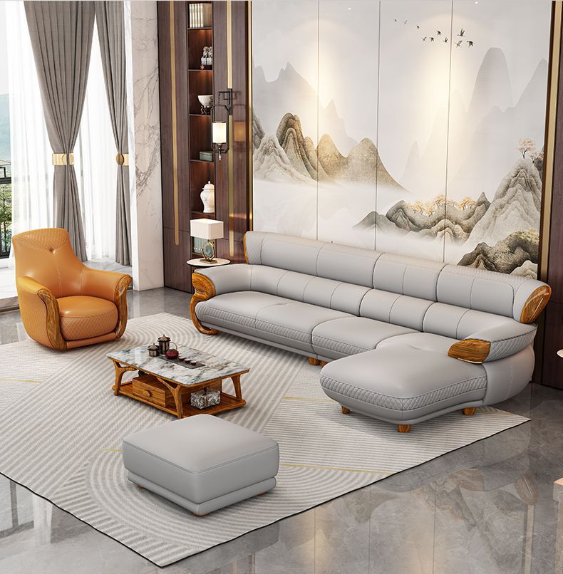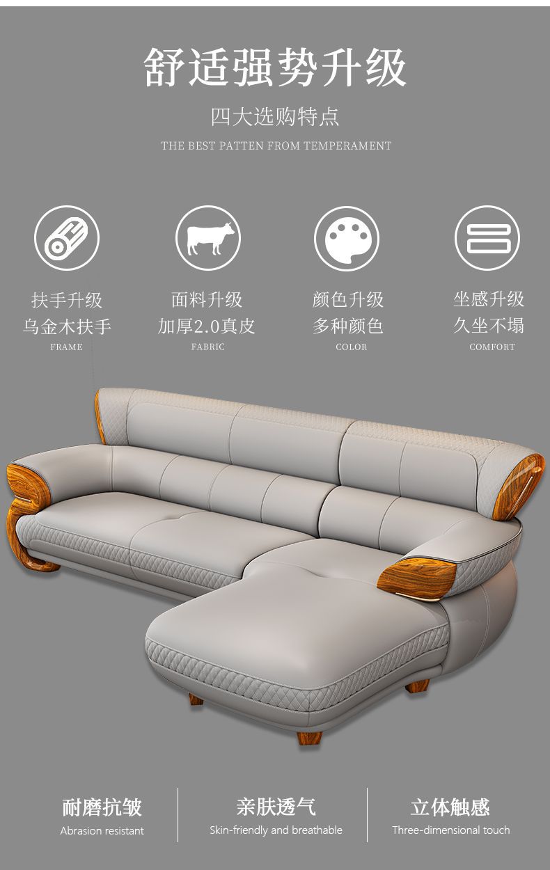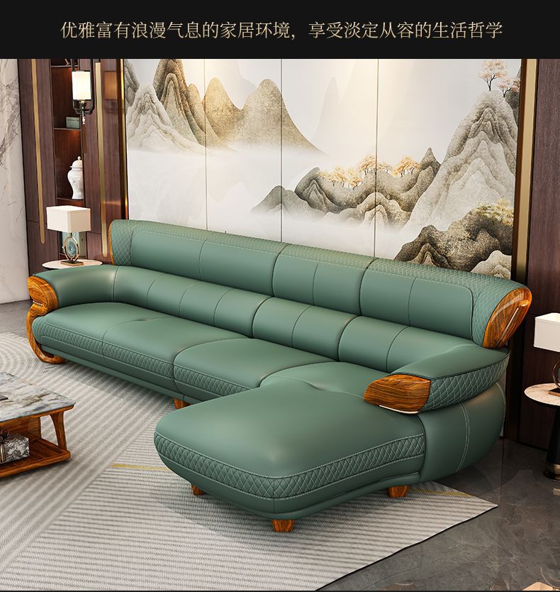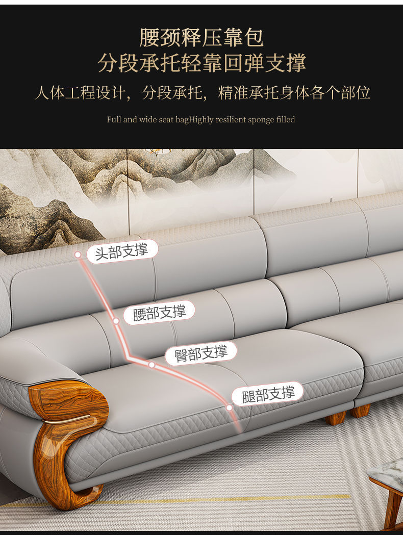 Sofa gỗ mun phong cách Trung Quốc mới hiện đại tối giản phòng khách căn hộ lớn thiết kế mới sofa da gỗ chắc chắn