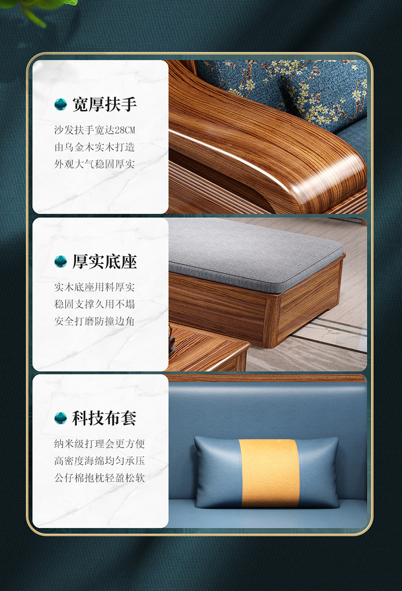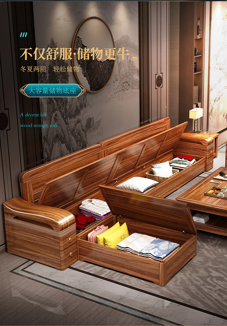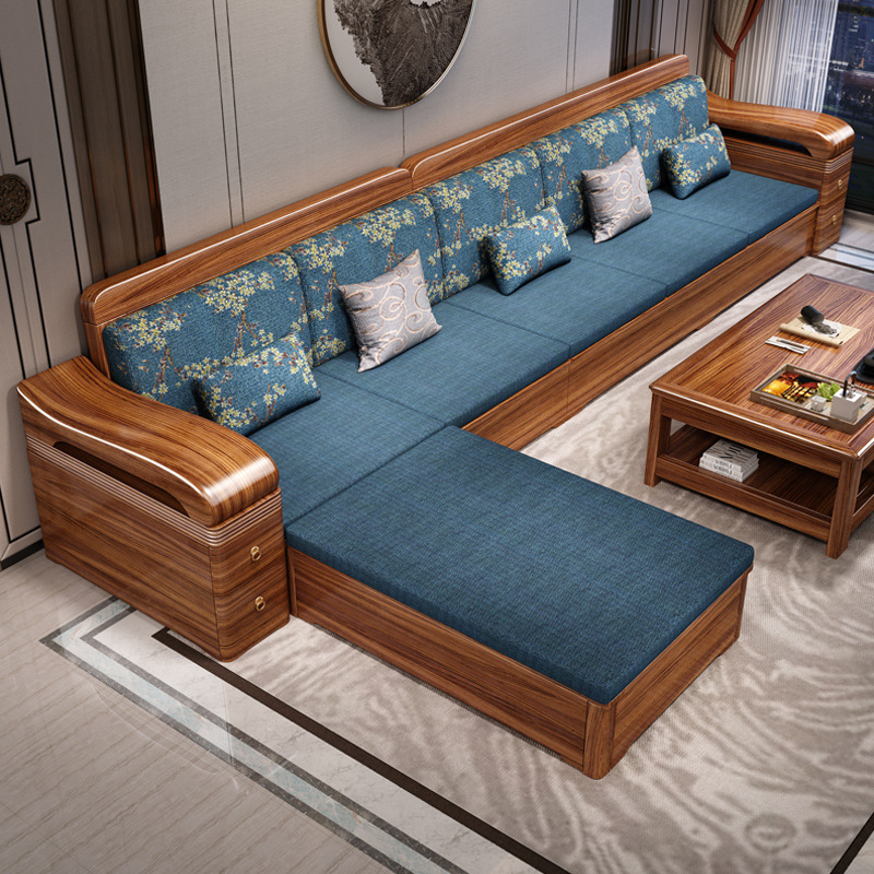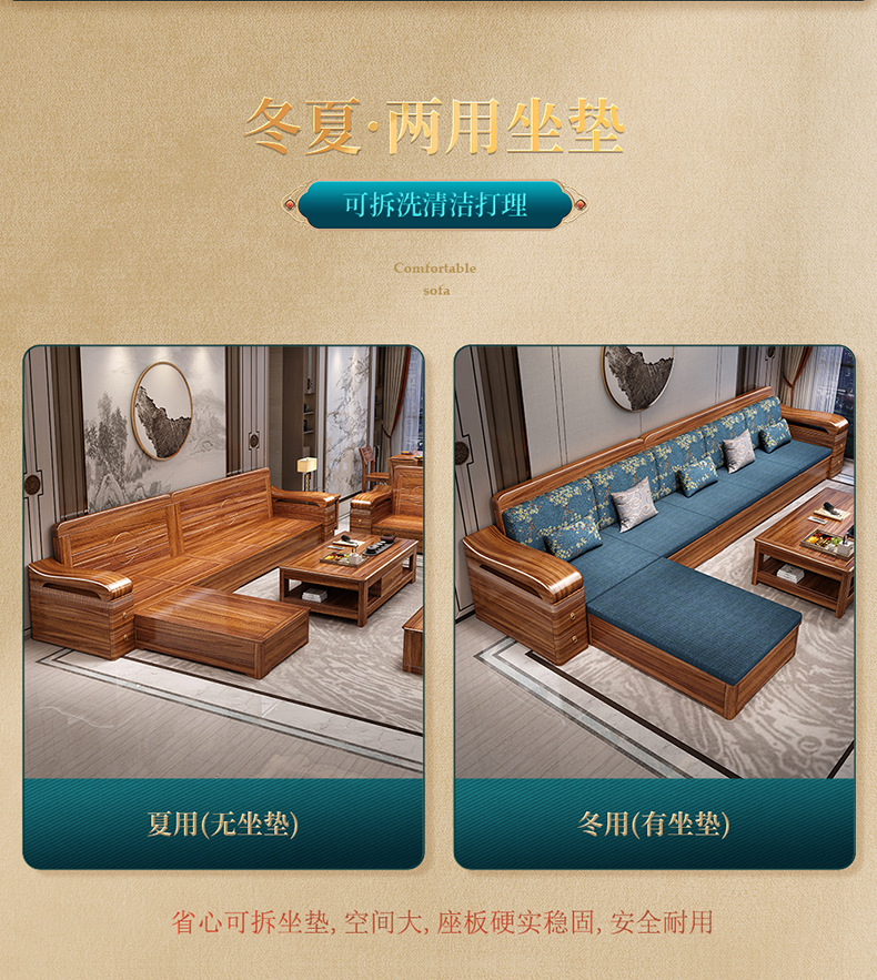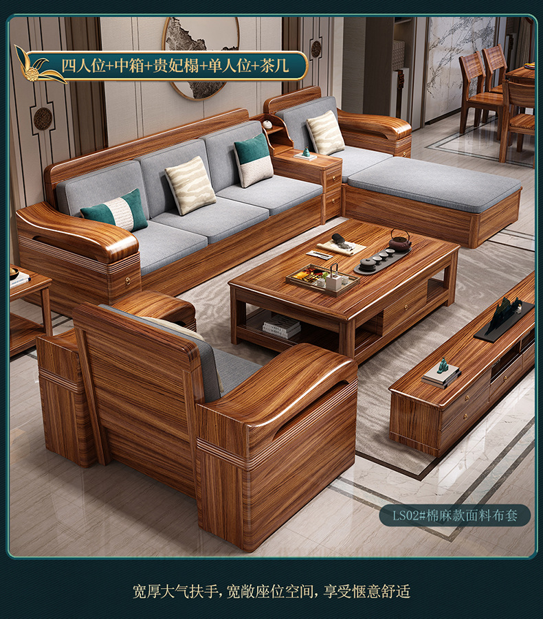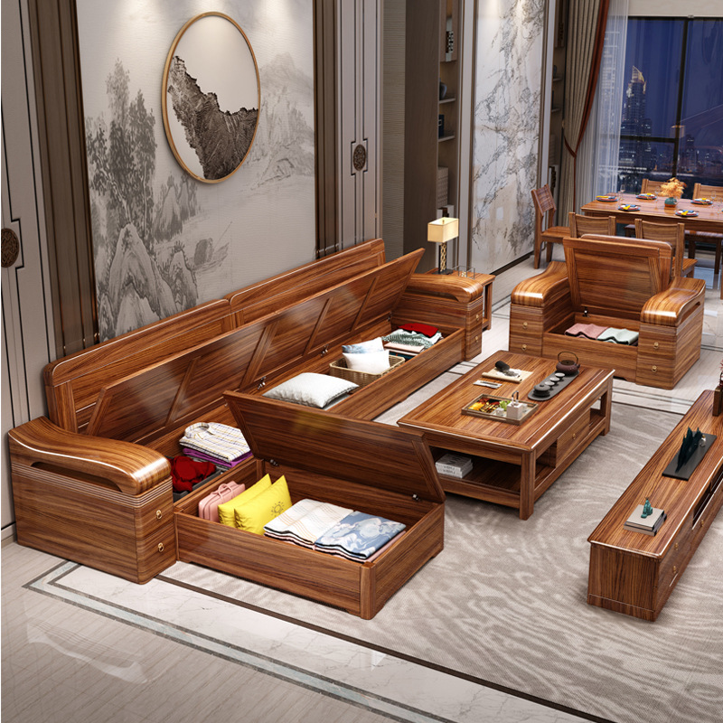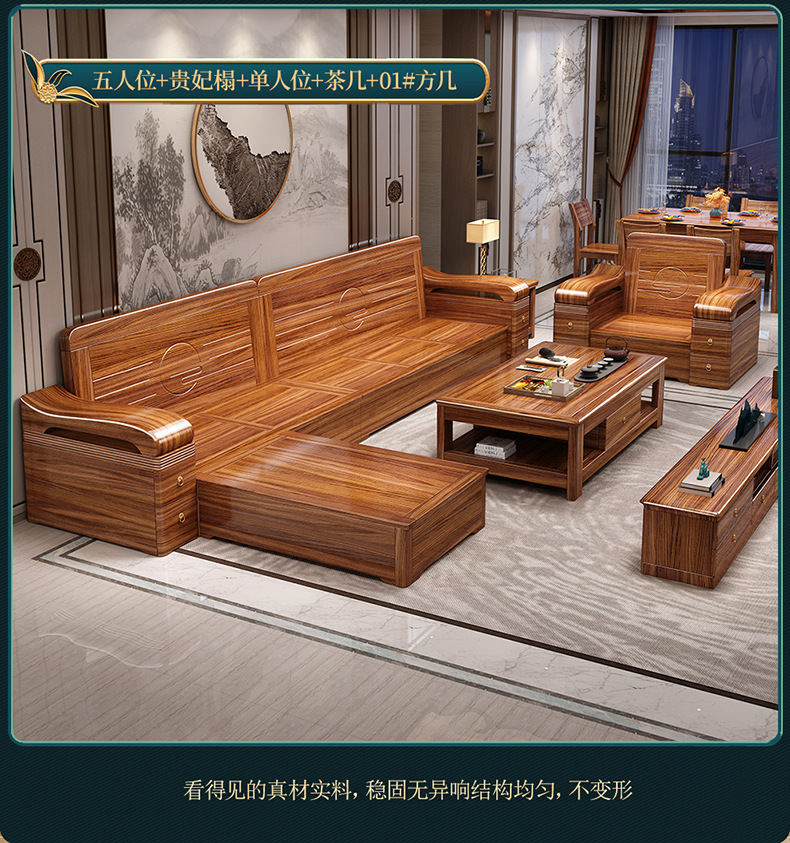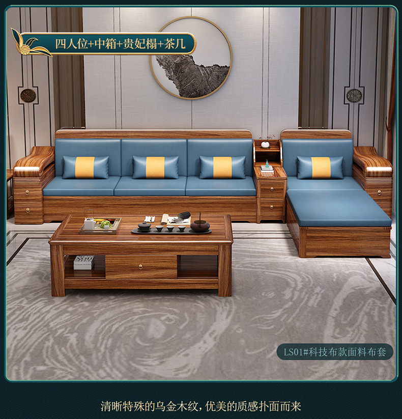 Sofa gỗ nguyên khối bằng gỗ vàng đen phòng khách phong cách Trung Quốc mới hiện đại tối giản mùa đông và mùa hè bộ đồ nội thất gỗ nguyên khối WM98