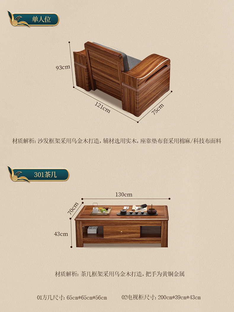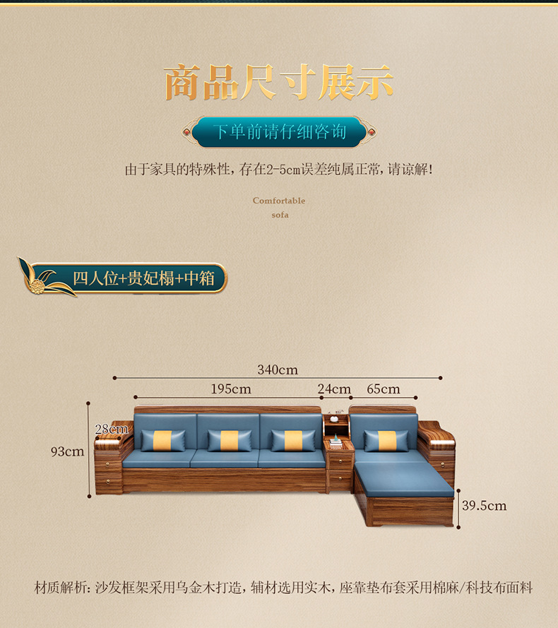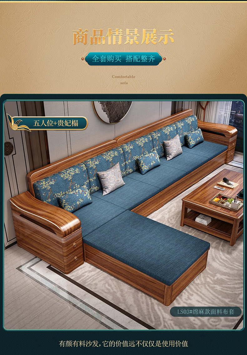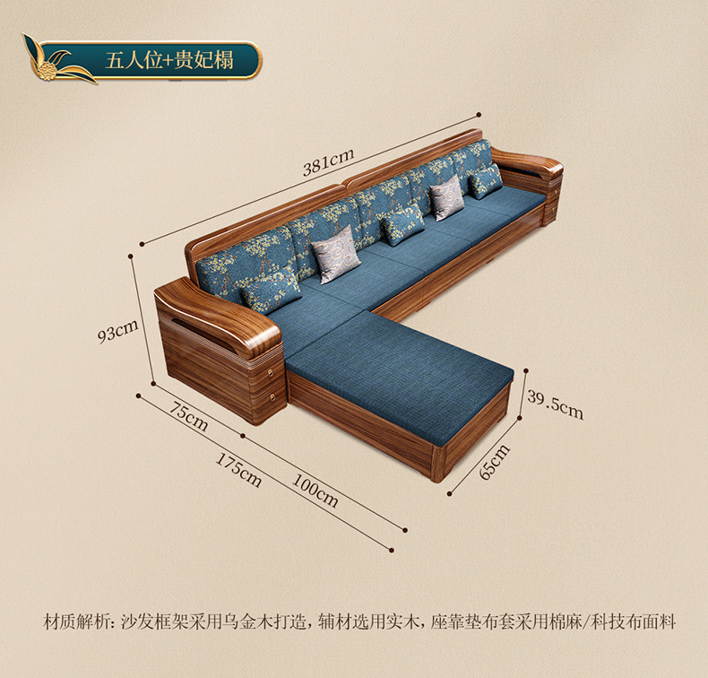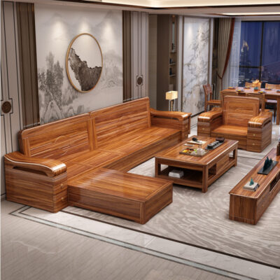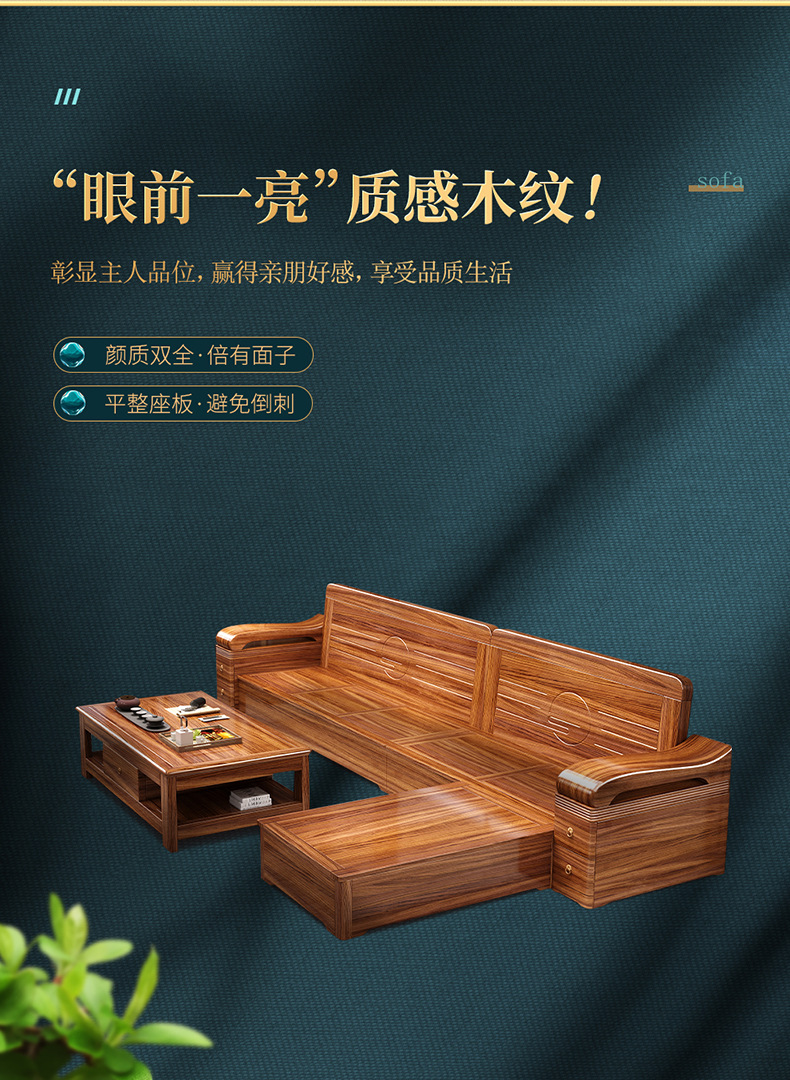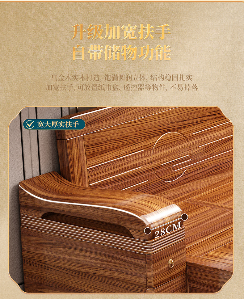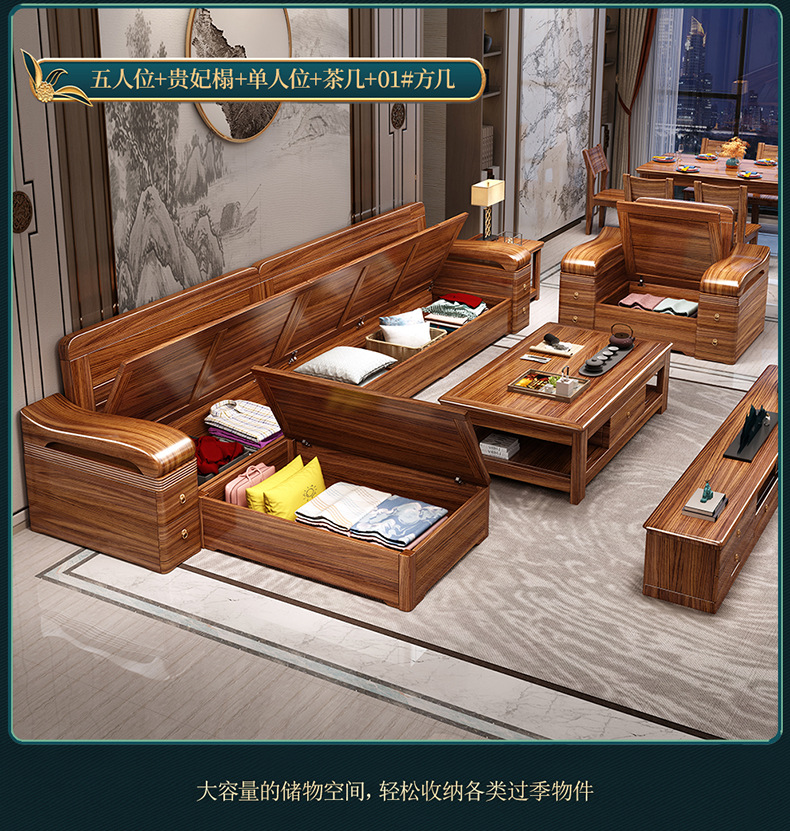 Sofa gỗ nguyên khối bằng gỗ vàng đen phòng khách phong cách Trung Quốc mới hiện đại tối giản mùa đông và mùa hè bộ đồ nội thất gỗ nguyên khối WM98