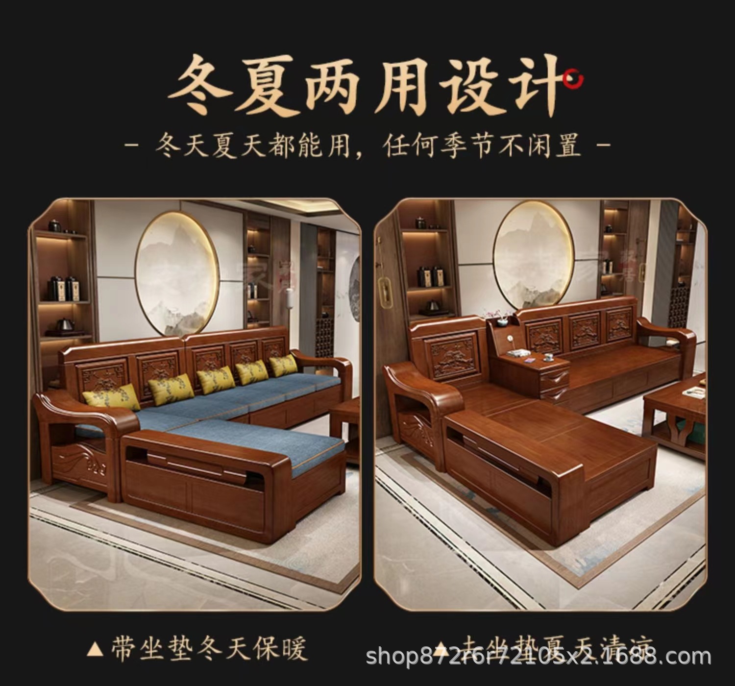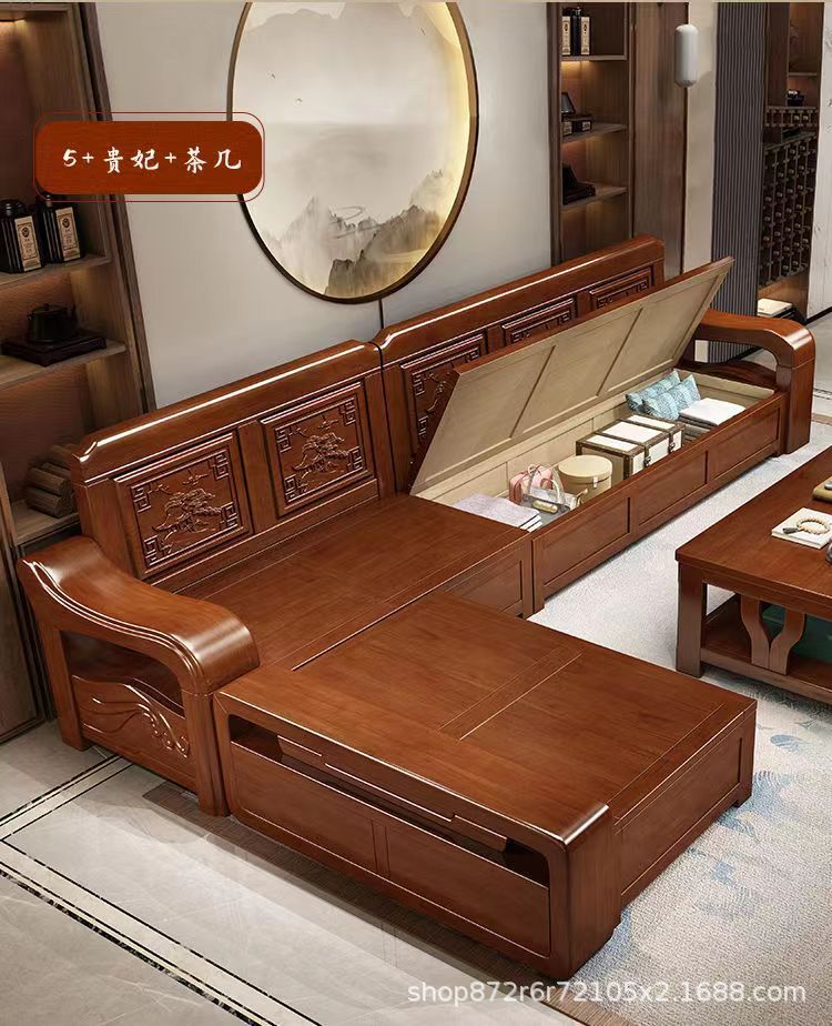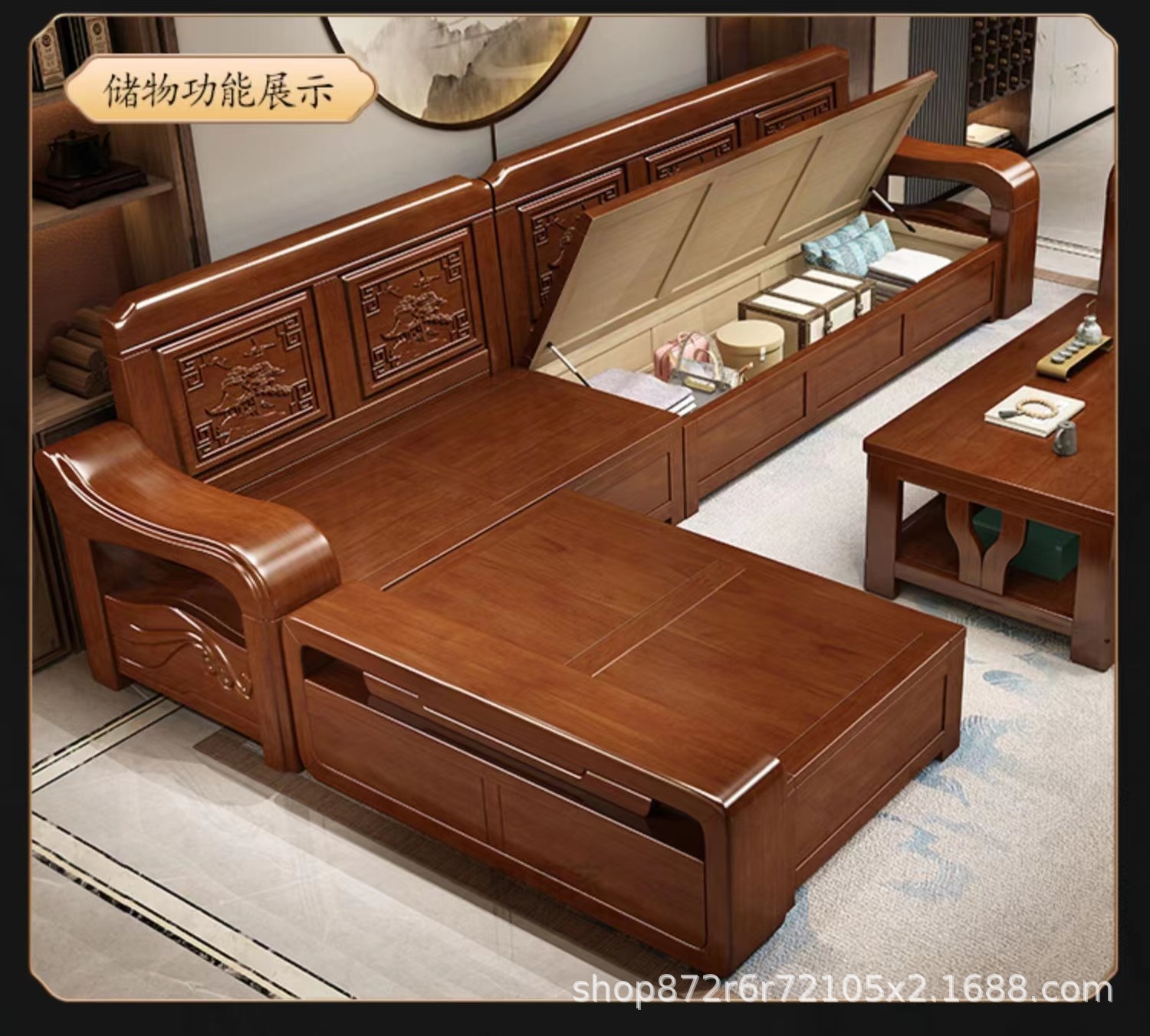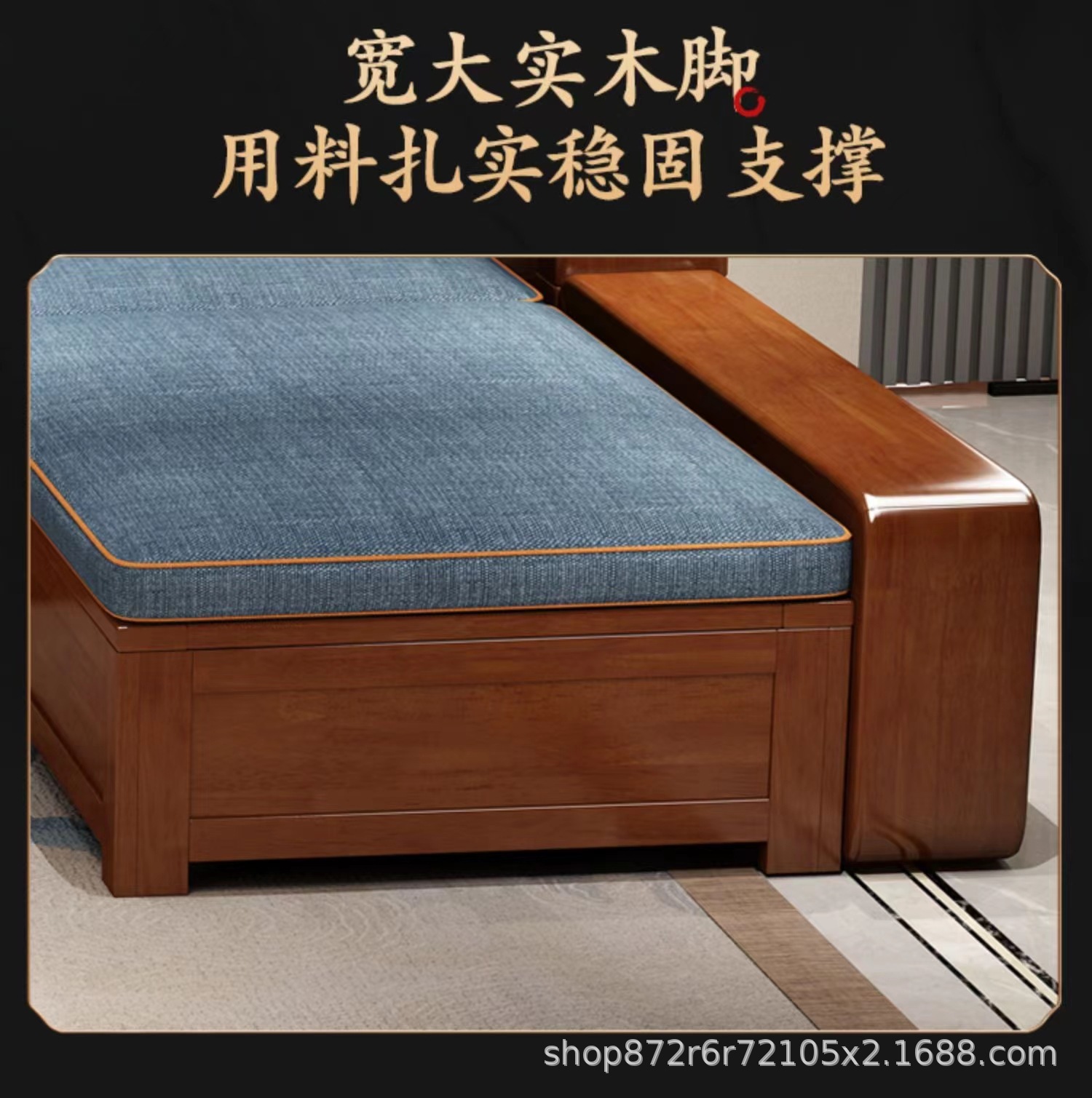 Sofa gỗ nguyên khối hiện đại của Trung Quốc mùa hè và mùa đông sử dụng kép cho căn hộ nhỏ lưu trữ sofa kết hợp phòng khách tất cả đồ nội thất bằng gỗ nguyên khối