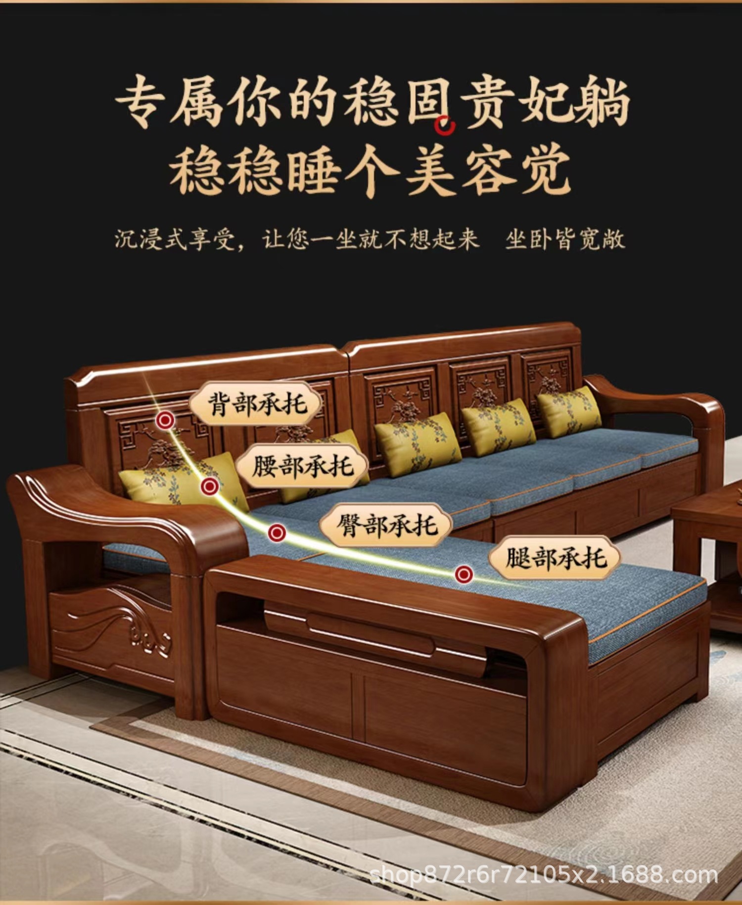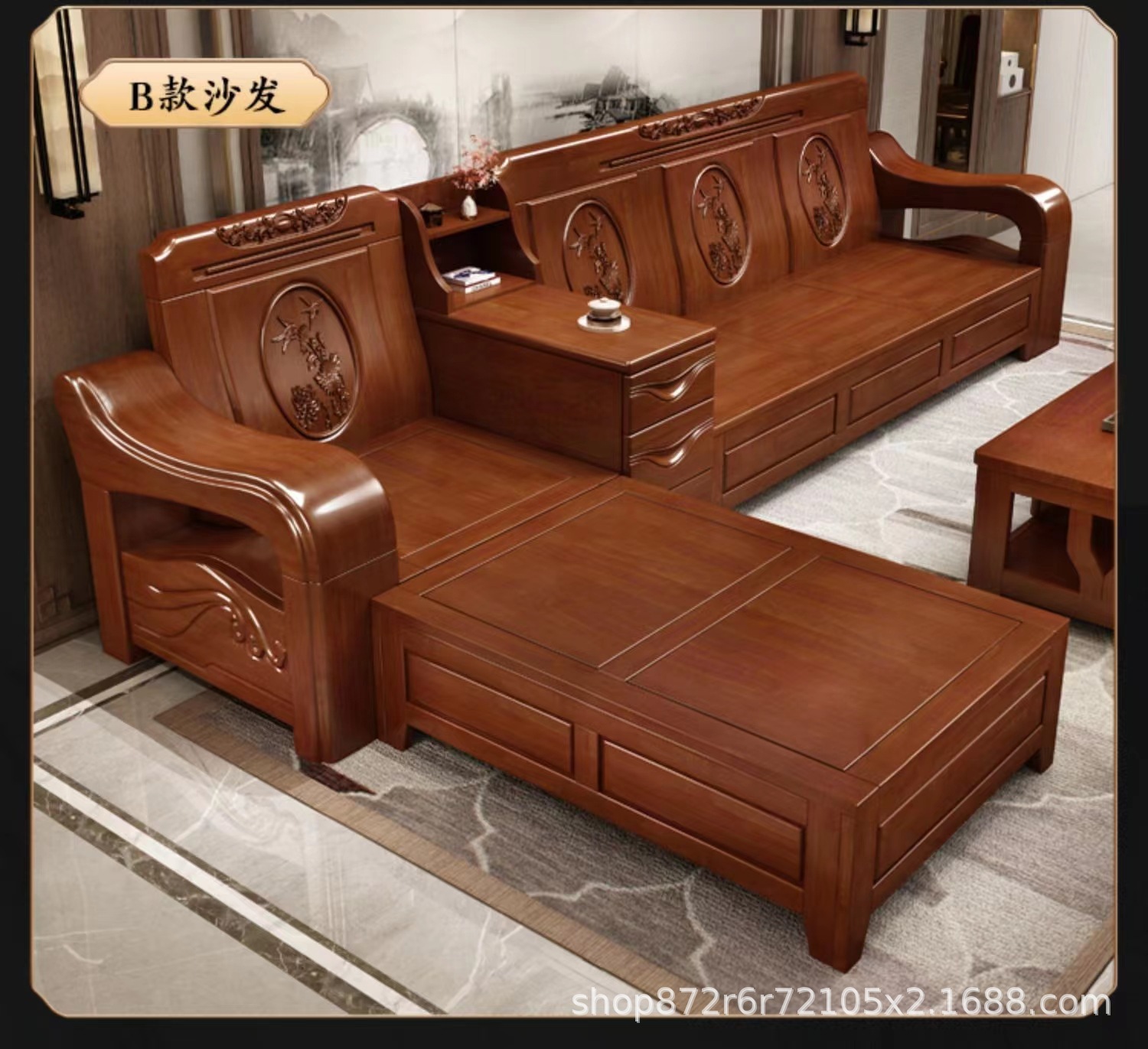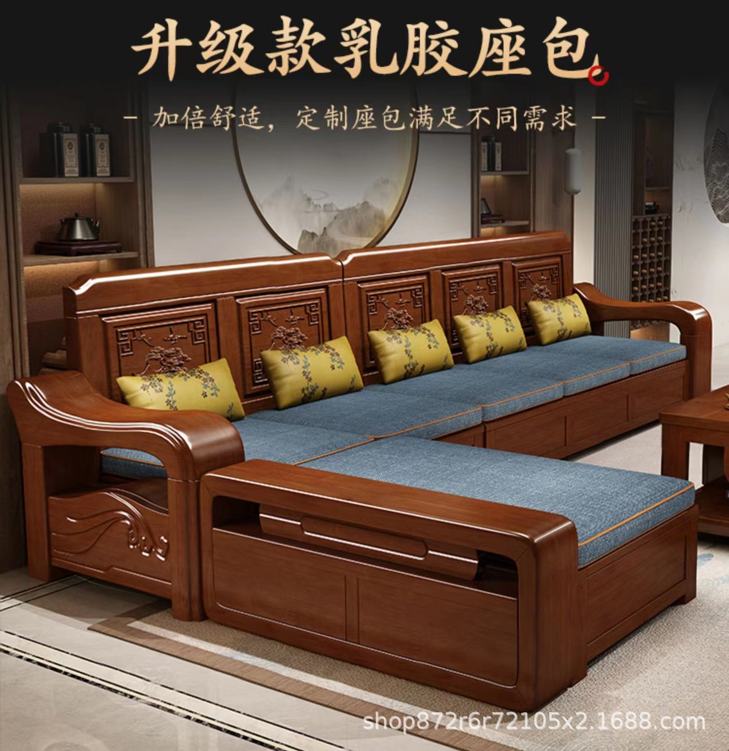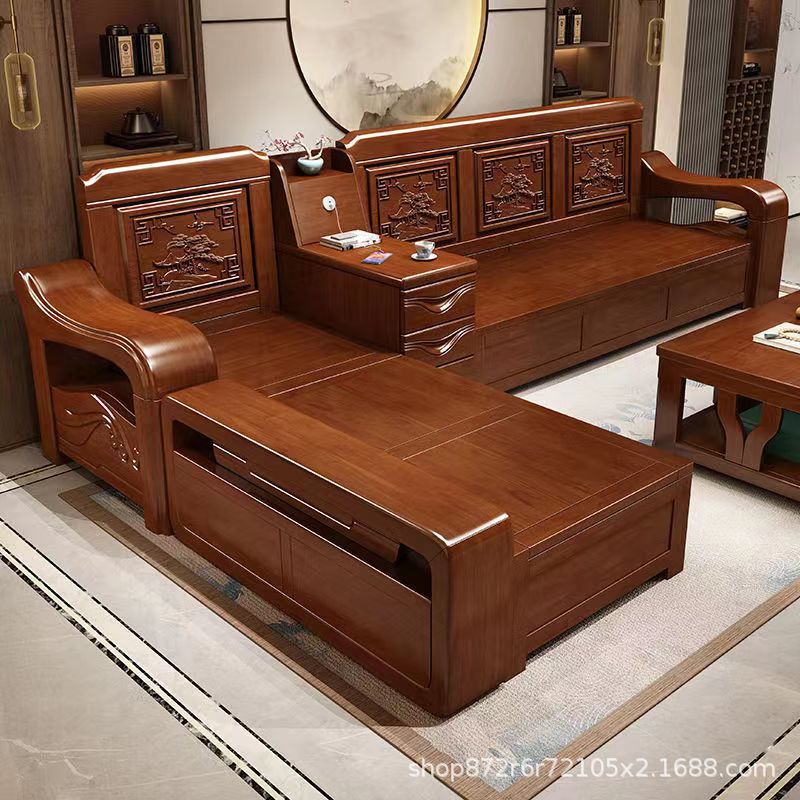 Sofa gỗ nguyên khối hiện đại của Trung Quốc mùa hè và mùa đông sử dụng kép cho căn hộ nhỏ lưu trữ sofa kết hợp phòng khách tất cả đồ nội thất bằng gỗ nguyên khối