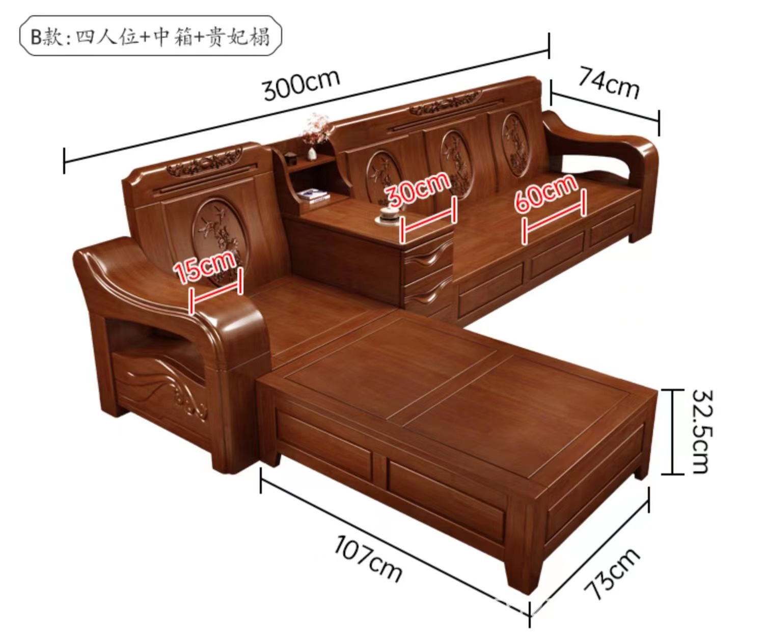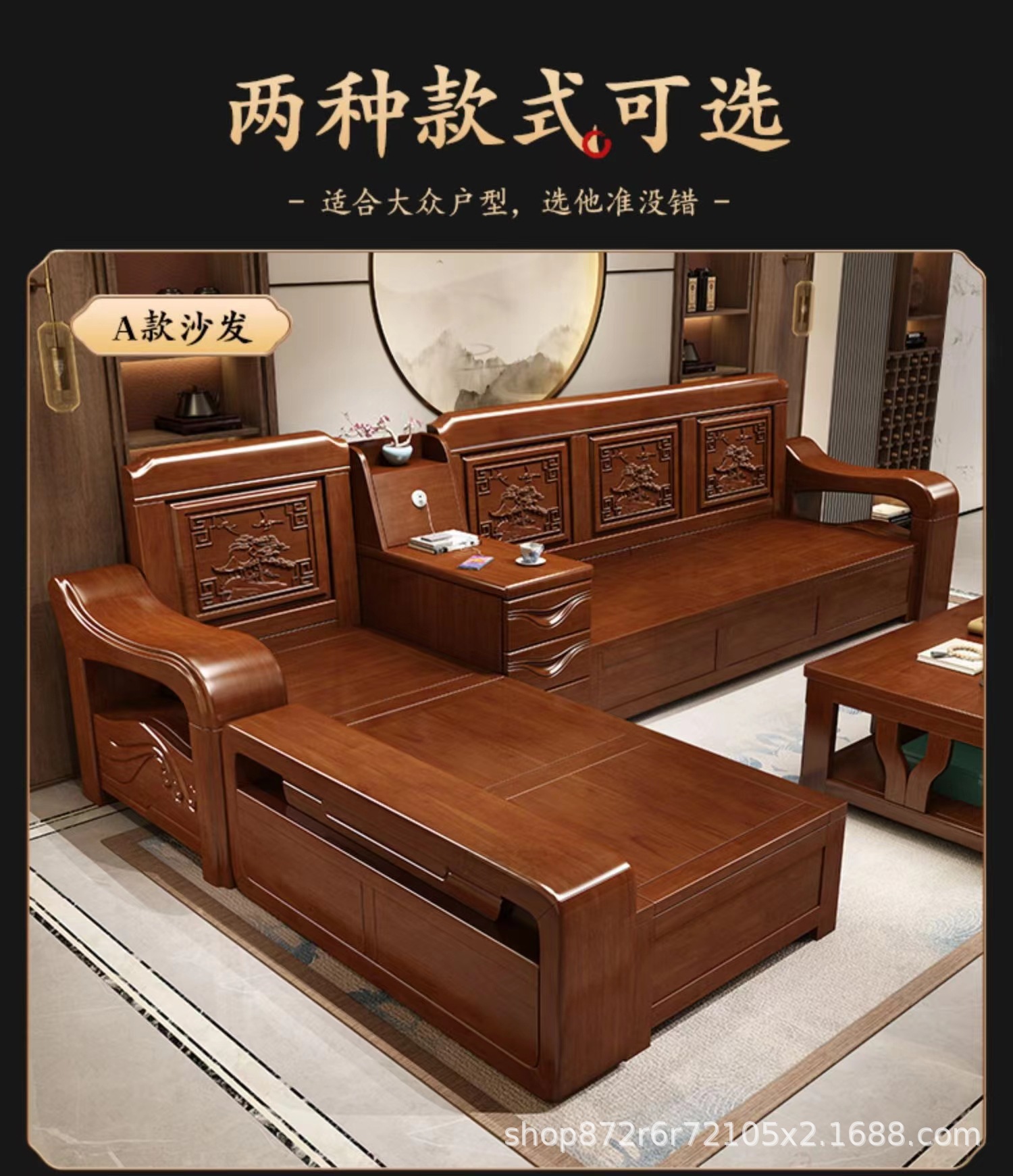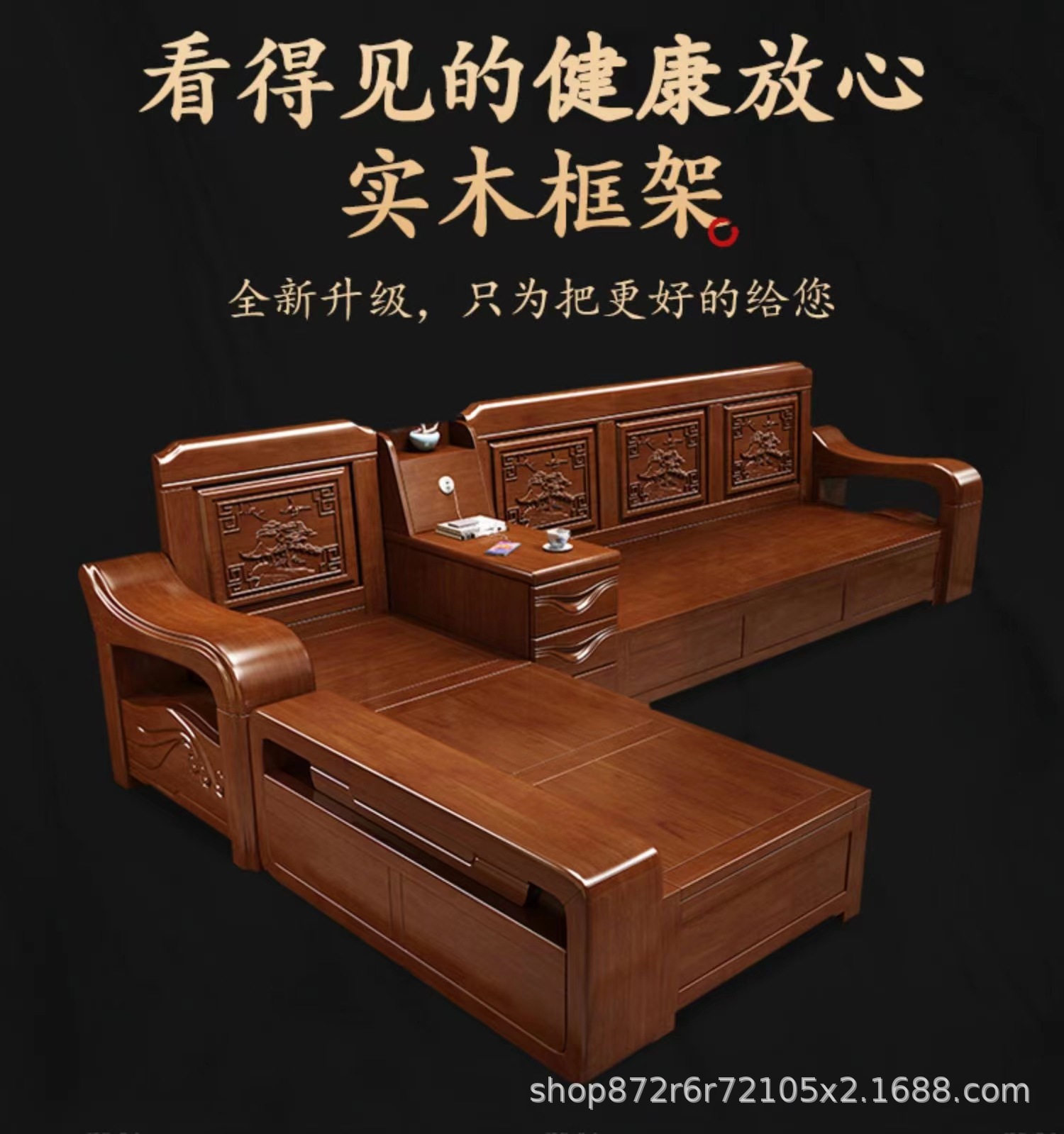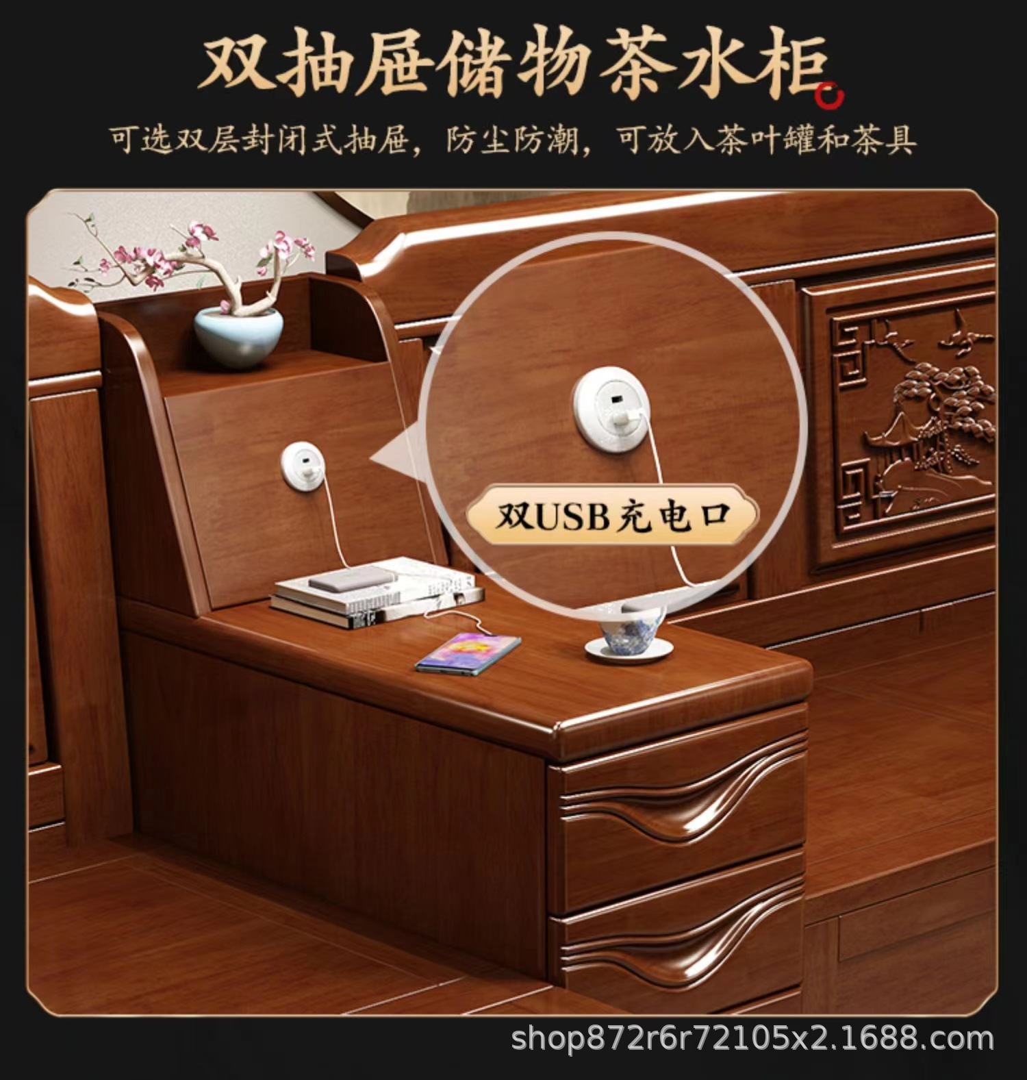 Sofa gỗ nguyên khối hiện đại của Trung Quốc mùa hè và mùa đông sử dụng kép cho căn hộ nhỏ lưu trữ sofa kết hợp phòng khách tất cả đồ nội thất bằng gỗ nguyên khối