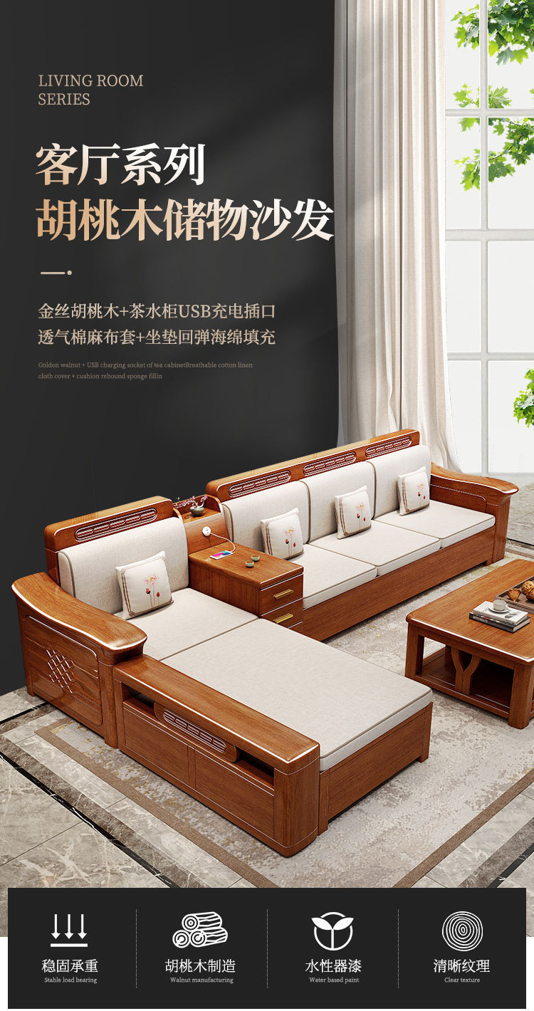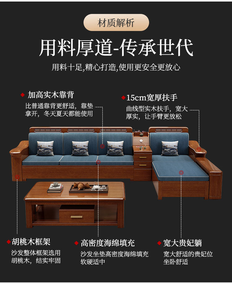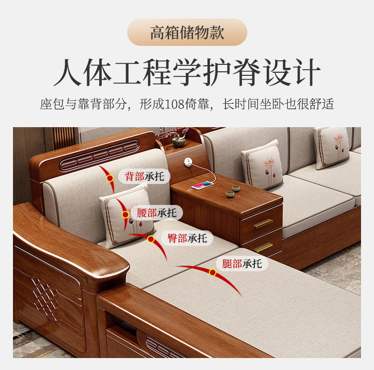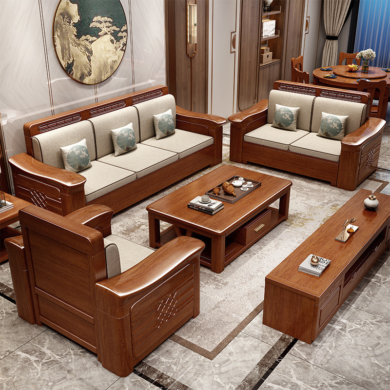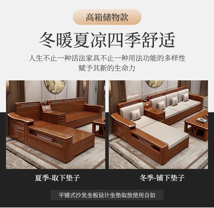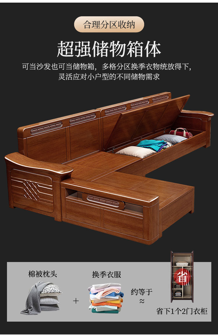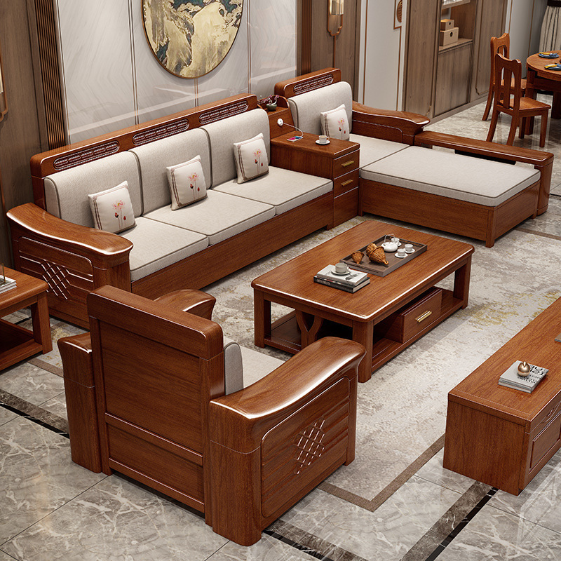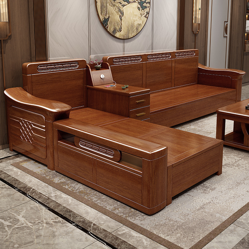 Sofa gỗ nguyên khối kiểu Trung Quốc kết hợp phòng khách căn hộ nhỏ mùa đông và mùa hè góc lưu trữ kép sofa gỗ nguyên khối bán hàng trực tiếp