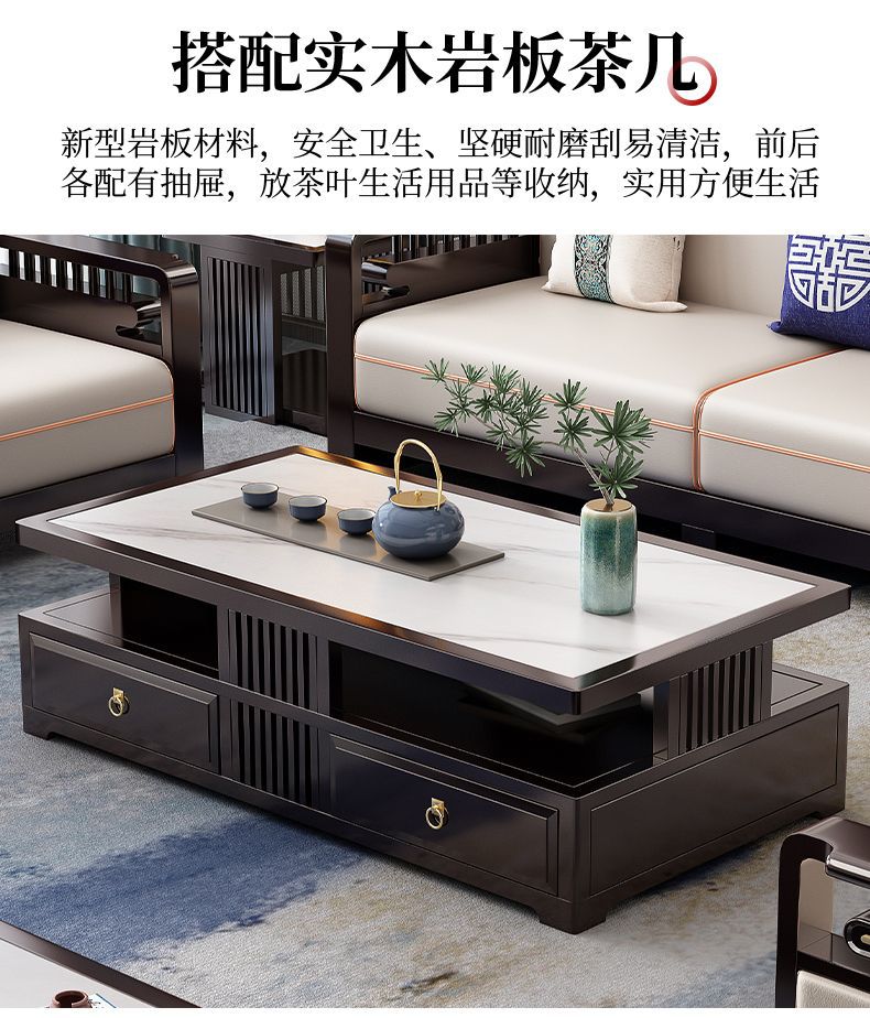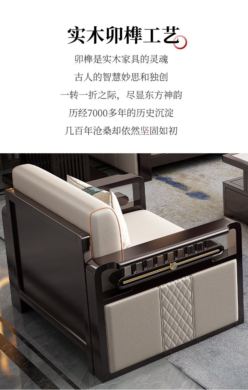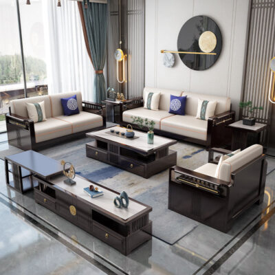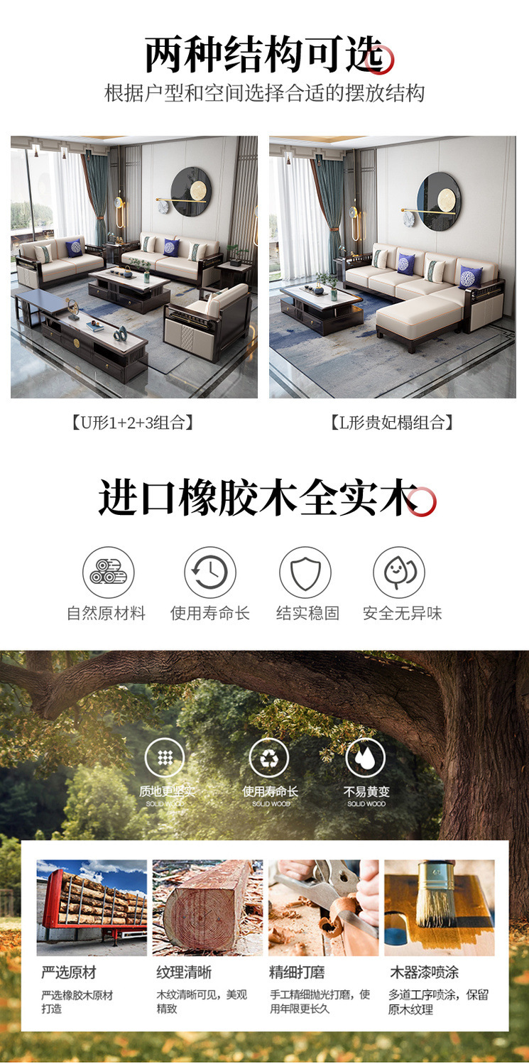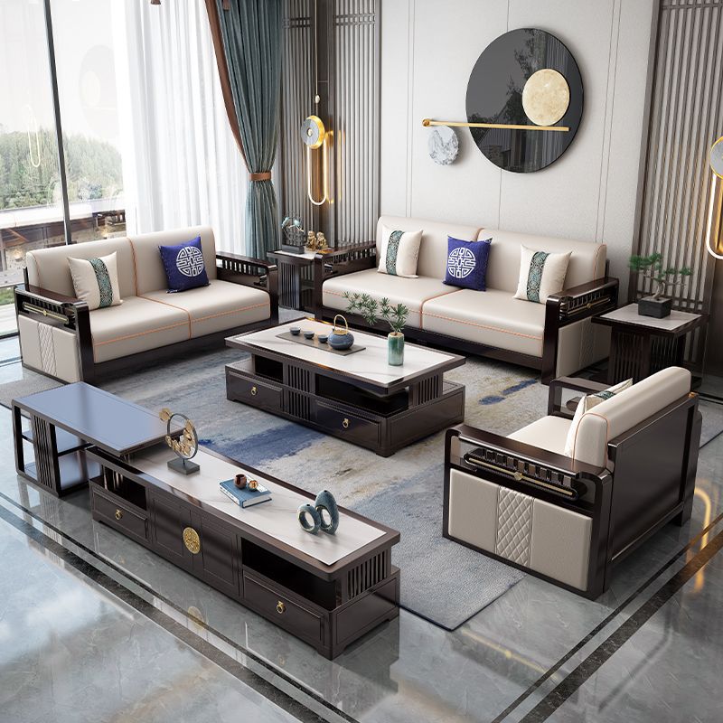 Sofa gỗ nguyên khối kiểu Trung Quốc mới kết hợp phòng khách tối giản hiện đại kích thước biệt thự căn hộ ánh sáng sang trọng phong cách Trung Quốc tất cả đồ nội thất bằng gỗ nguyên khối