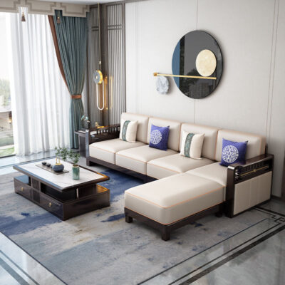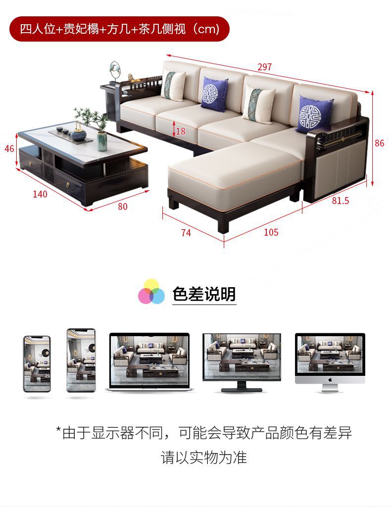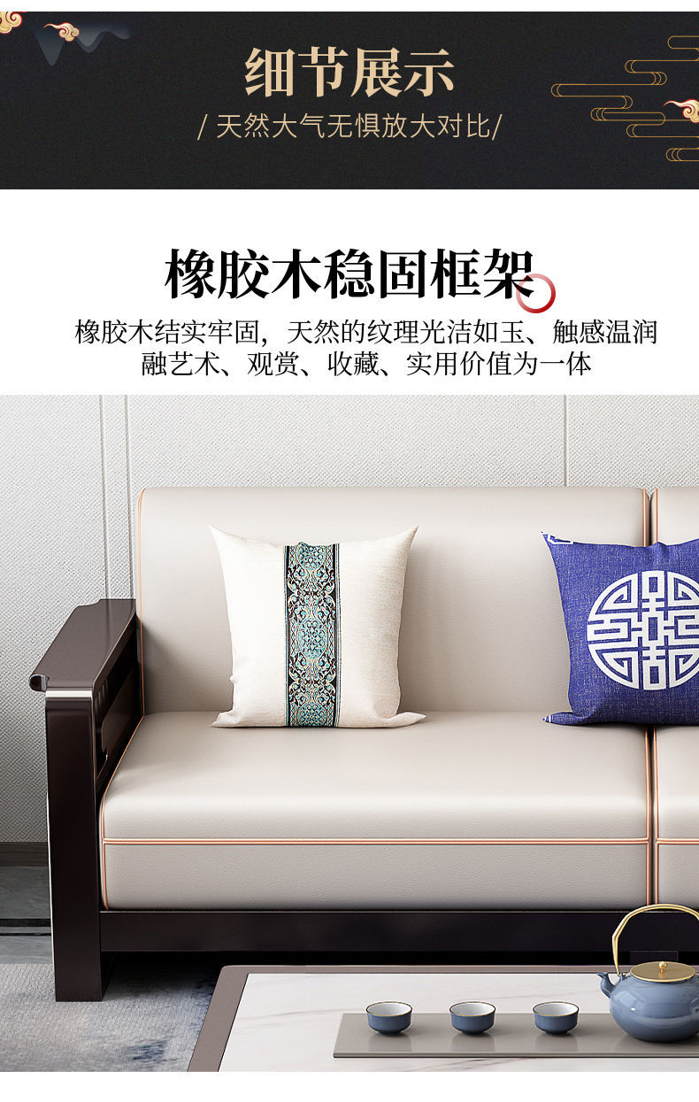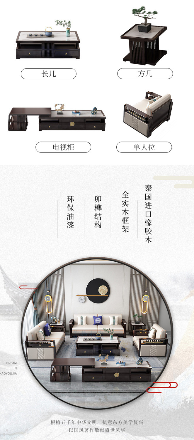 Sofa gỗ nguyên khối kiểu Trung Quốc mới kết hợp phòng khách tối giản hiện đại kích thước biệt thự căn hộ ánh sáng sang trọng phong cách Trung Quốc tất cả đồ nội thất bằng gỗ nguyên khối