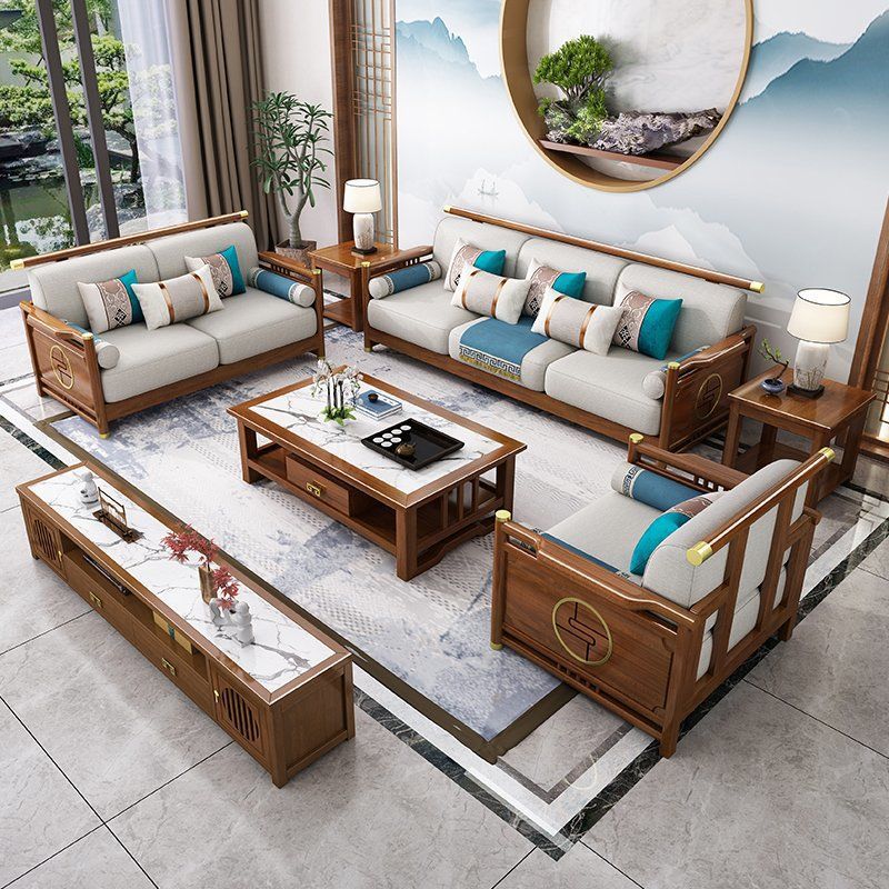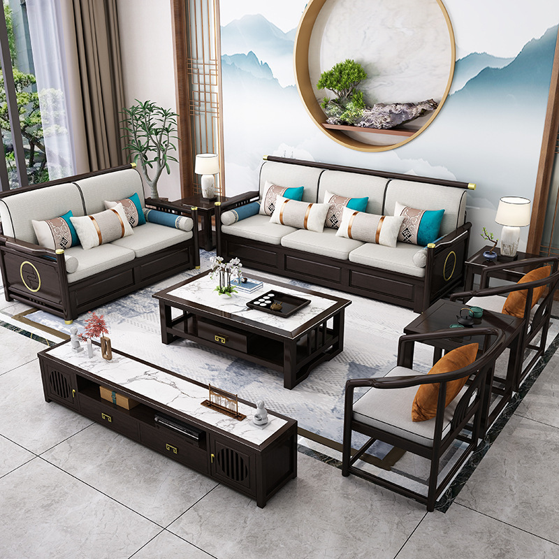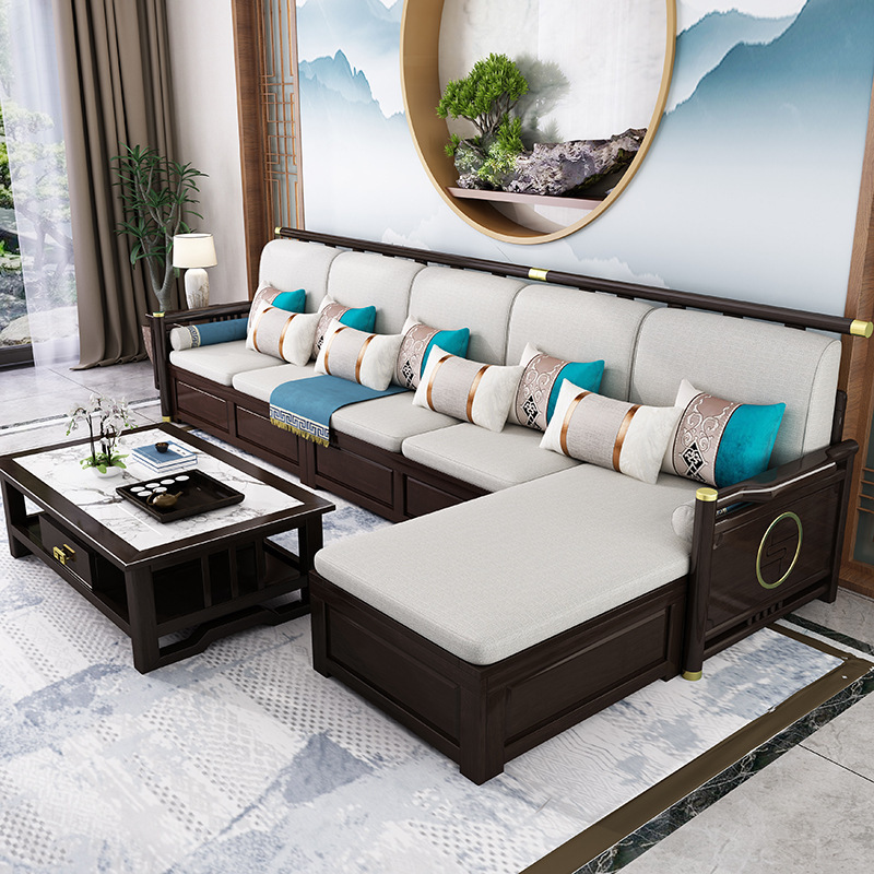 Sofa gỗ nguyên khối phong cách Trung Quốc mới kết hợp hiện đại tối giản phòng khách căn hộ lớn và nhỏ Zen vải Đẹp nội thất biệt thự sang trọng