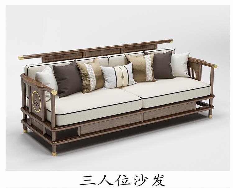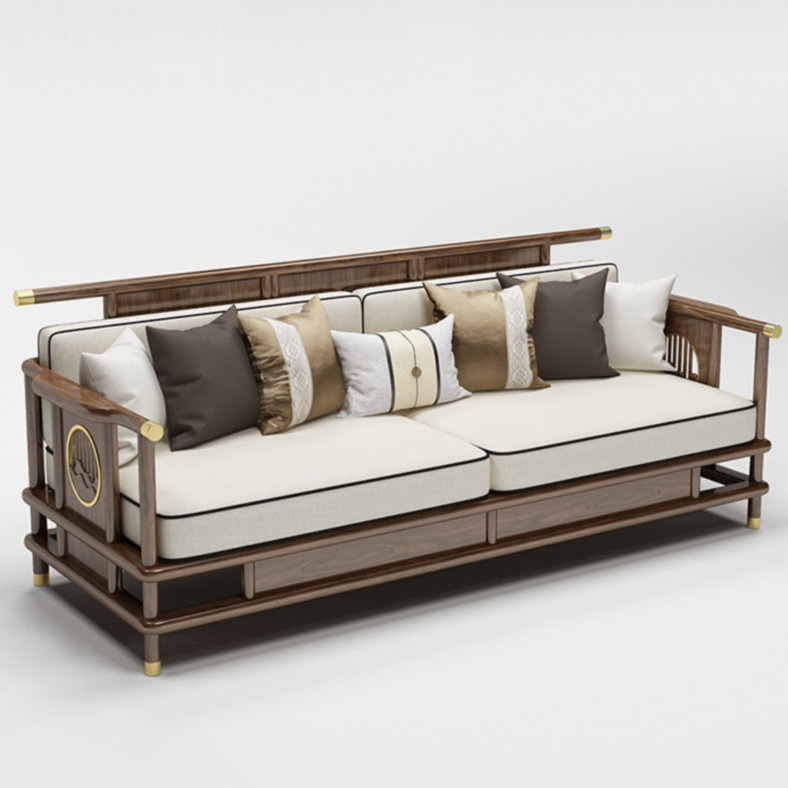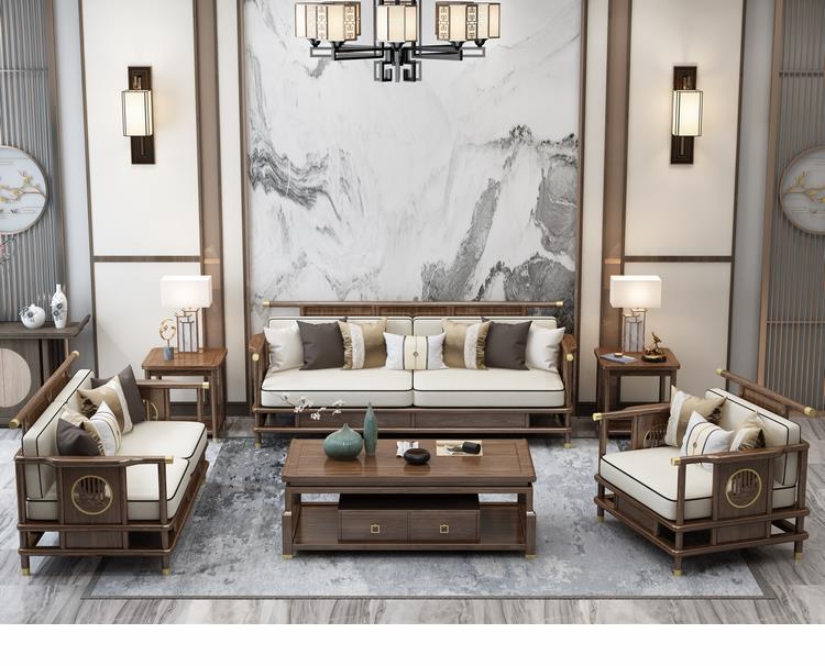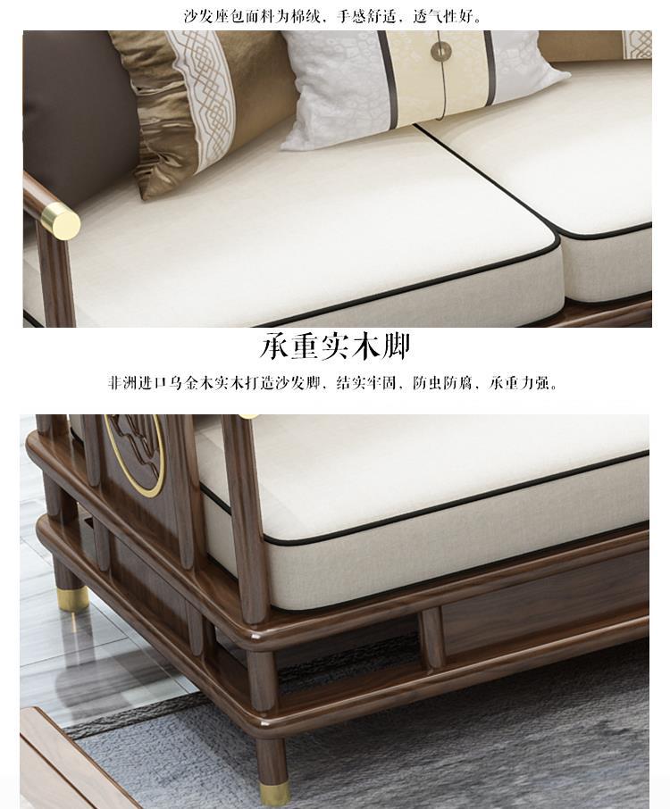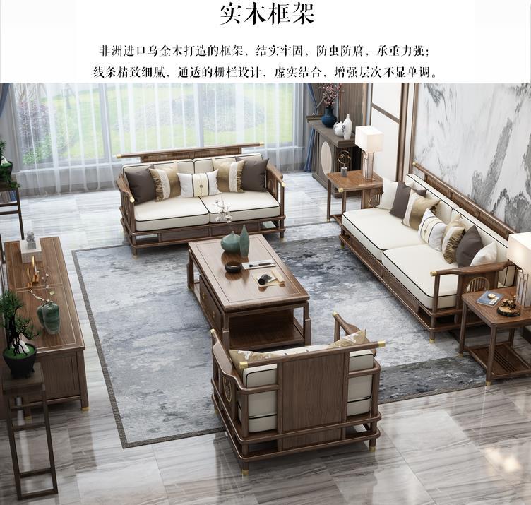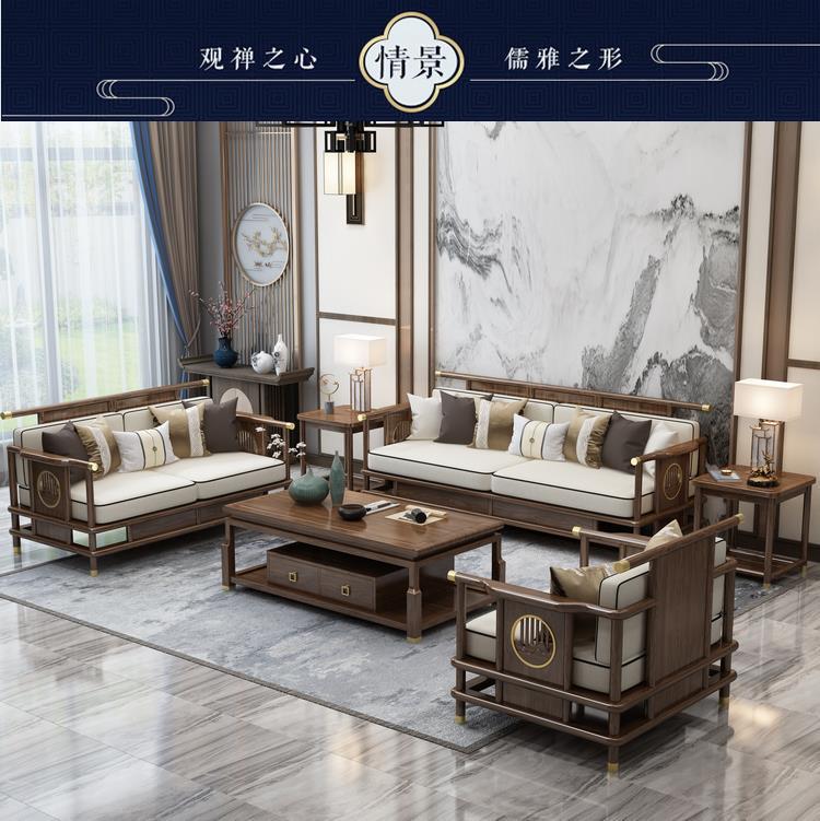 Sofa gỗ nguyên khối phong cách Trung Quốc mới phòng khách sofa gỗ vàng đen kết hợp sofa vải hiện đại tối giản hiện đại Đồ nội thất biệt thự Zen