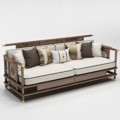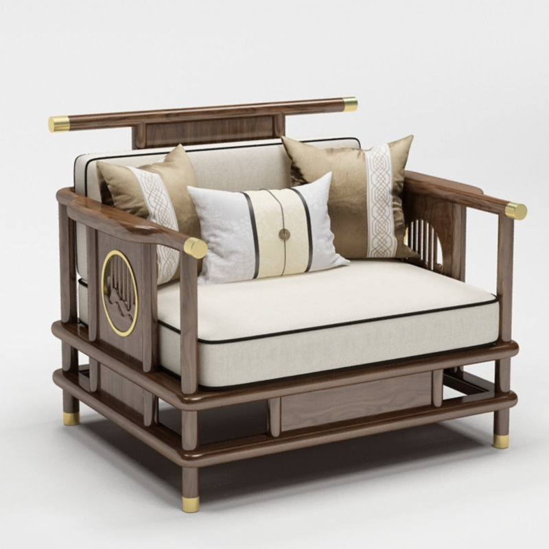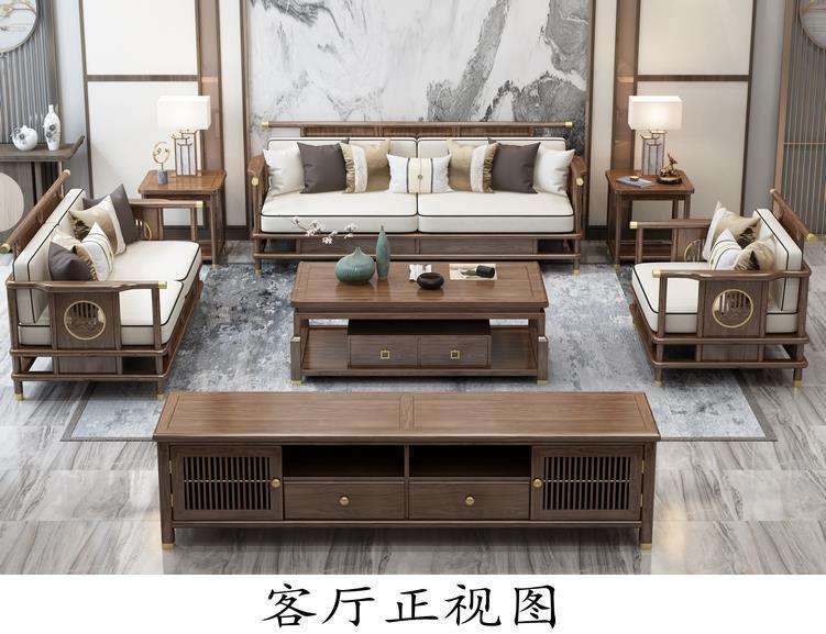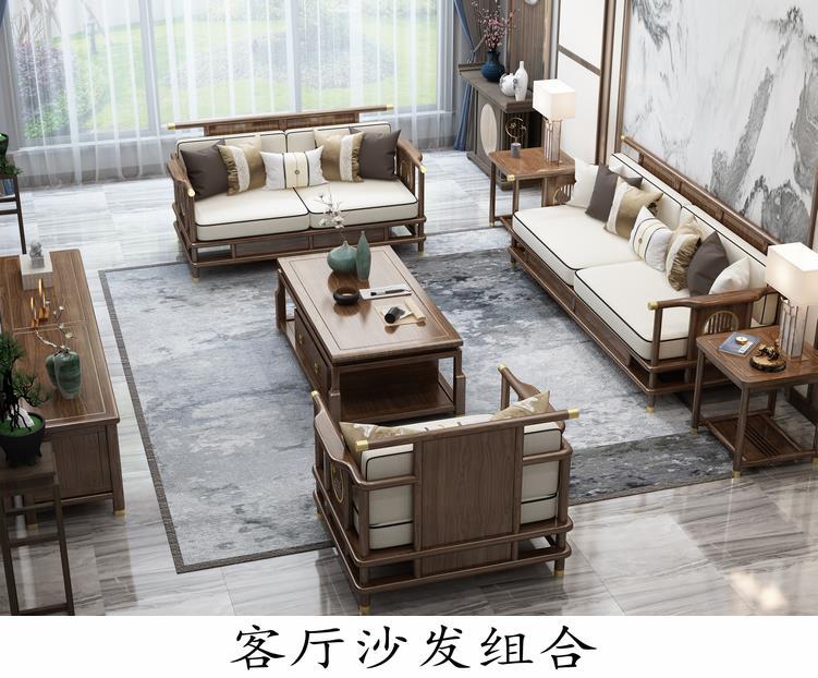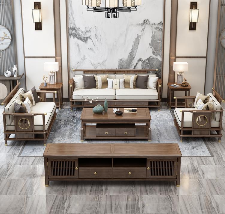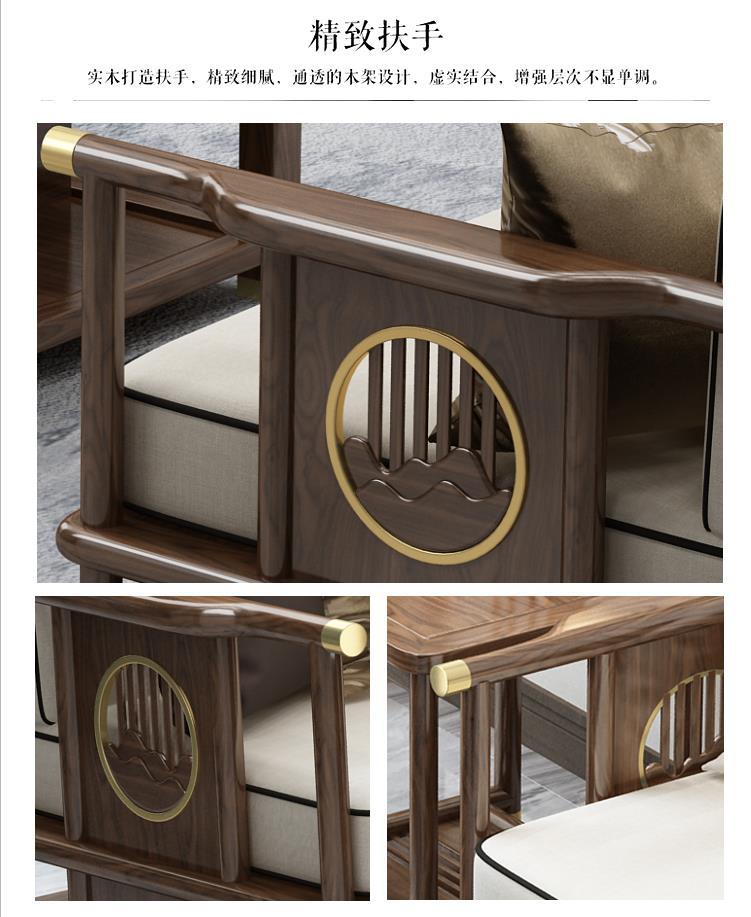 Sofa gỗ nguyên khối phong cách Trung Quốc mới phòng khách sofa gỗ vàng đen kết hợp sofa vải hiện đại tối giản hiện đại Đồ nội thất biệt thự Zen