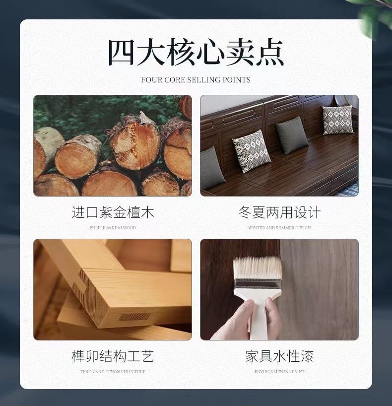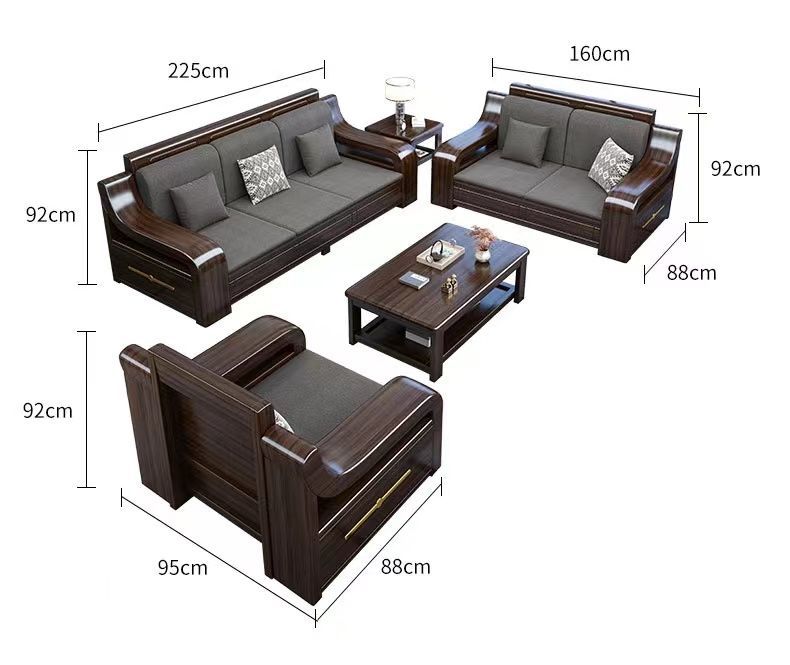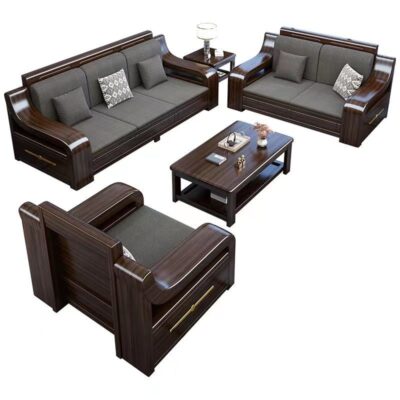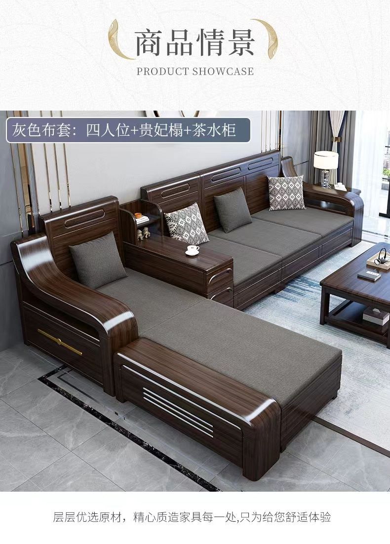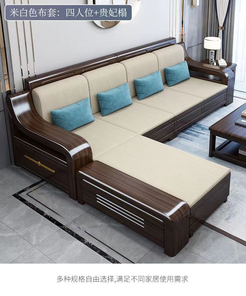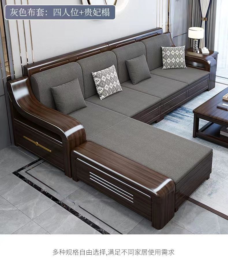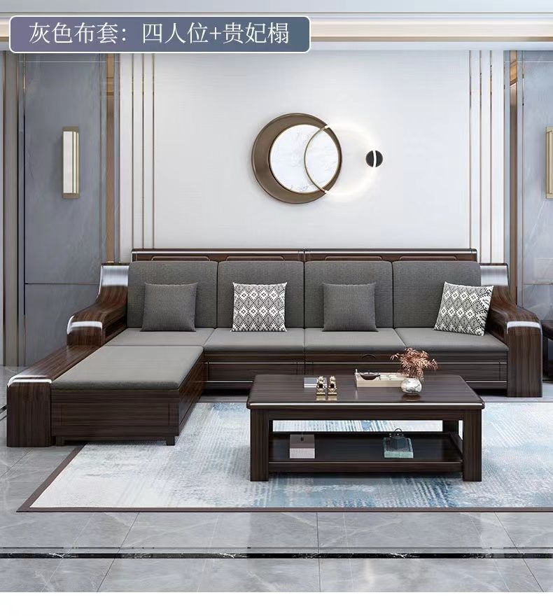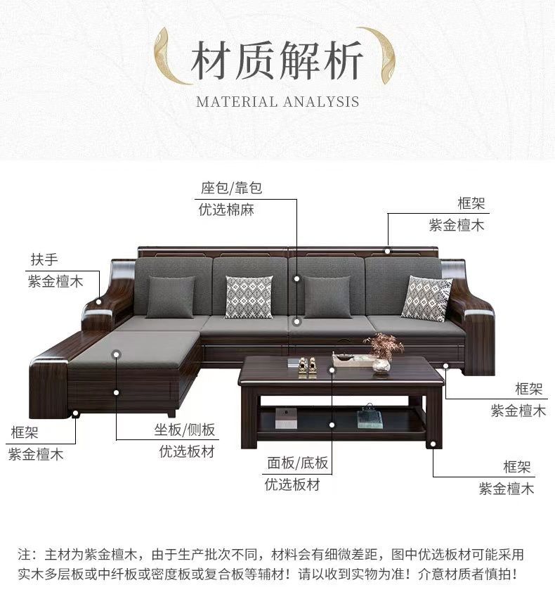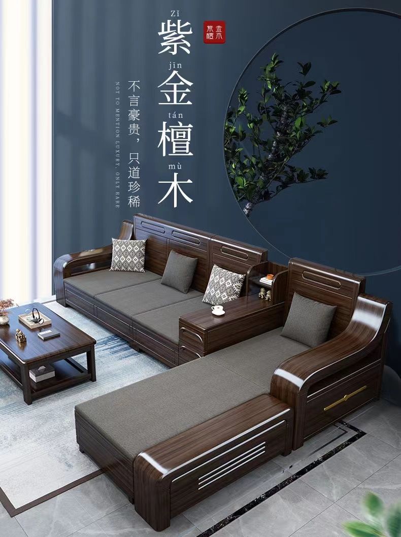 Sofa gỗ nguyên khối tất cả phòng khách bằng gỗ nguyên khối kết hợp căn hộ lớn và nhỏ màu tím vàng gỗ đàn hương lưu trữ sofa vải đồ nội thất Trung Quốc mới