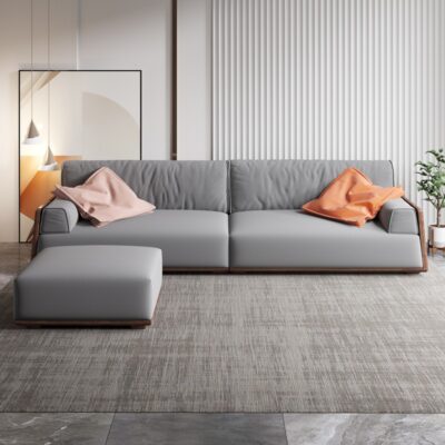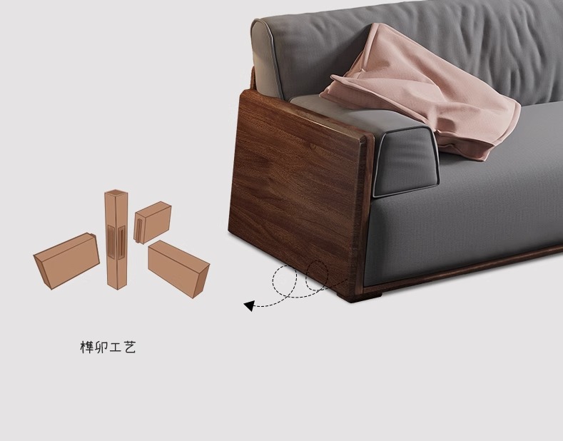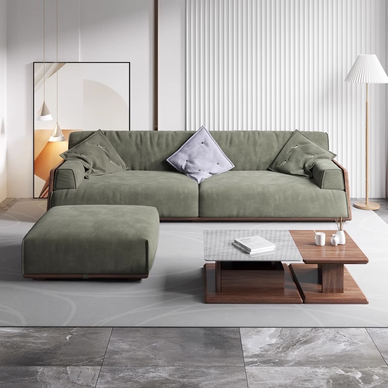 Sofa gỗ óc chó đệm dày êm ái phong cách Nhật Bản wabi-sabi nội thất phòng khách cao cấp B&B căn hộ nhỏ Bắc Âu