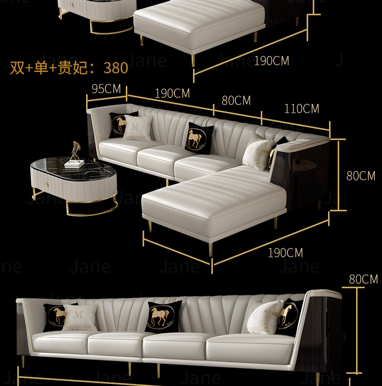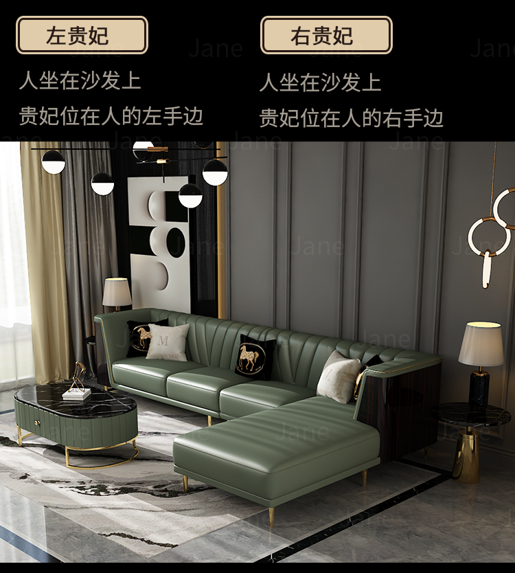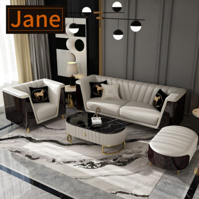 Sofa góc sang trọng nhẹ nhàng da thật Vương phi đơn giản hậu hiện đại căn hộ nhỏ da nghệ thuật Sofa gỗ đàn hương đen bốn chỗ thẳng hàng