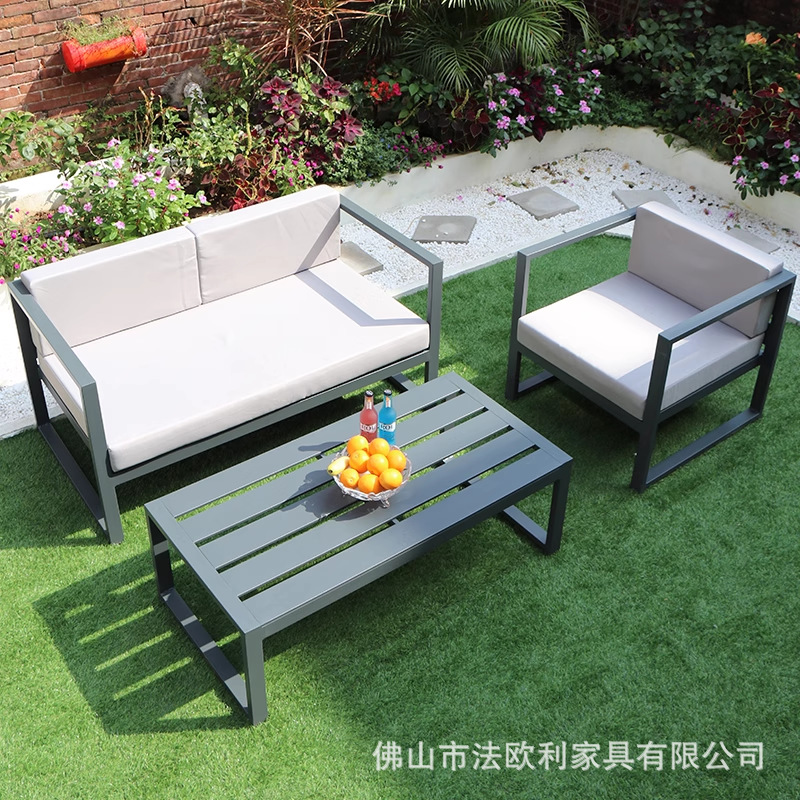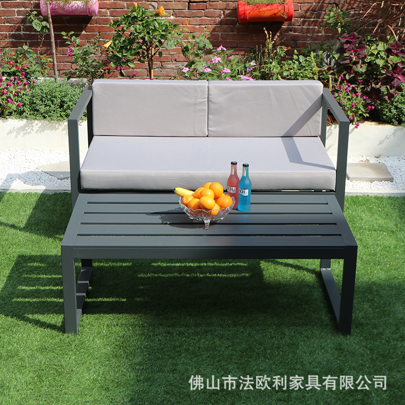 Sofa hợp kim nhôm ngoài trời biệt thự sân vườn ban công ngoài trời phòng nắng đôi sofa chống nước kết hợp bàn cà phê