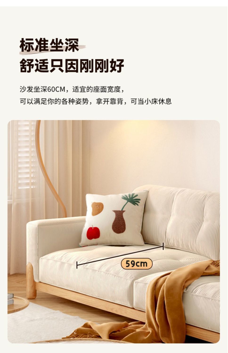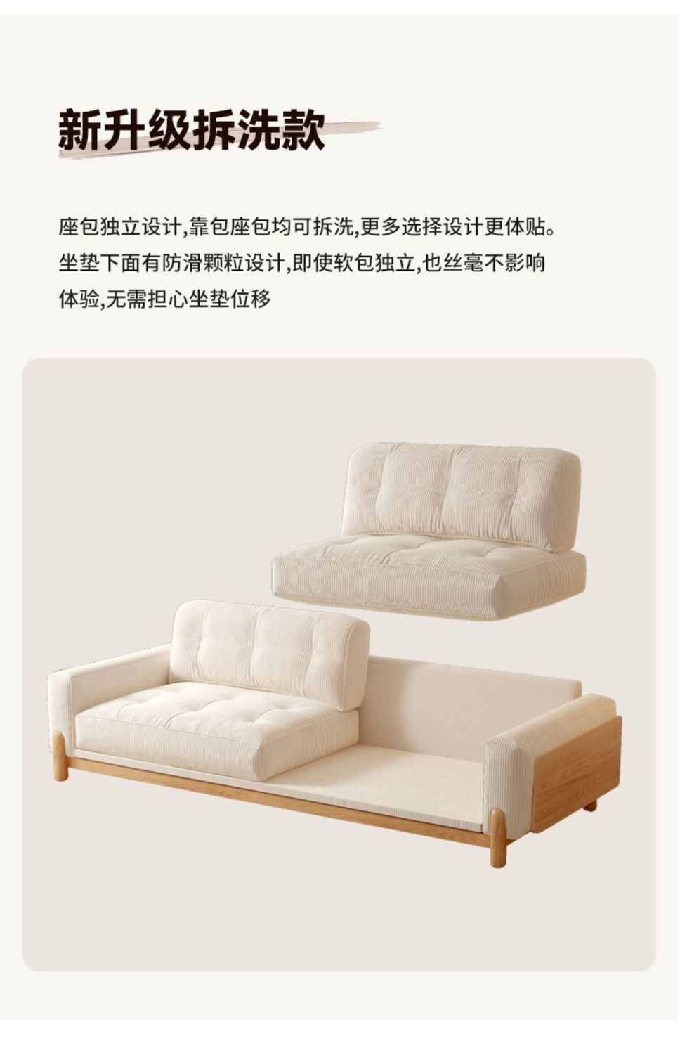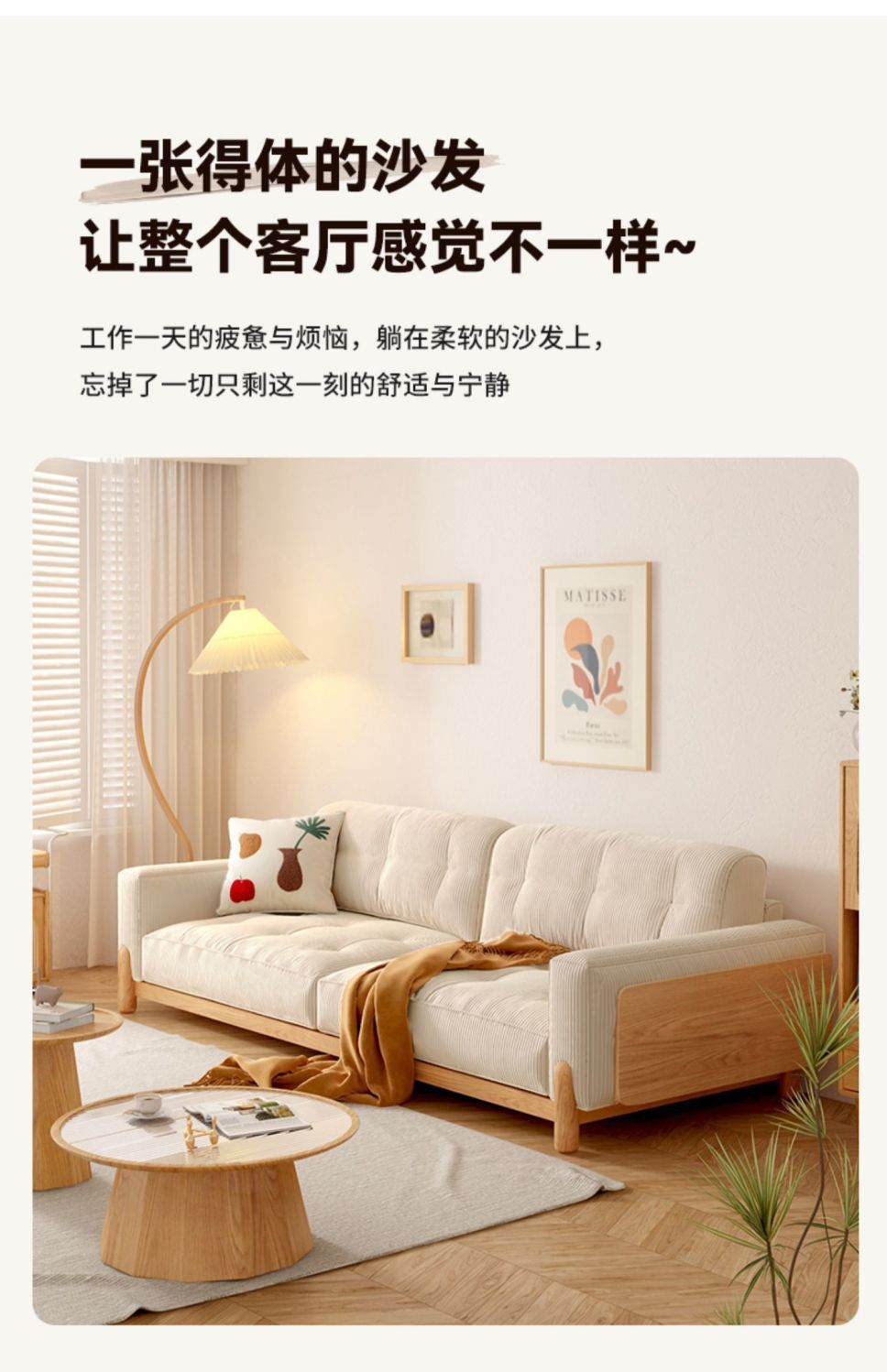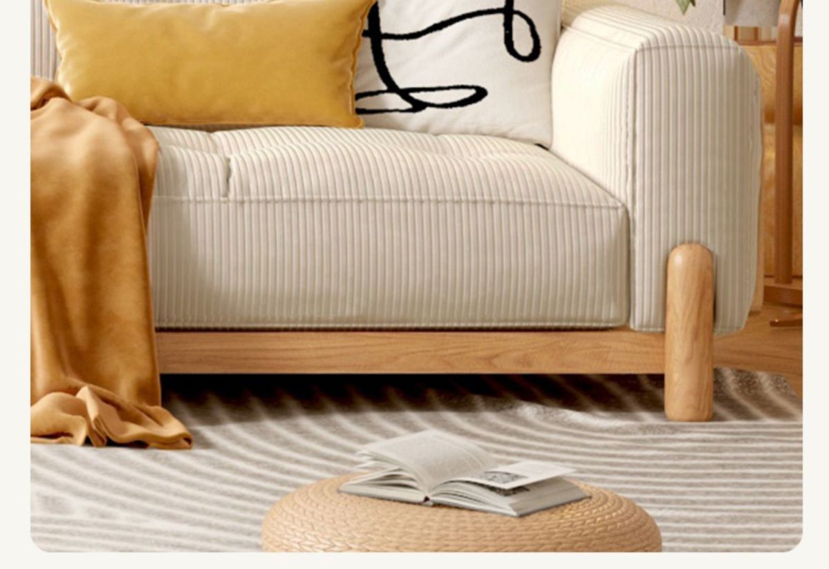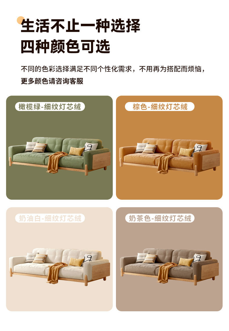 Sofa kiểu Nhật căn hộ nhỏ gỗ đặc đơn giản 3 người phong cách khúc gỗ màu kem đậu hũ vải nhung sofa