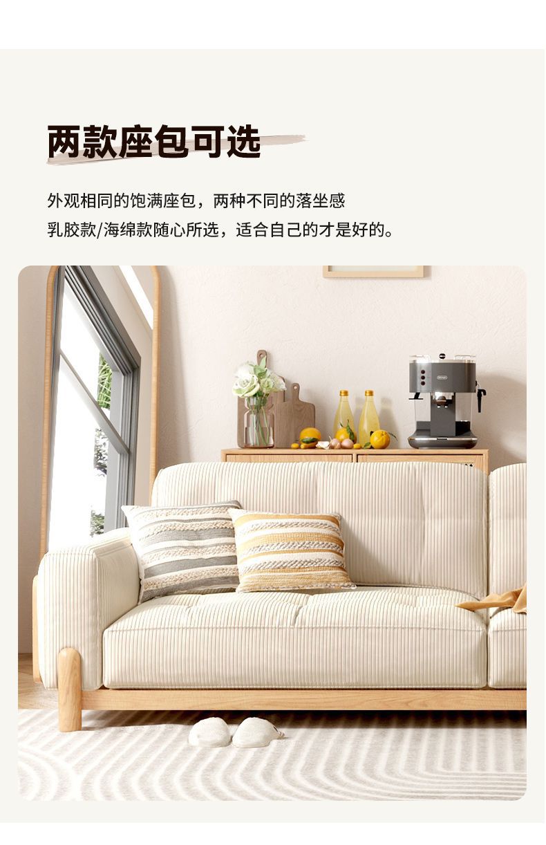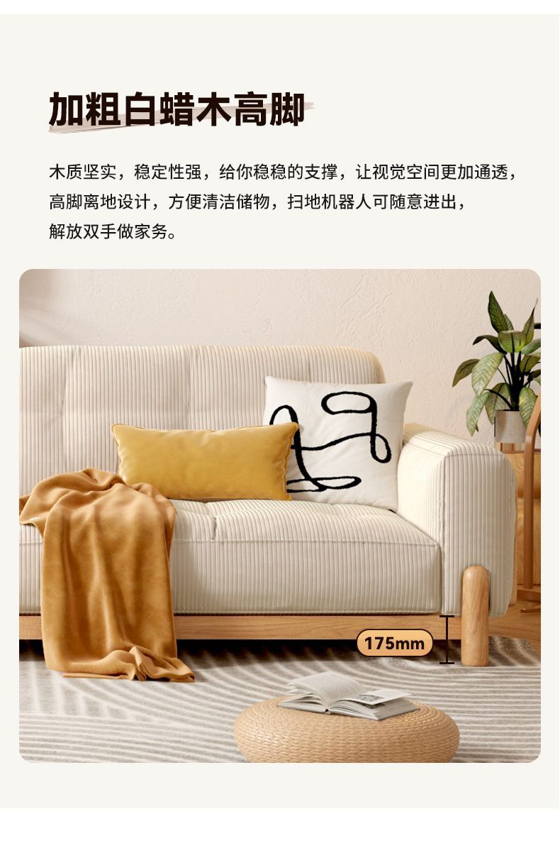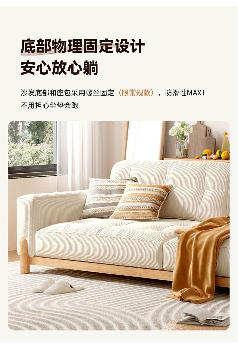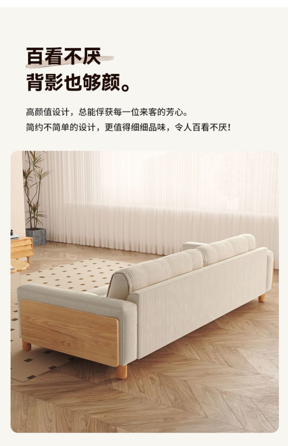 Sofa kiểu Nhật căn hộ nhỏ gỗ đặc đơn giản 3 người phong cách khúc gỗ màu kem đậu hũ vải nhung sofa