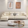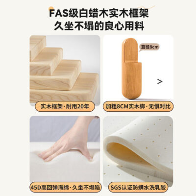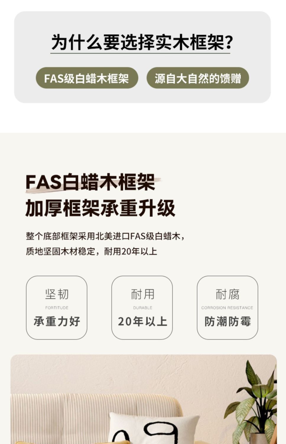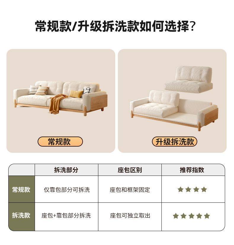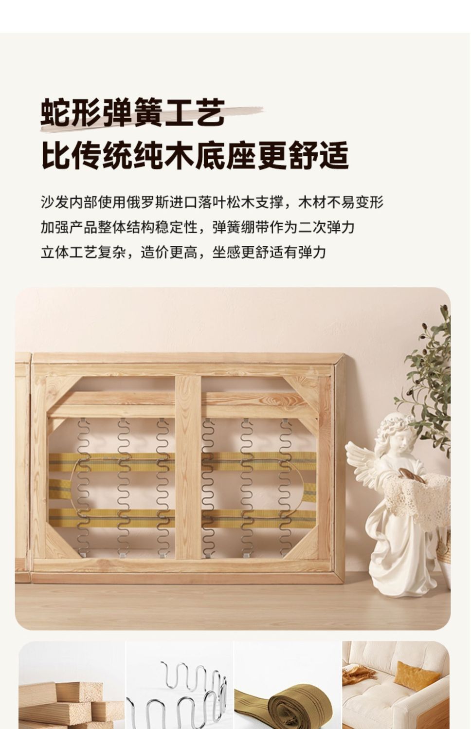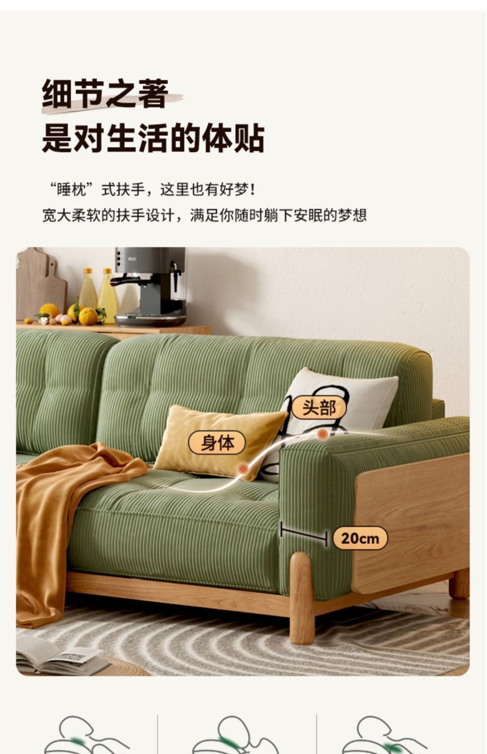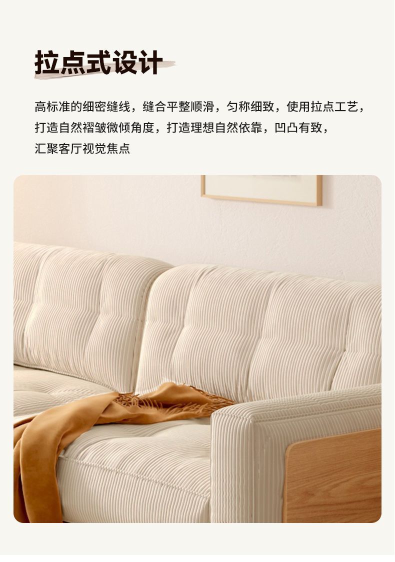Sofa kiểu Nhật căn hộ nhỏ gỗ đặc đơn giản 3 người phong cách khúc gỗ màu kem đậu hũ vải nhung sofa