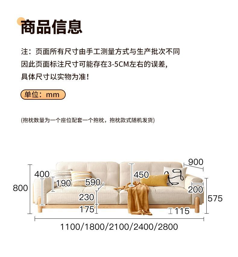 Sofa kiểu Nhật căn hộ nhỏ gỗ đặc đơn giản 3 người phong cách khúc gỗ màu kem đậu hũ vải nhung sofa