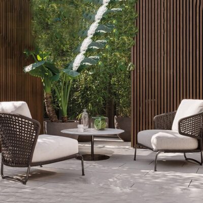 Sofa mây ngoài trời hiện đại sân mô hình không thấm nước phòng homestay ban công giải trí ghế mây đơn có tựa lưng ghế giải trí
