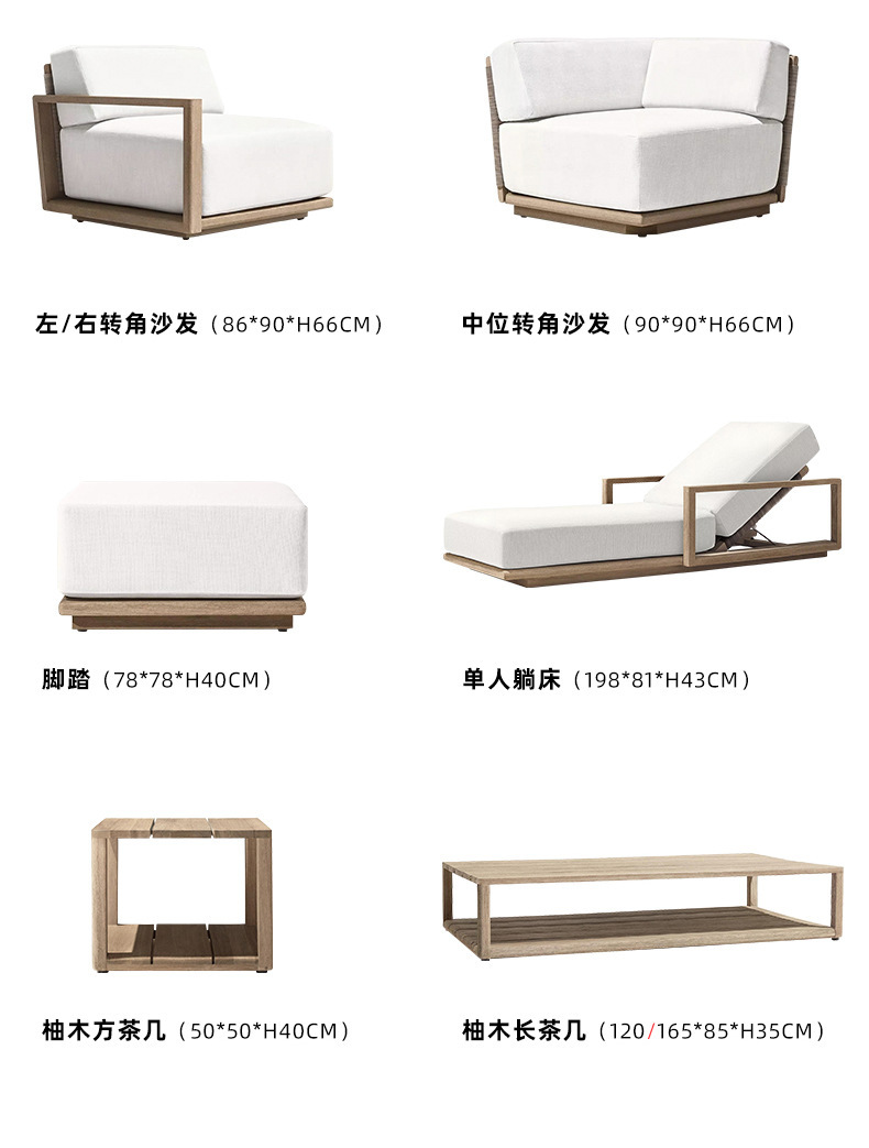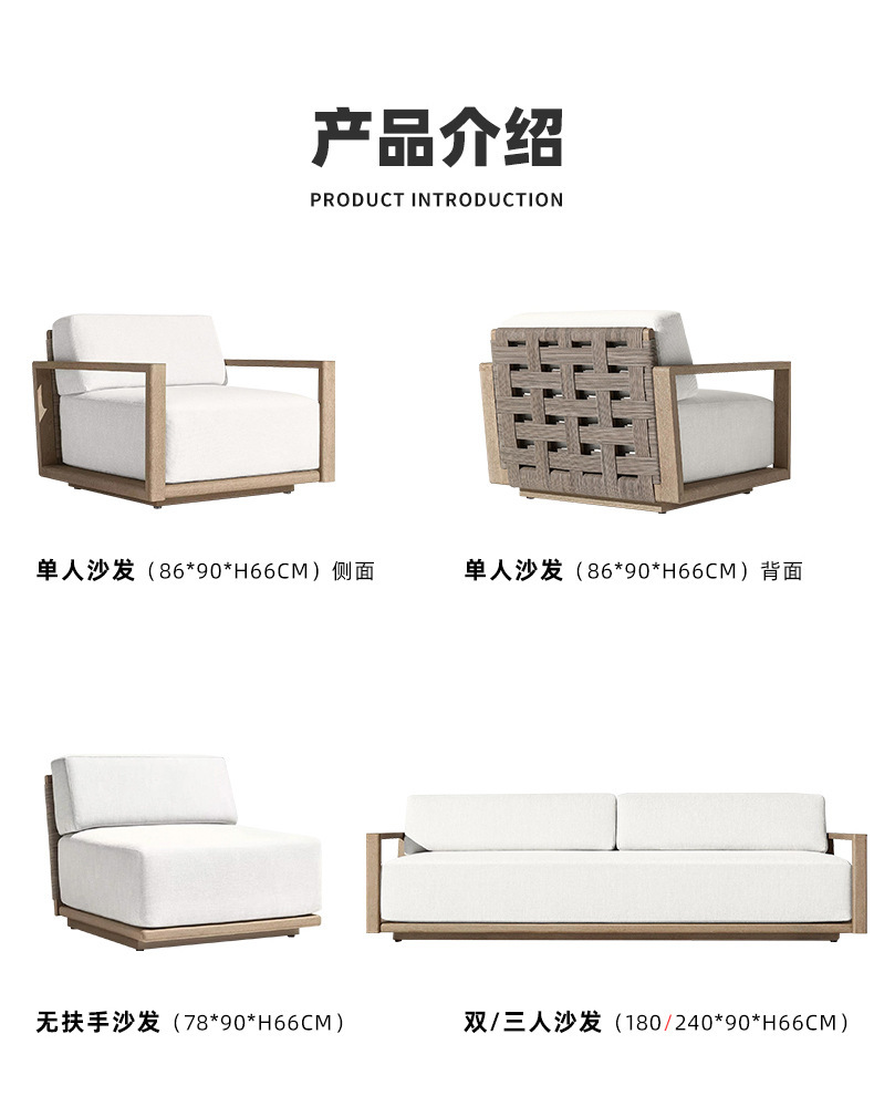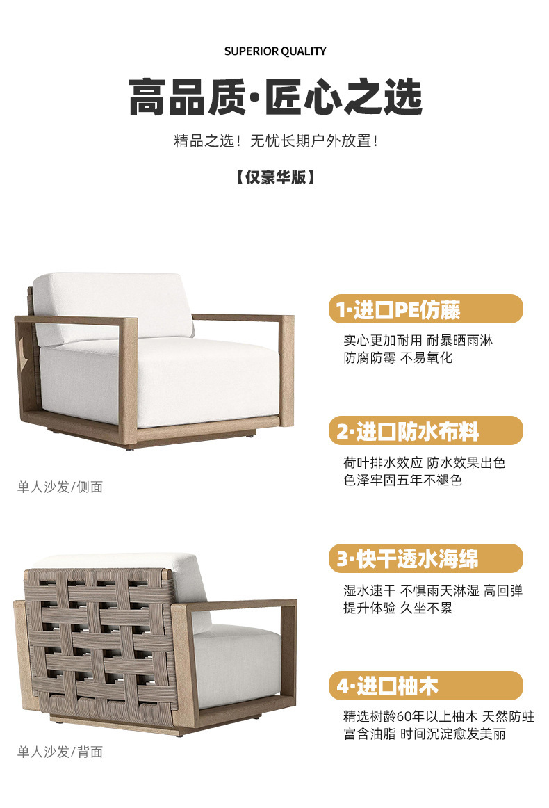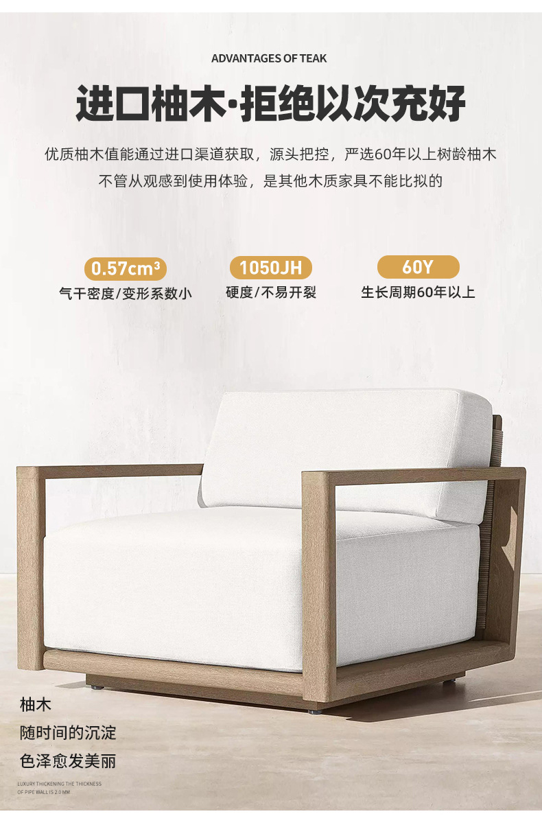 Sofa ngoài trời bằng gỗ tếch chống nắng chống thấm nước sân vườn vân gỗ sơn ghế mây sân thượng ngoài trời gỗ ban công nội thất